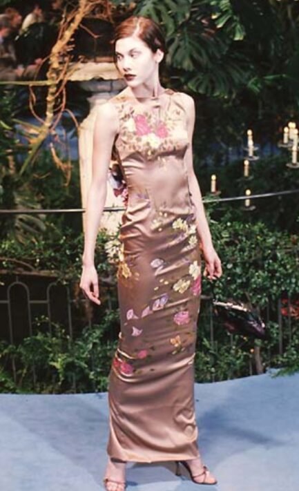 ROBERTO CAVALLI 1998 Champagne Satin Cowl-Neck Floral Dress (XS-S)