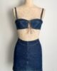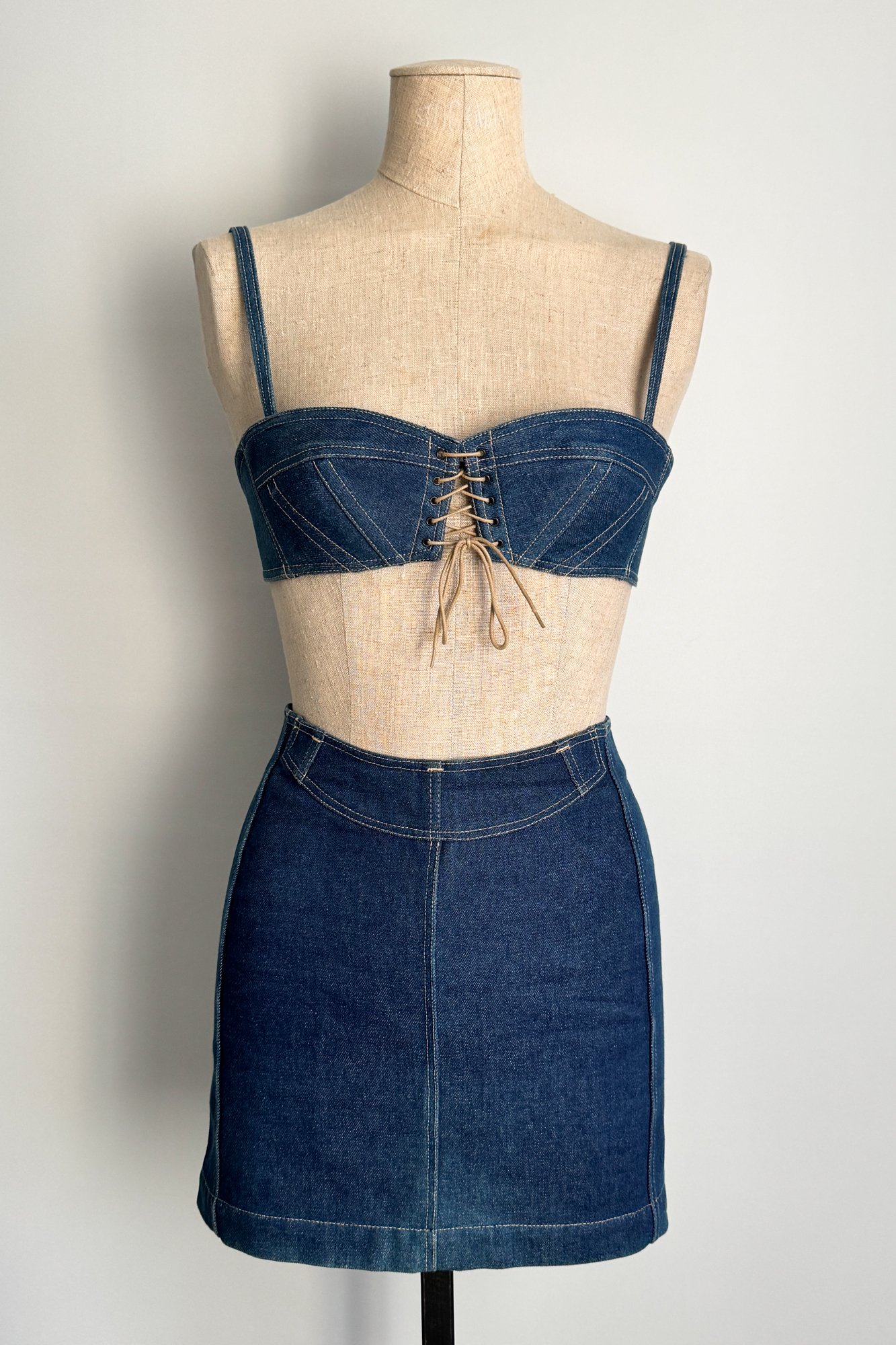 ALAÏA 1991 Blue Cotton Lace Up Bra Top & Mini Skirt (XS)