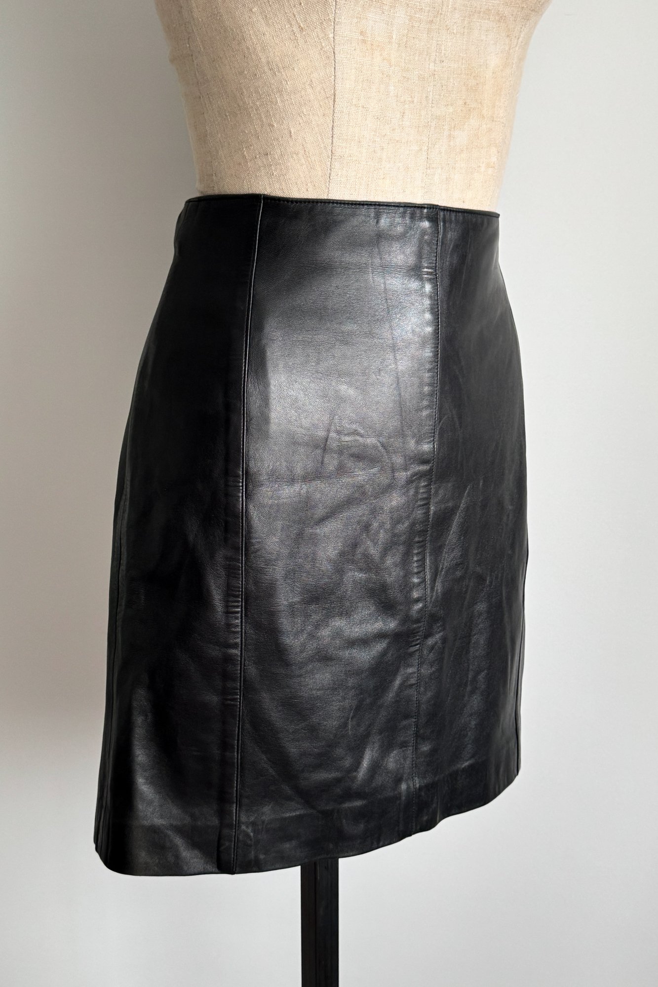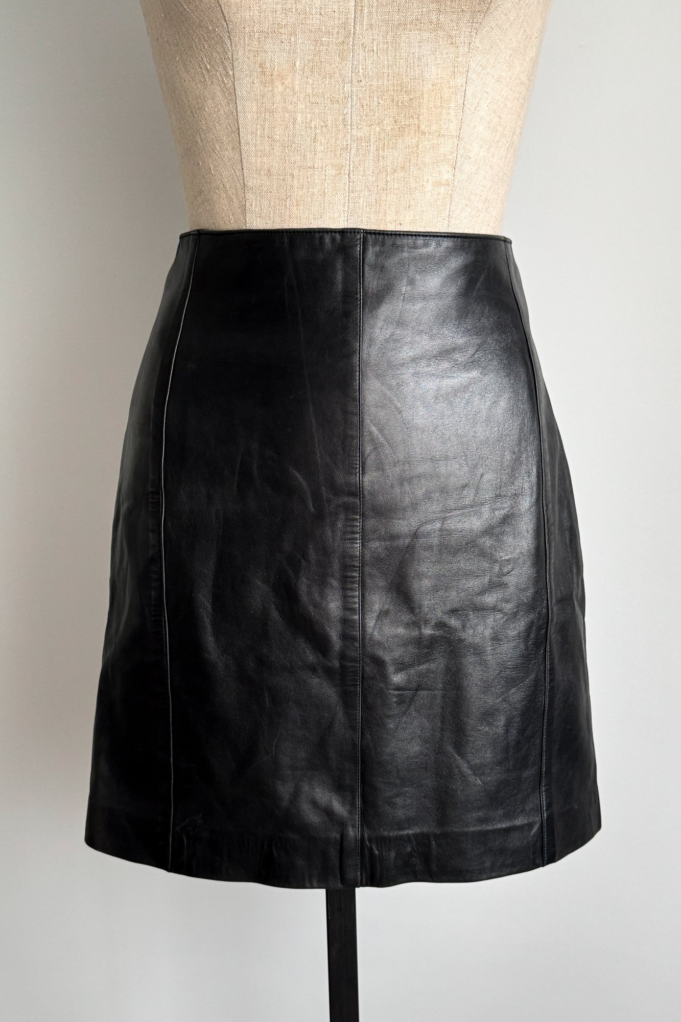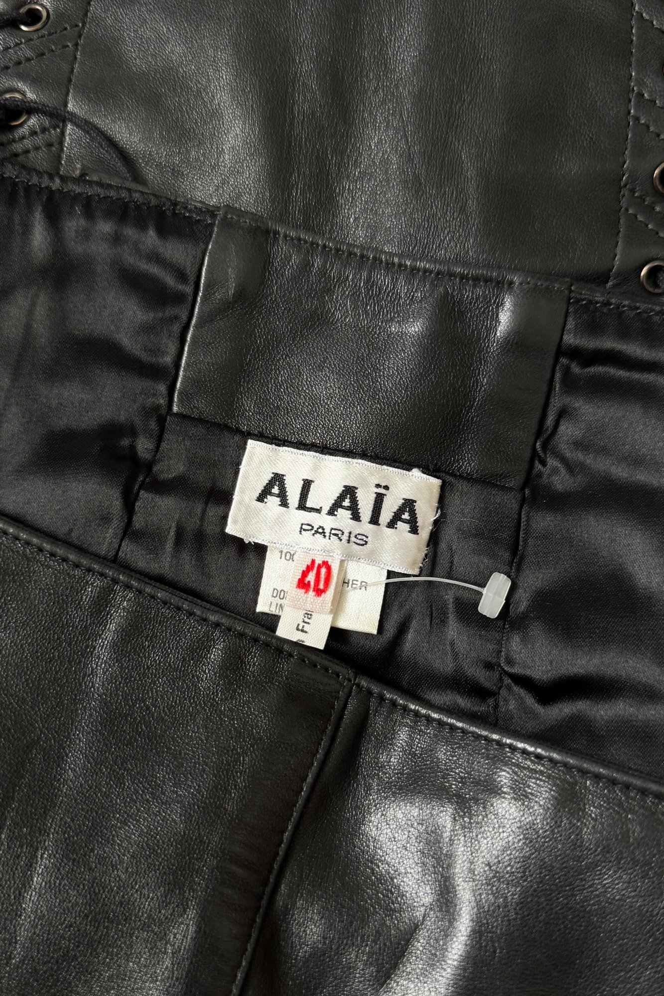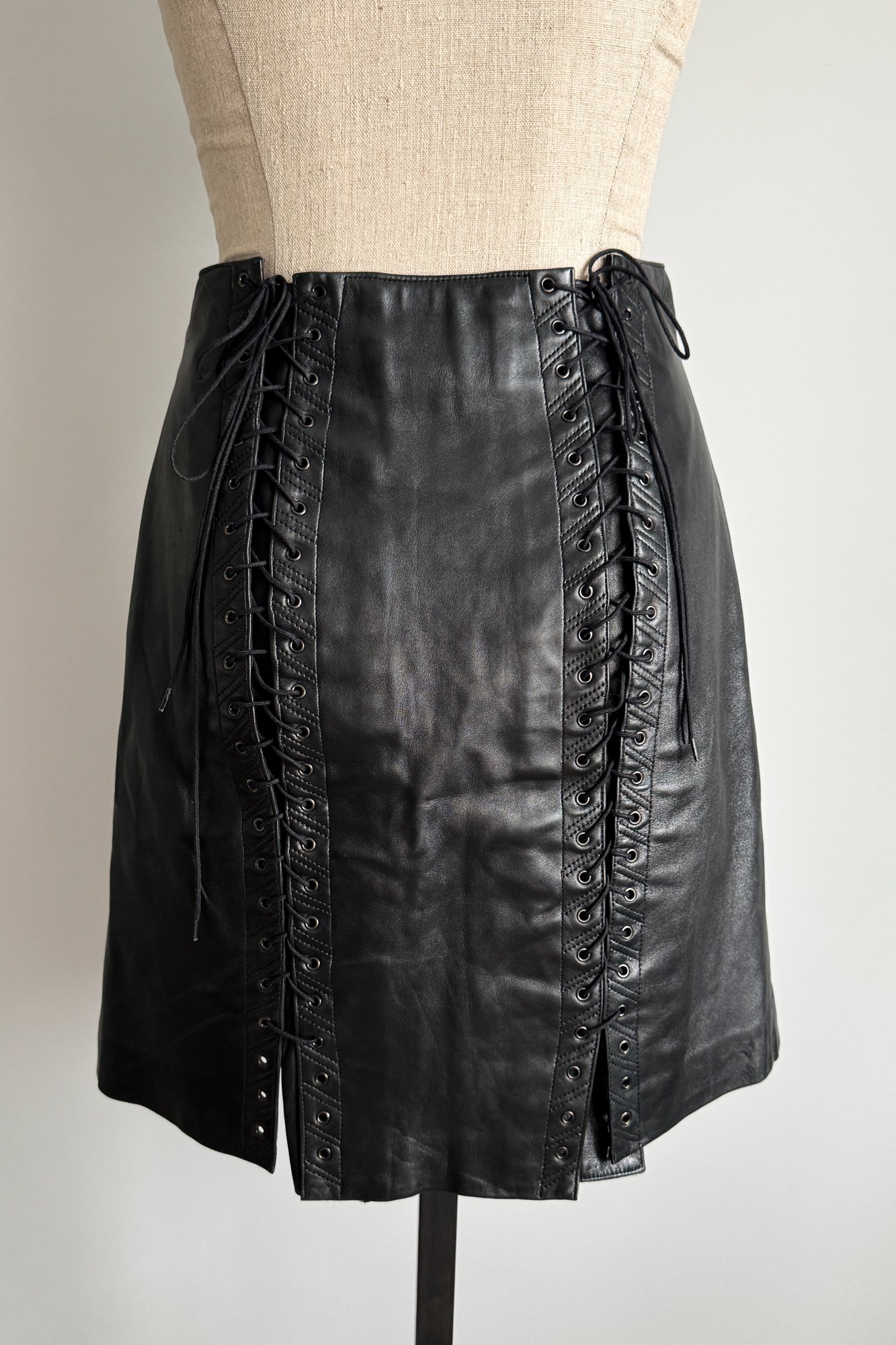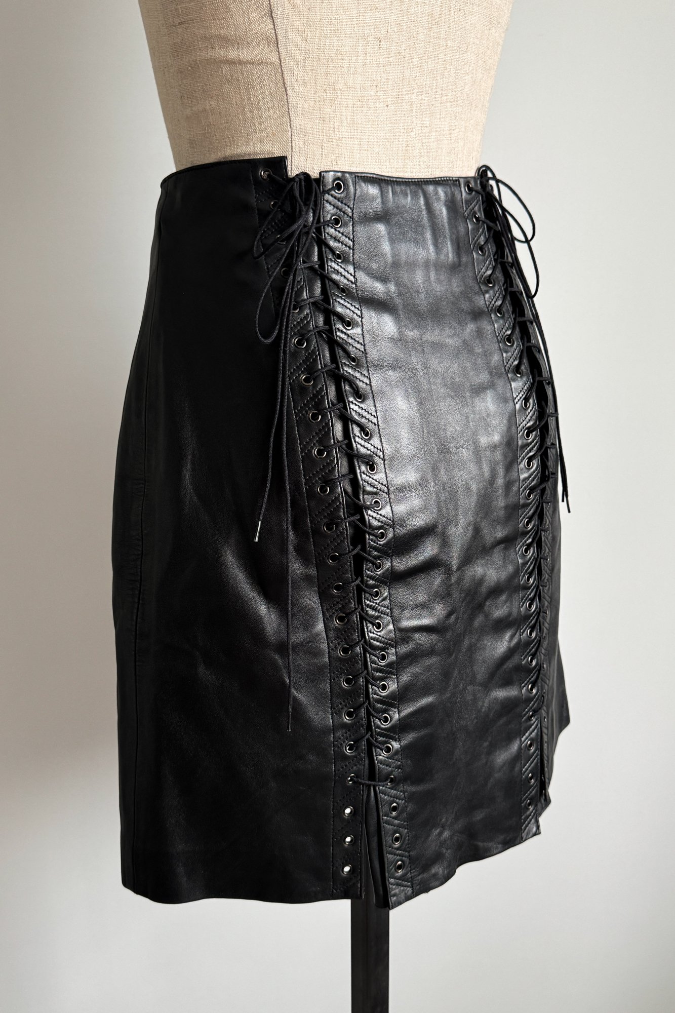 ALAÏA 1990 Black Leather Lace Up Back Skirt (M)