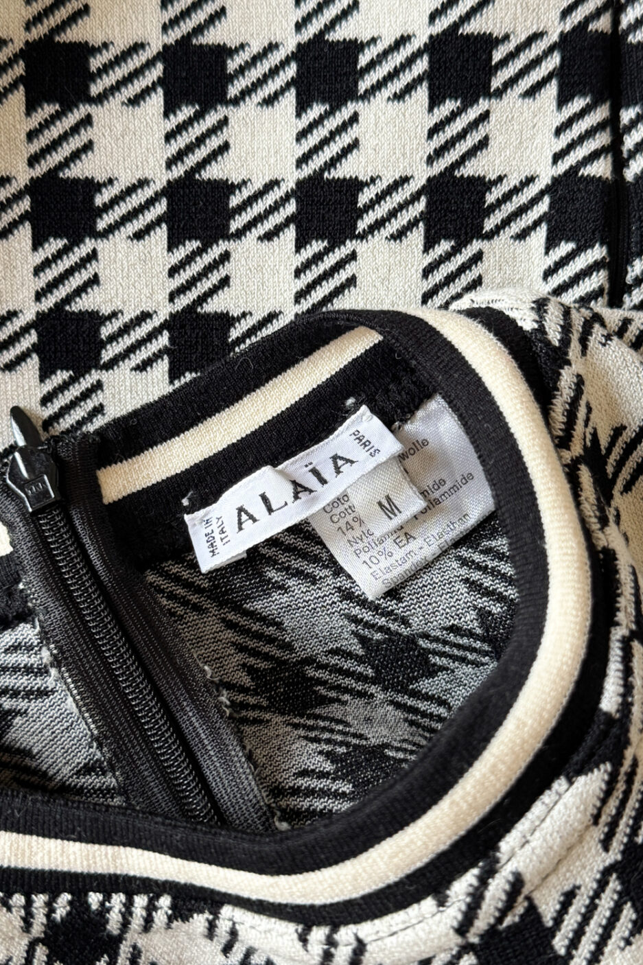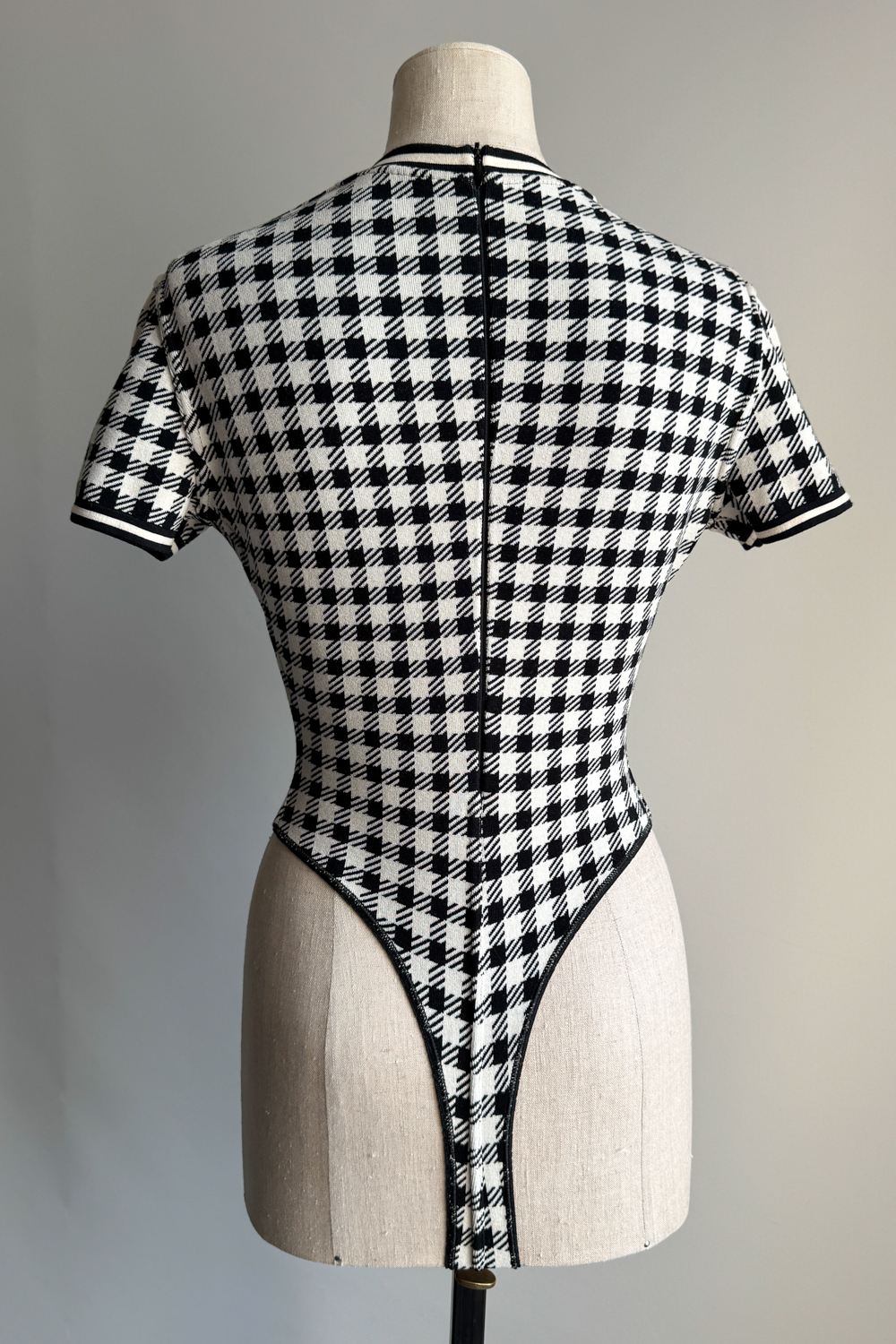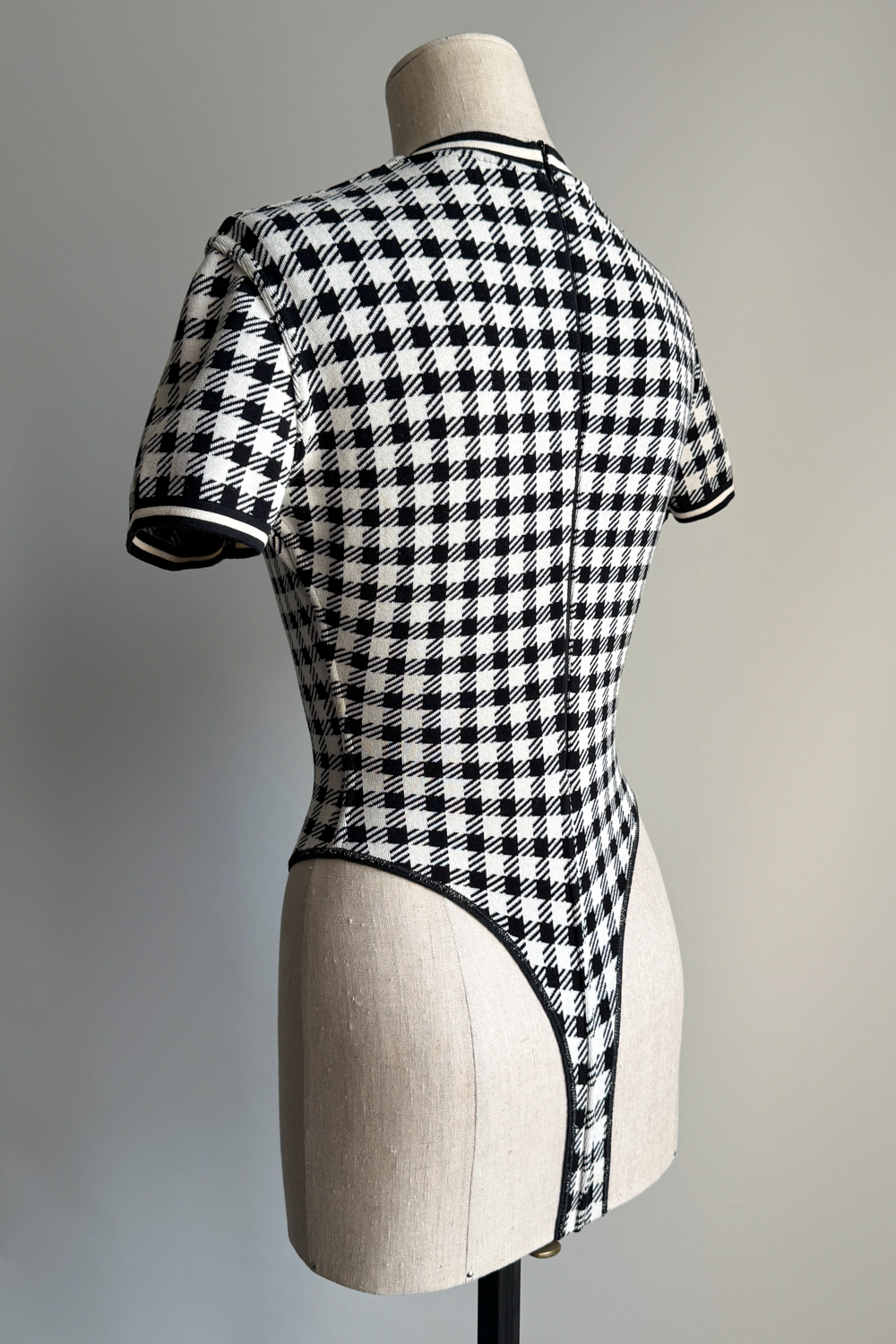ALAÏA 1991 Tati Black & White Houndstooth Bodysuit (M)