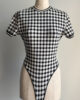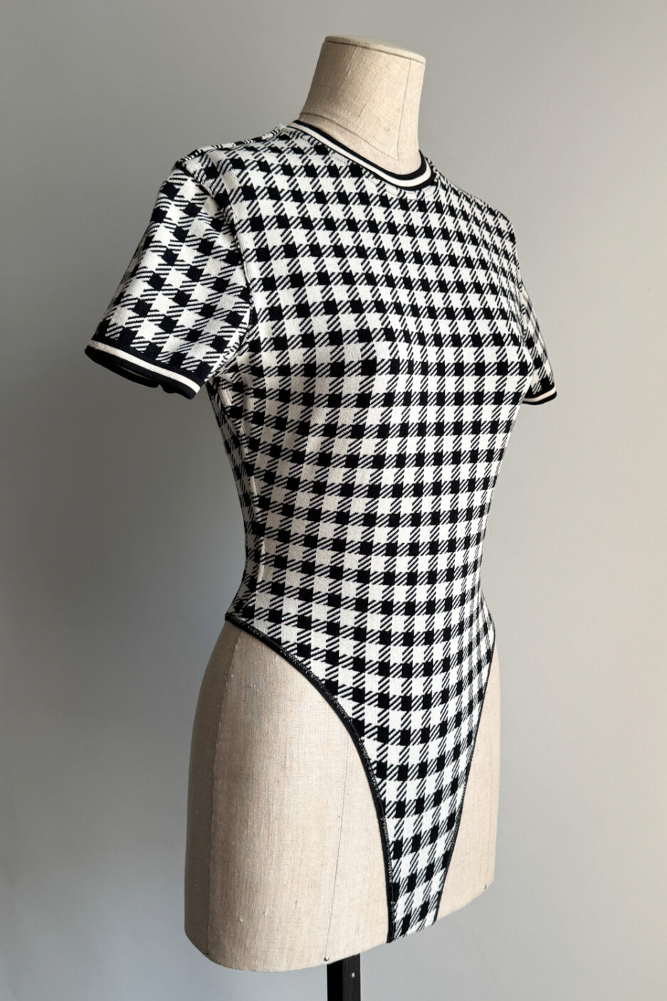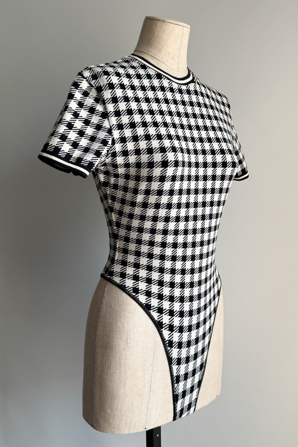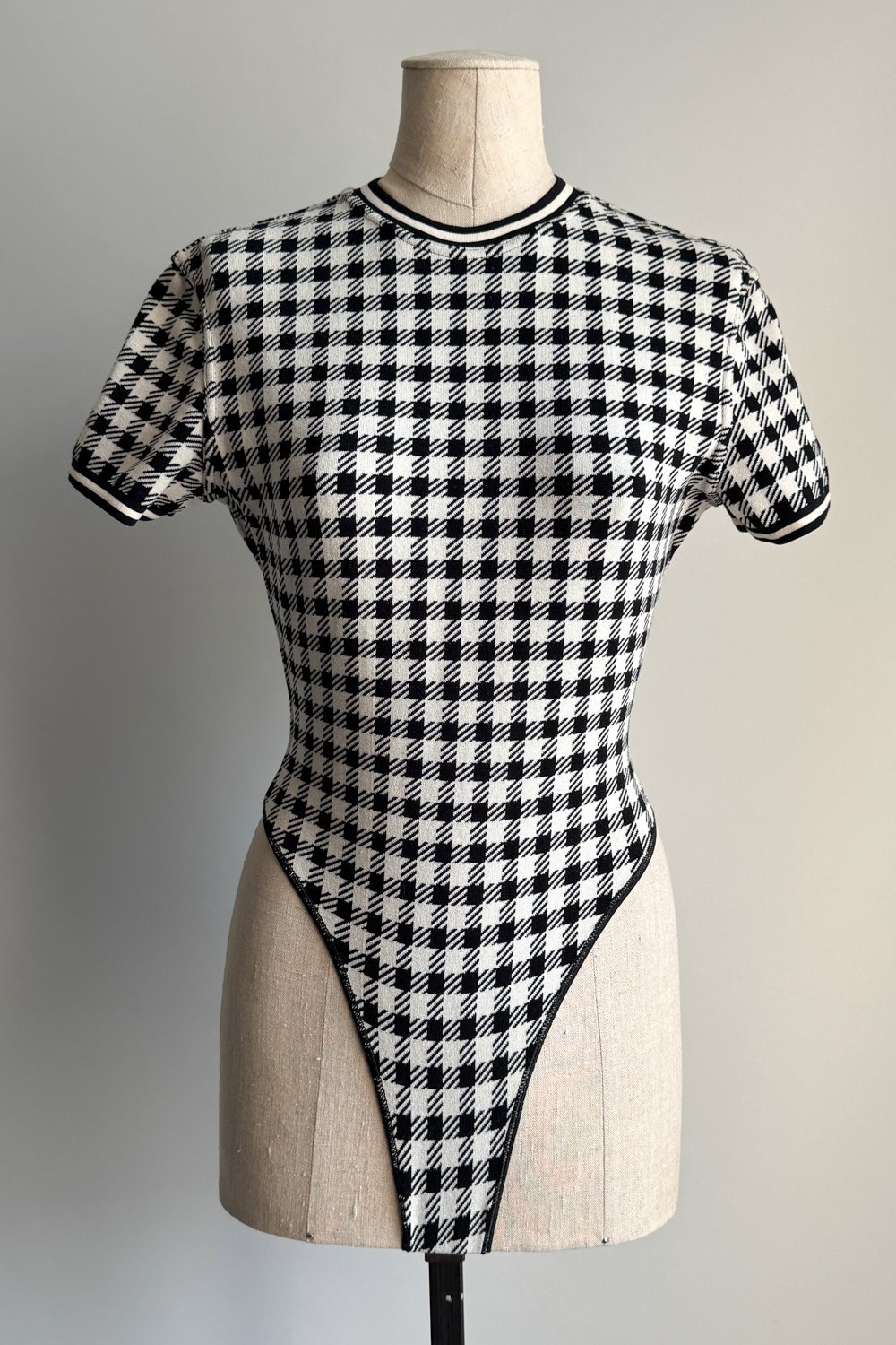 ALAÏA 1991 Tati Black & White Houndstooth Bodysuit (M)