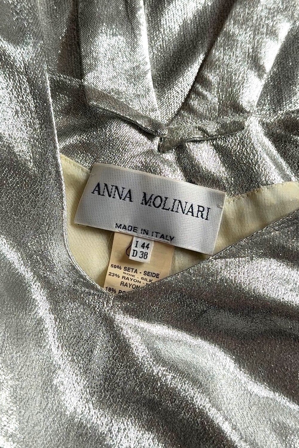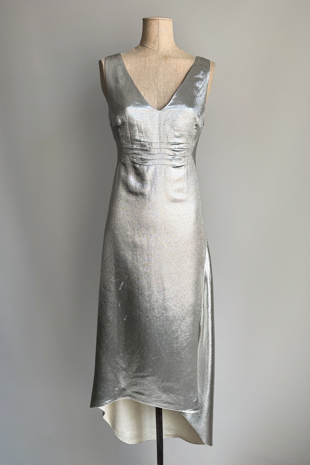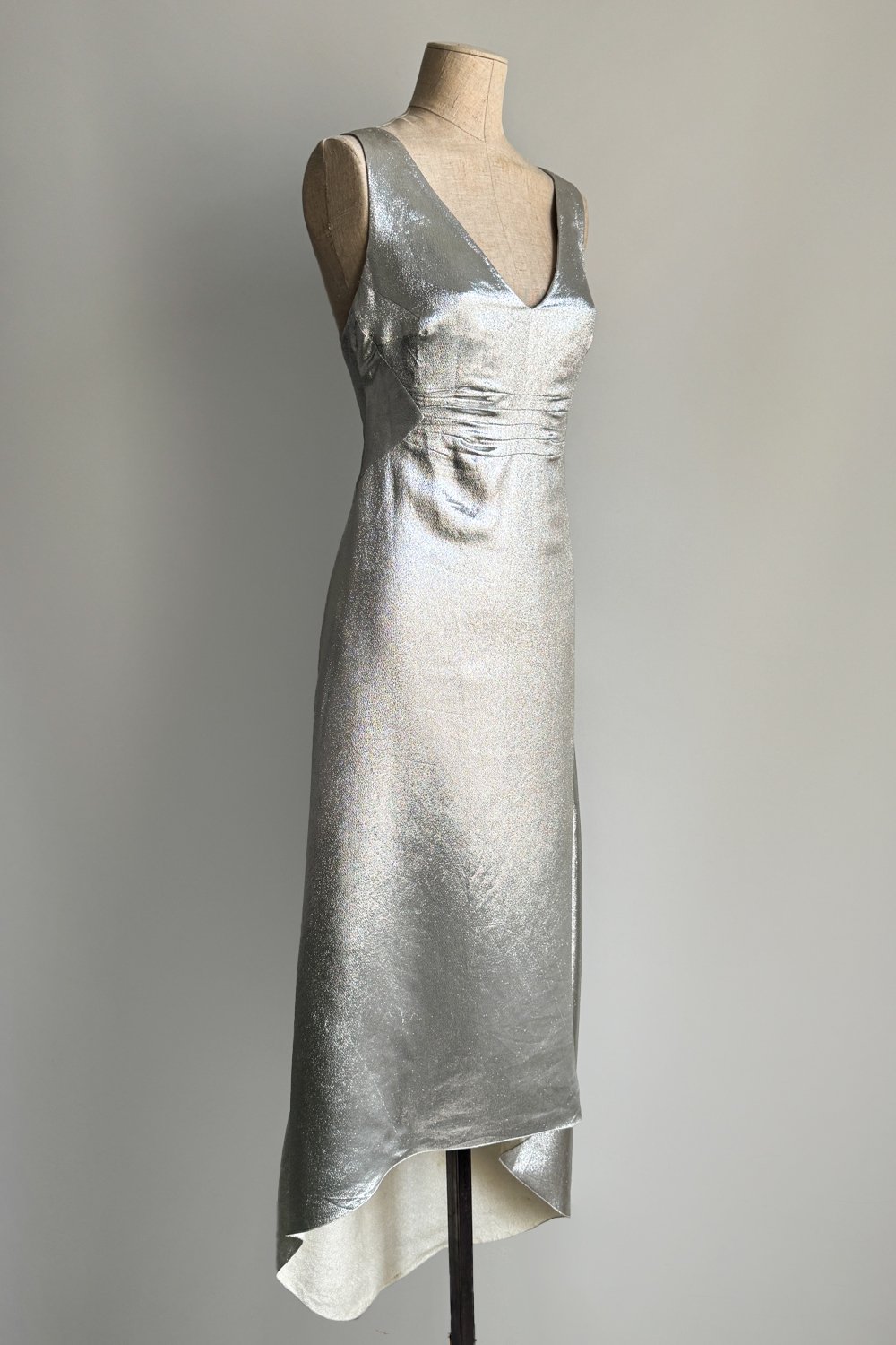 ANNA MOLINARI 1998 Silver Metallic Slip Dress (M)
