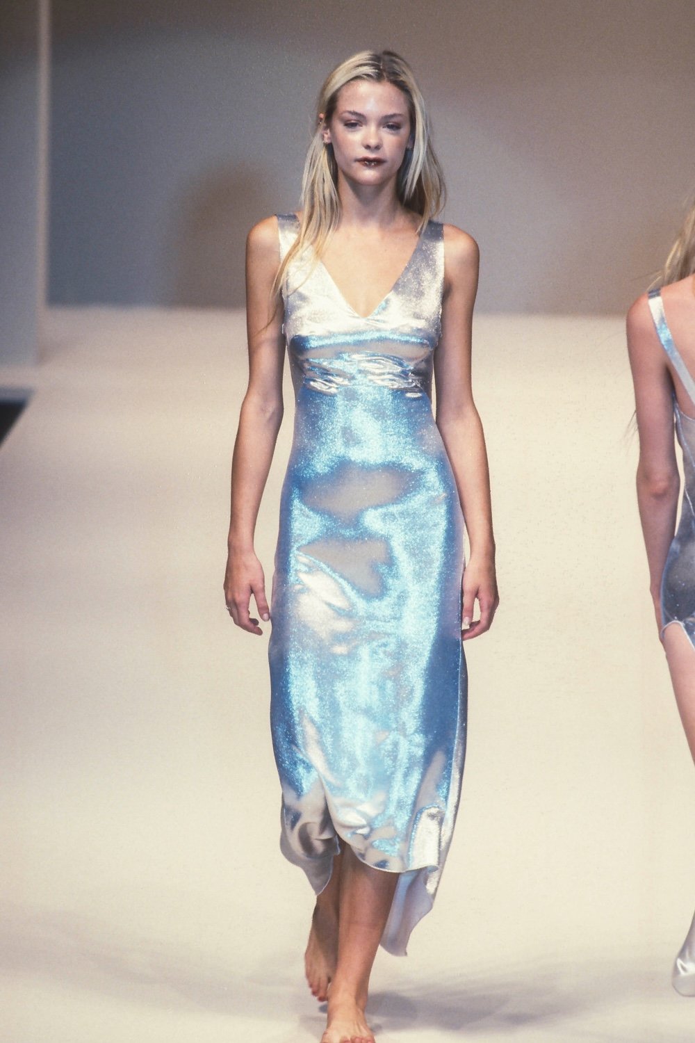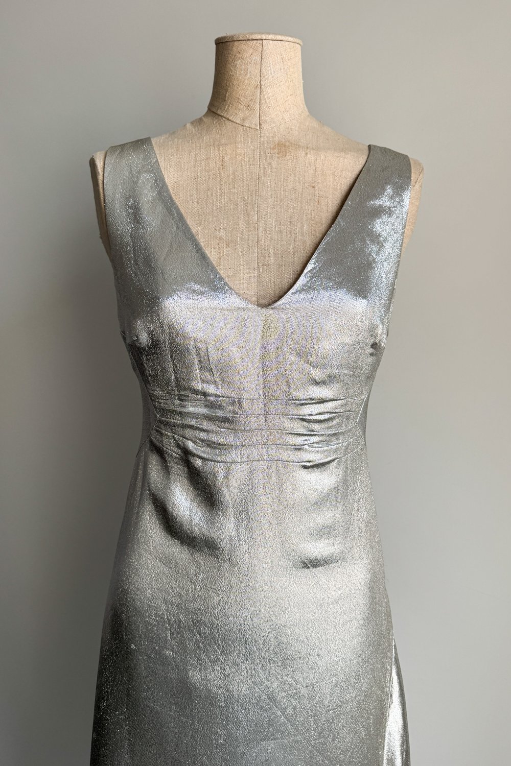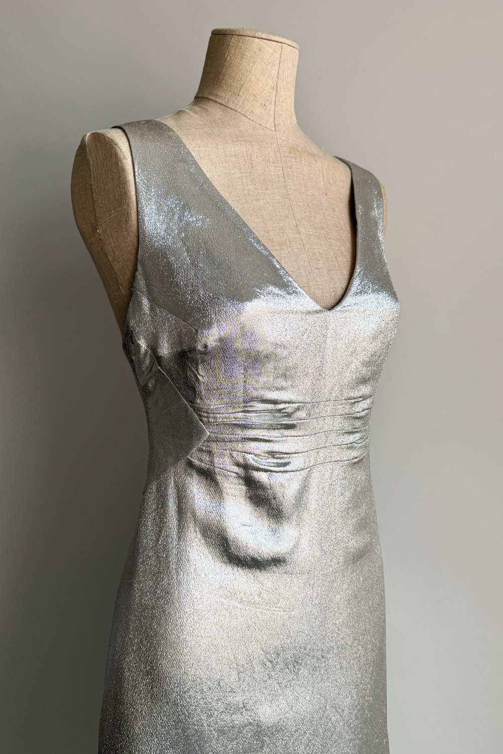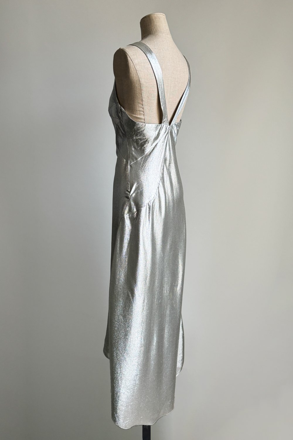 ANNA MOLINARI 1998 Silver Metallic Slip Dress (M)