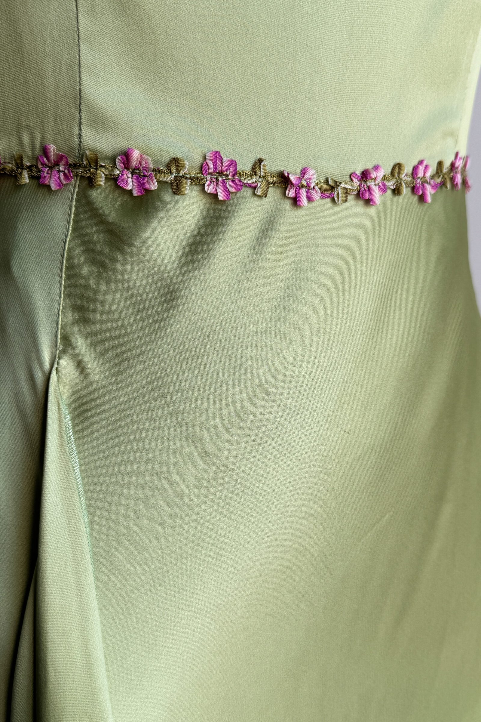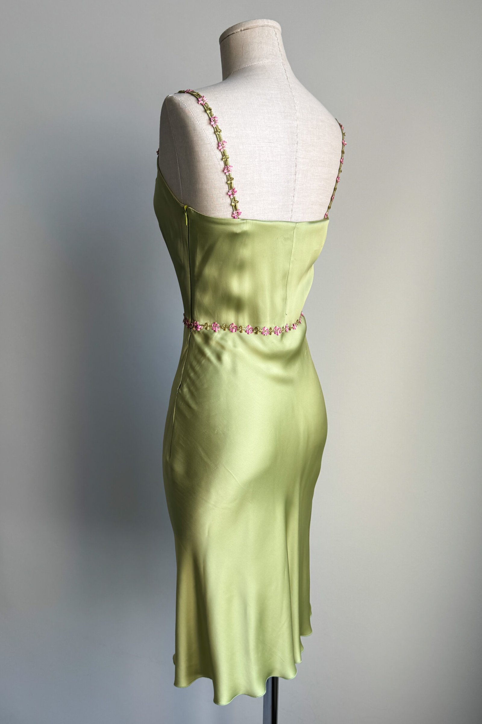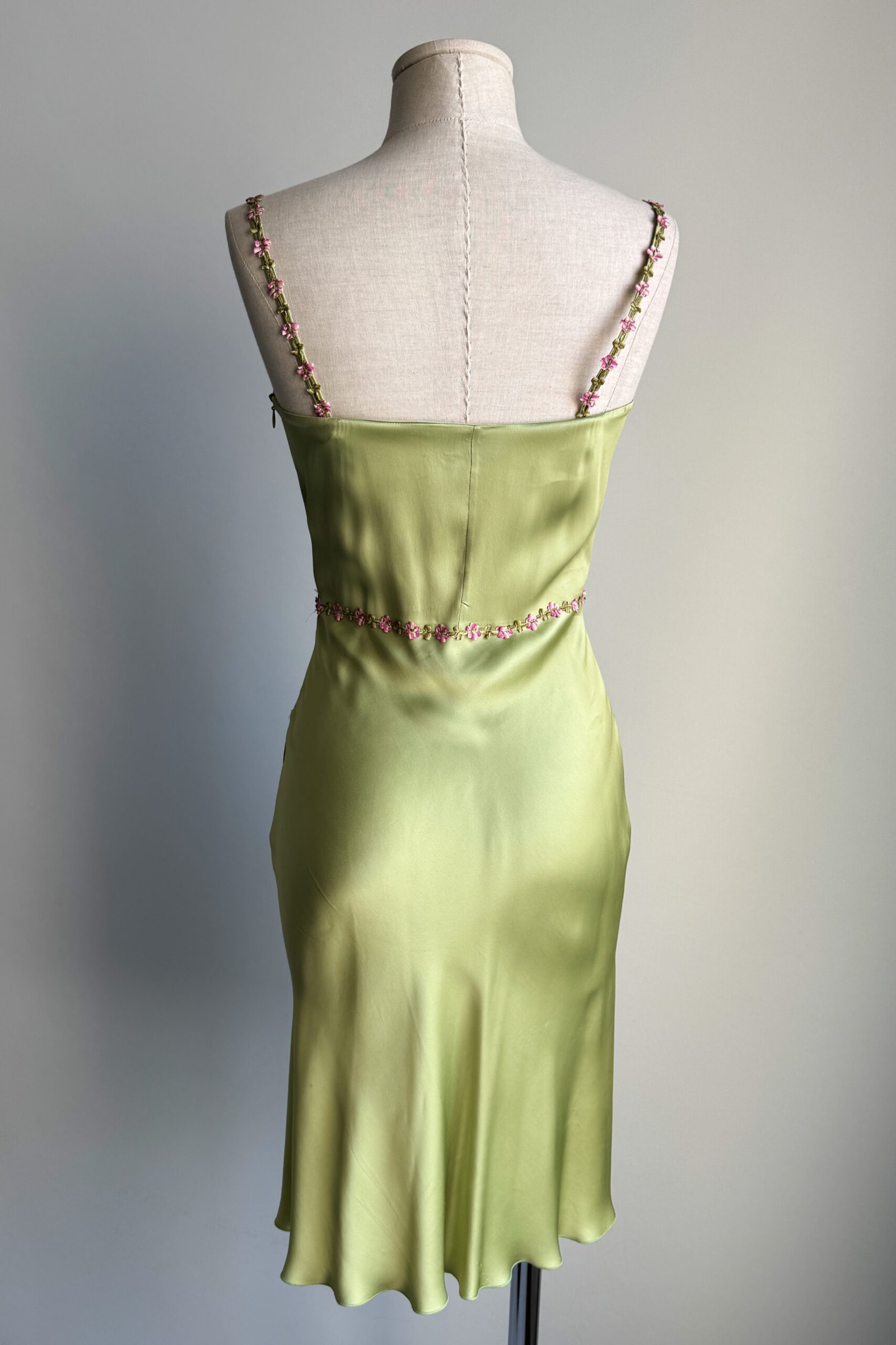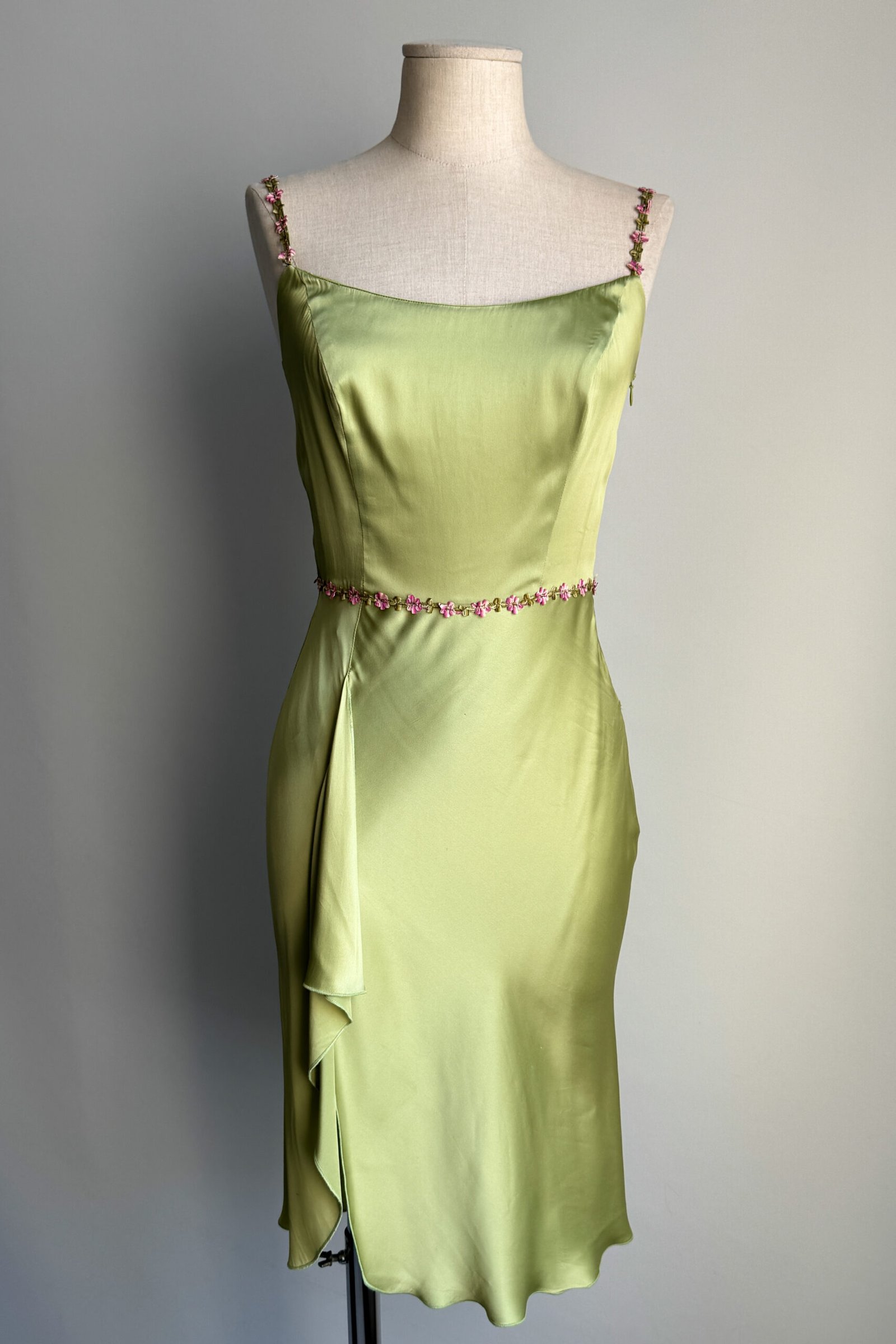 BLUGIRL 2000’s Light Green Floral Trim Satin Dress (XS)