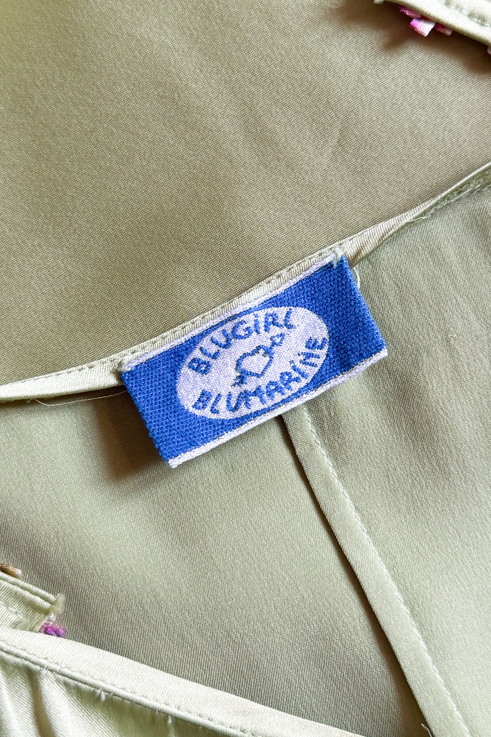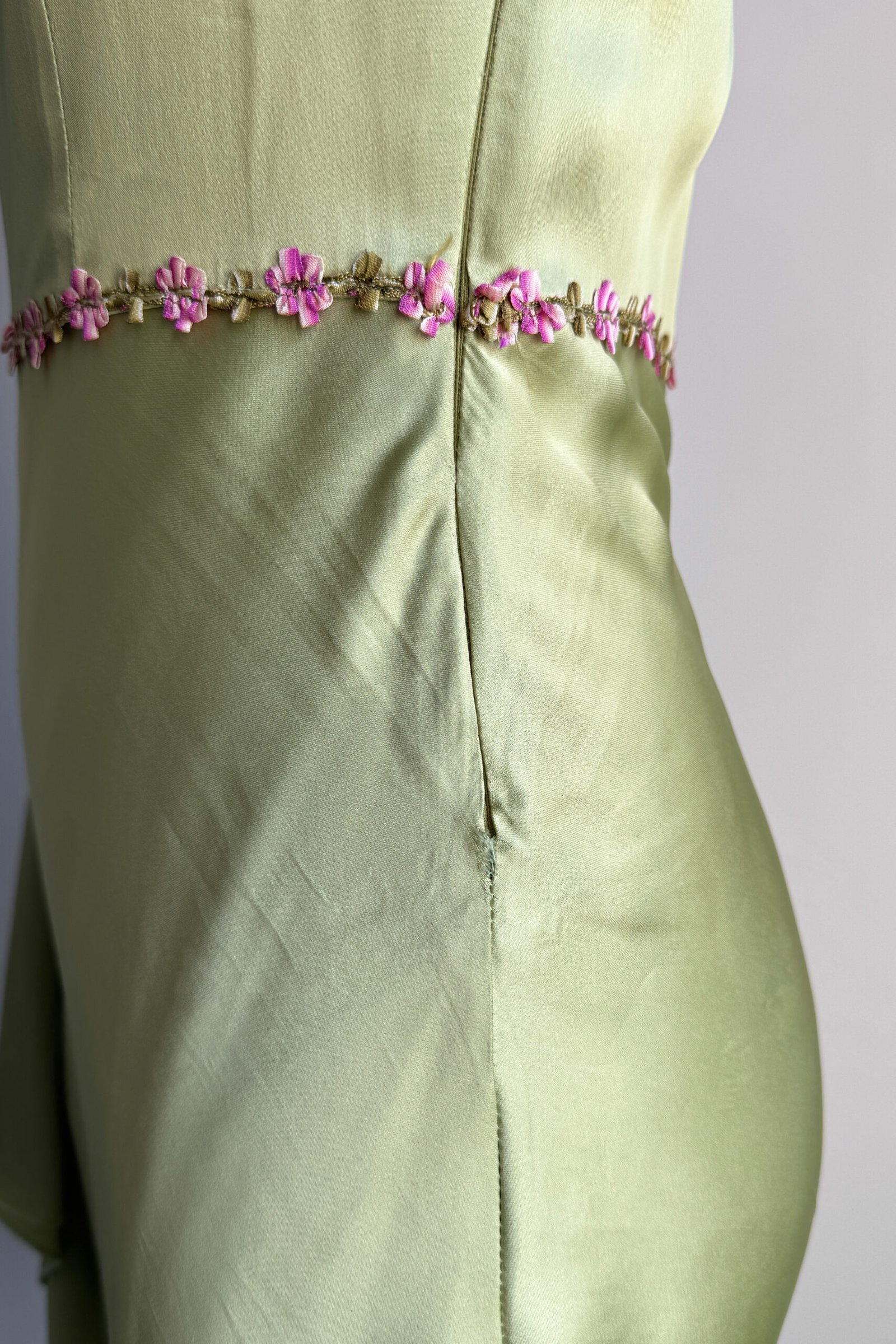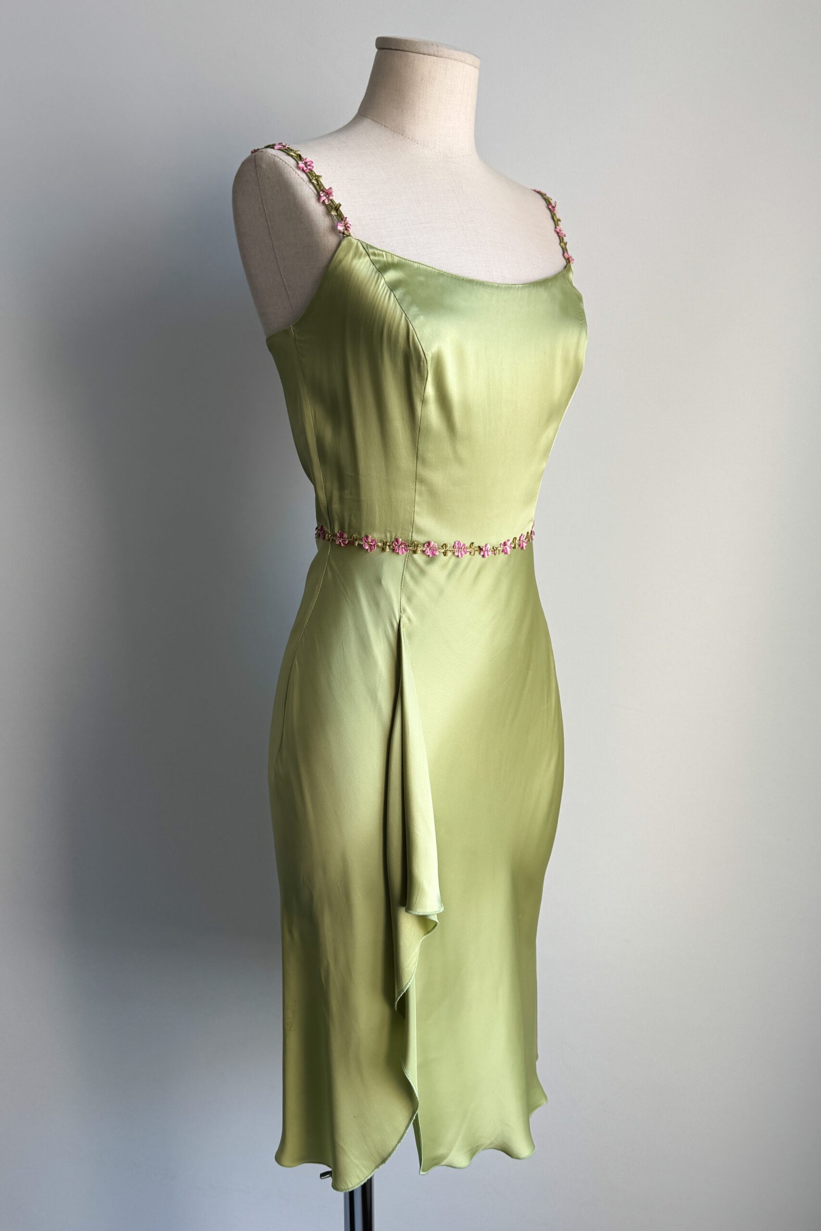 BLUGIRL 2000’s Light Green Floral Trim Satin Dress (XS)