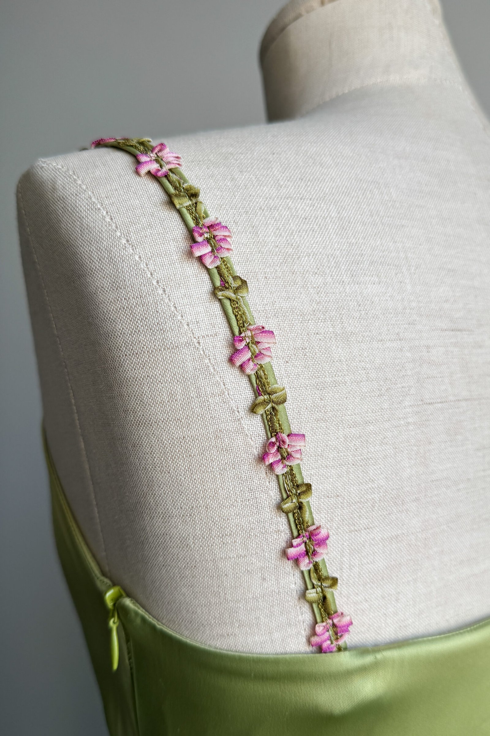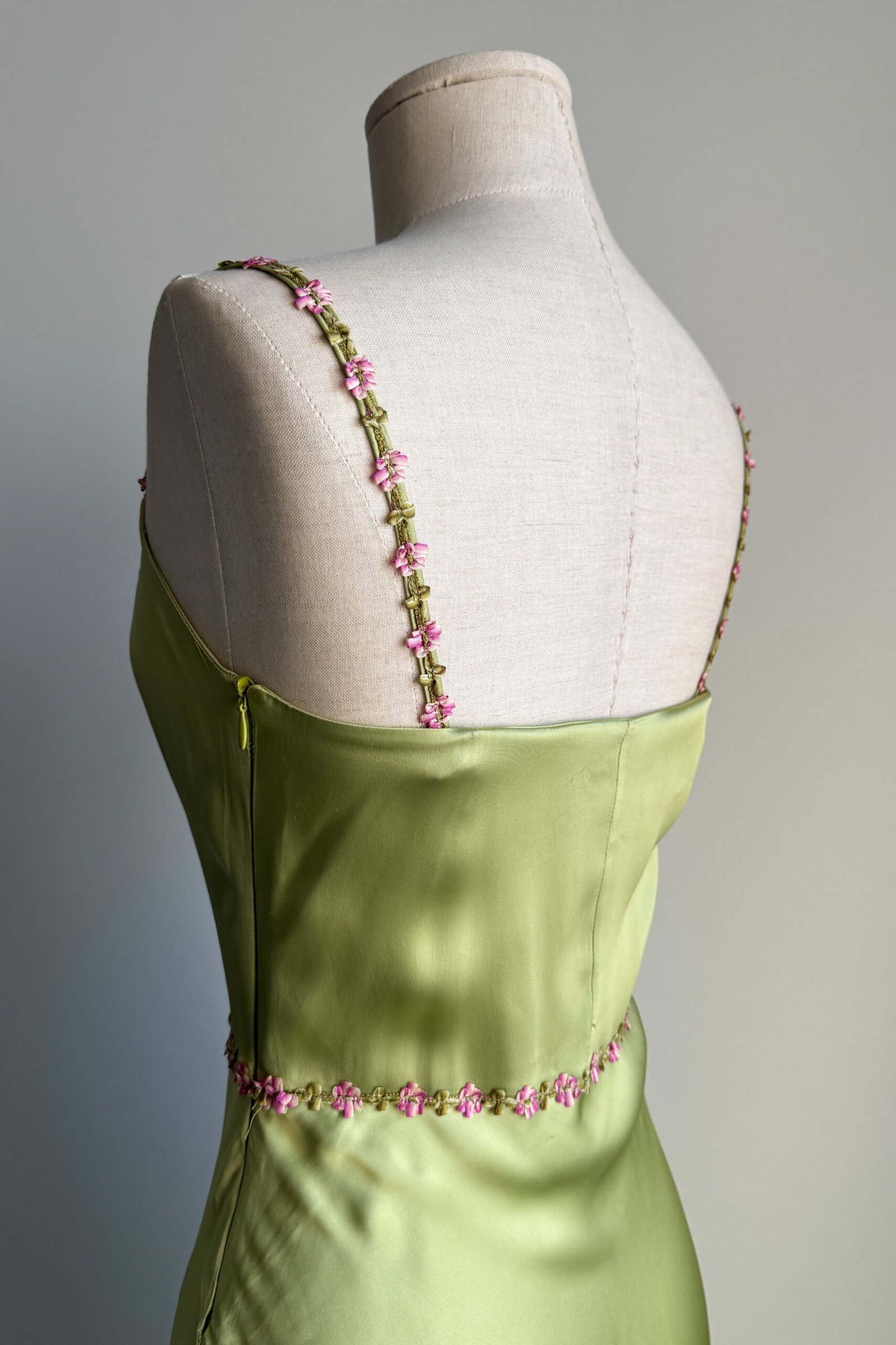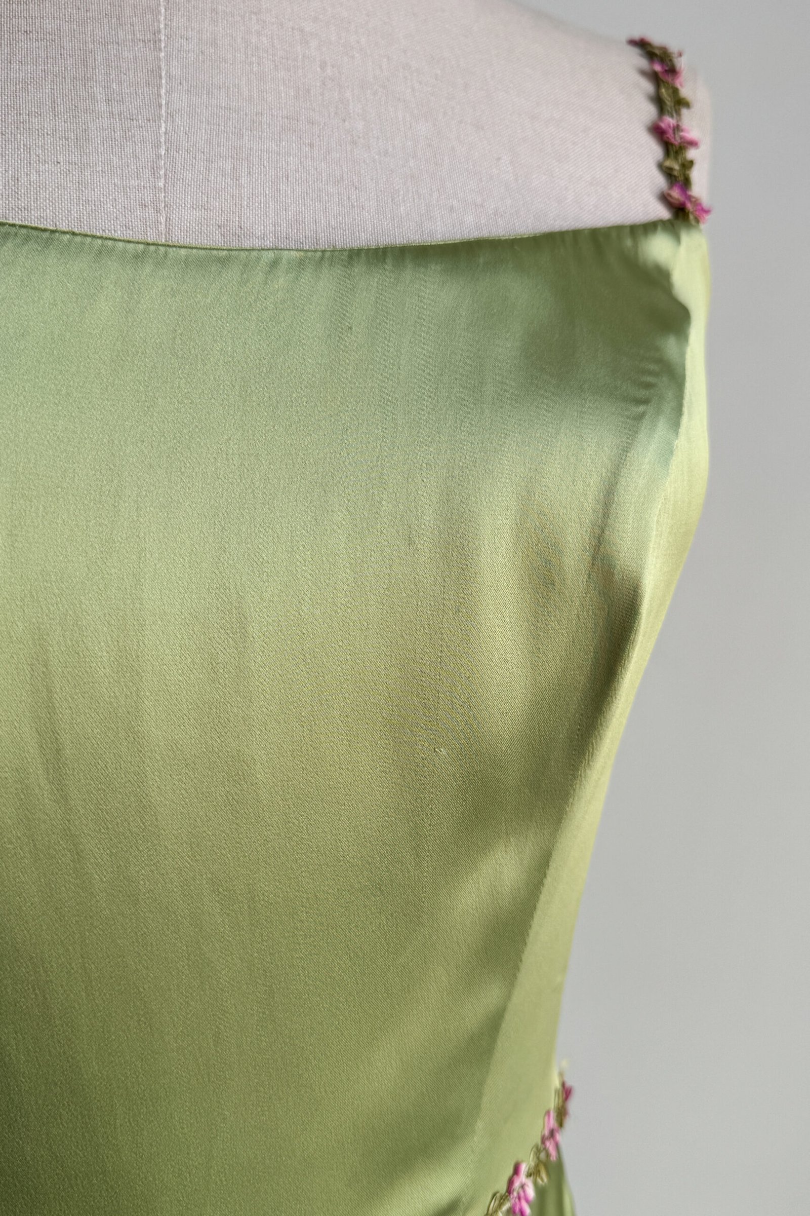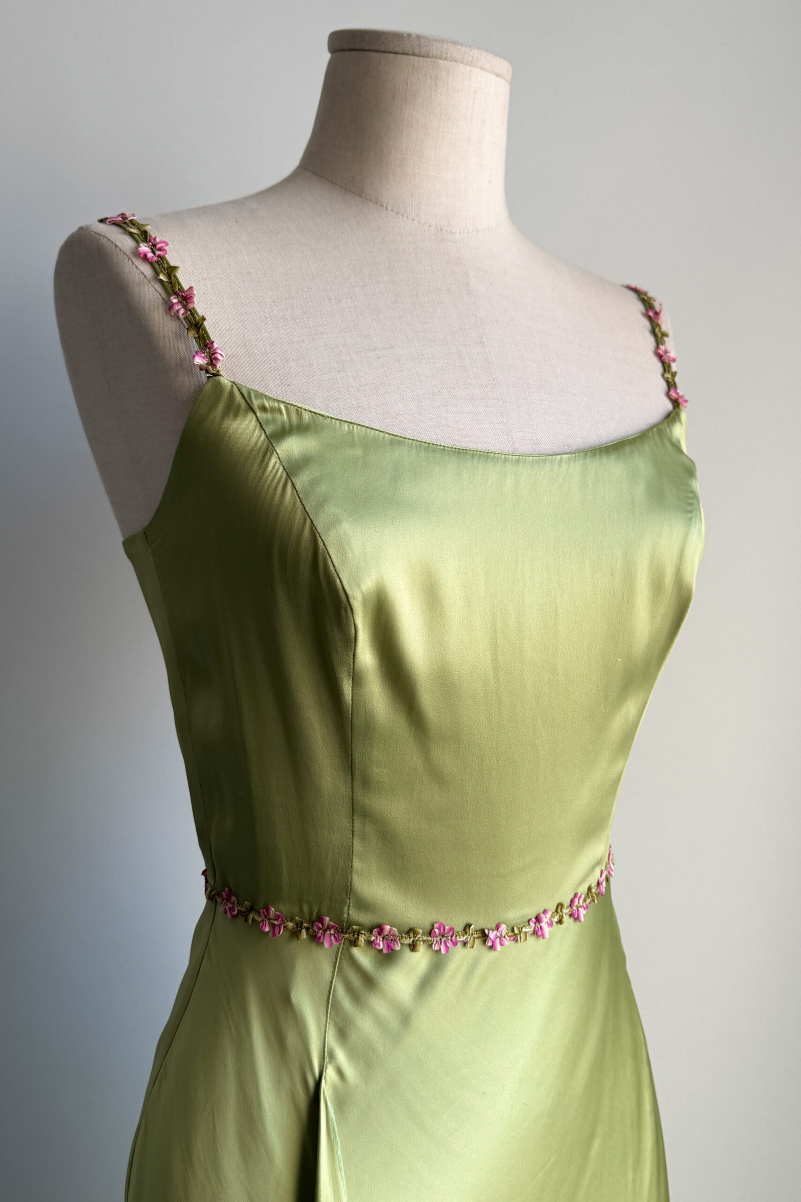 BLUGIRL 2000’s Light Green Floral Trim Satin Dress (XS)