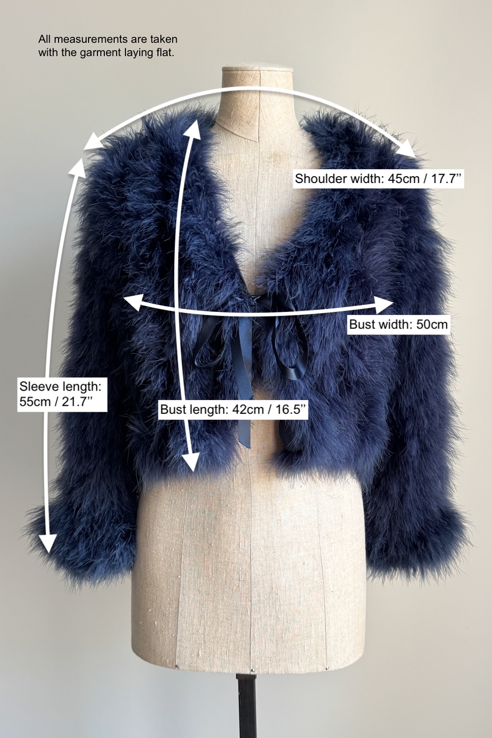 COMPOSITION: Crafted from marabou feathers with a synthetic lining.