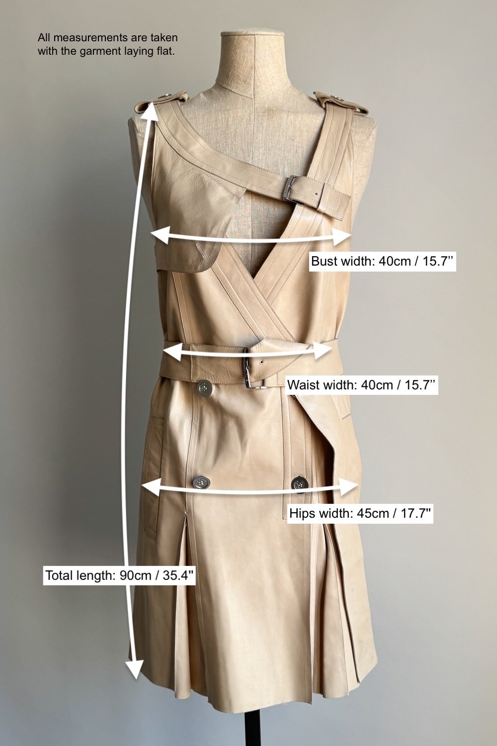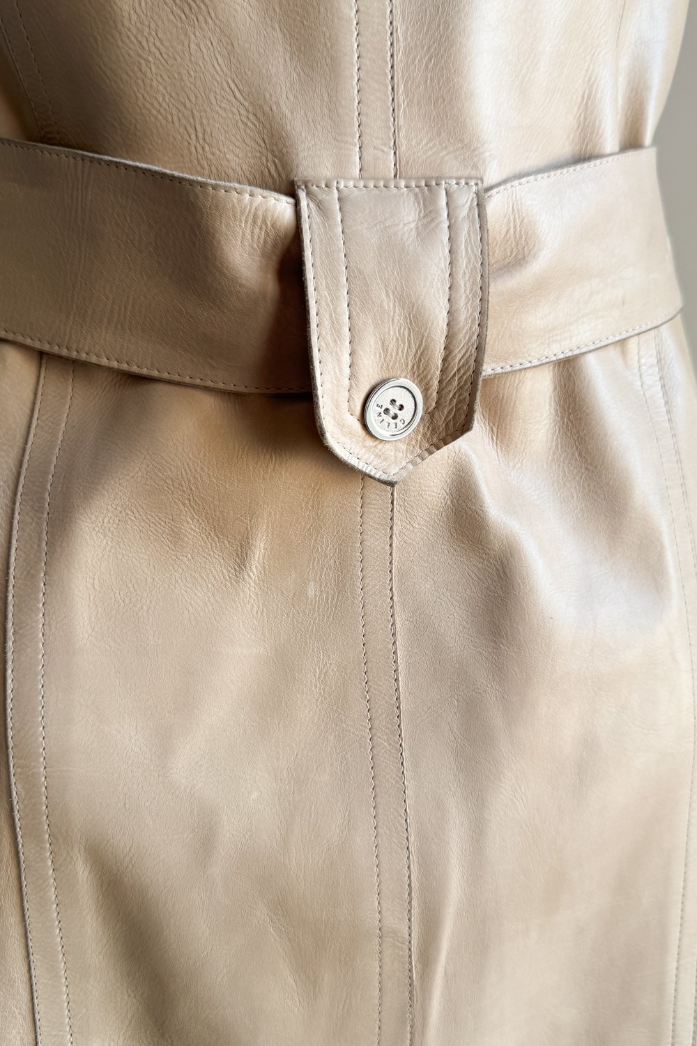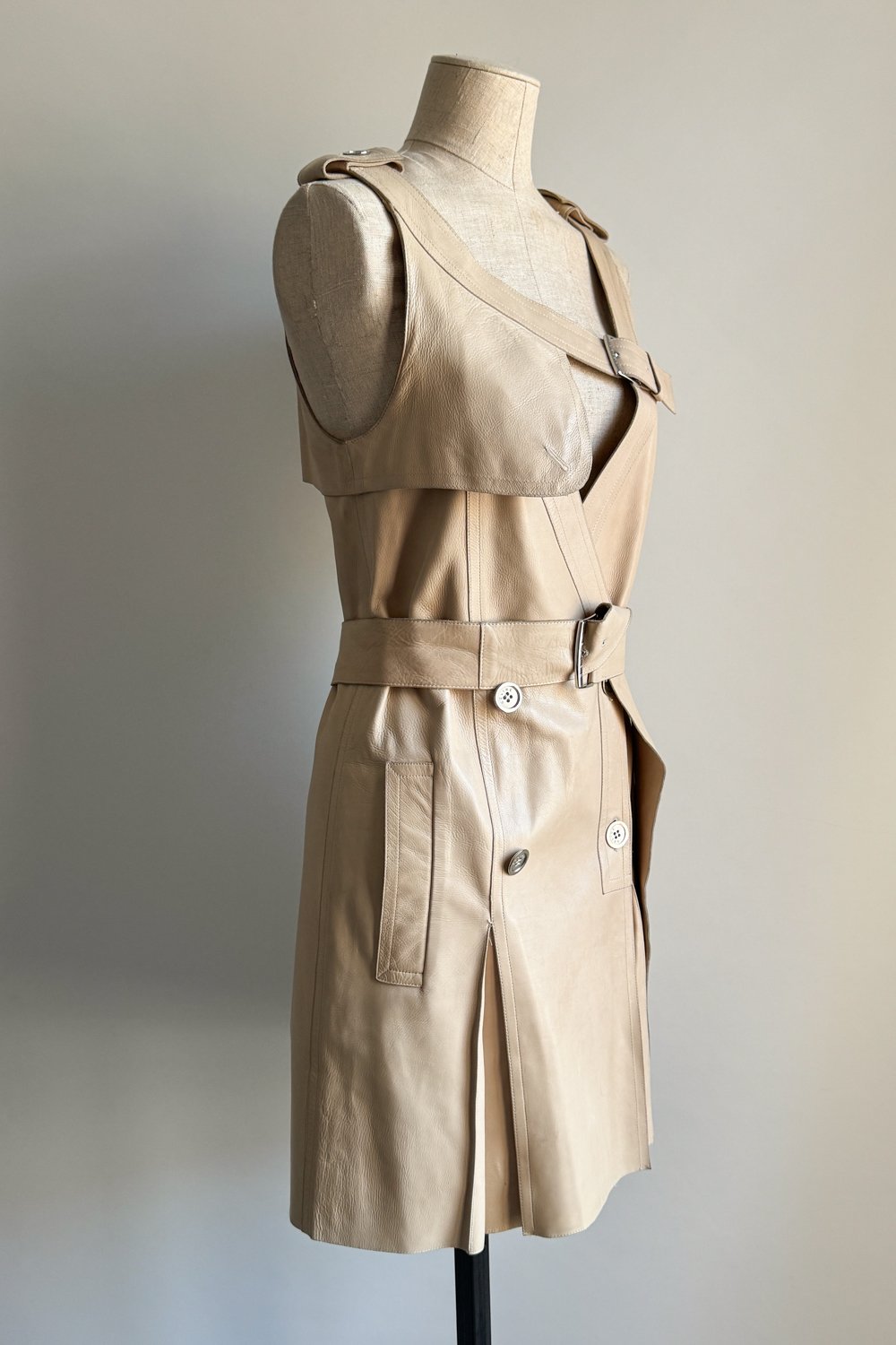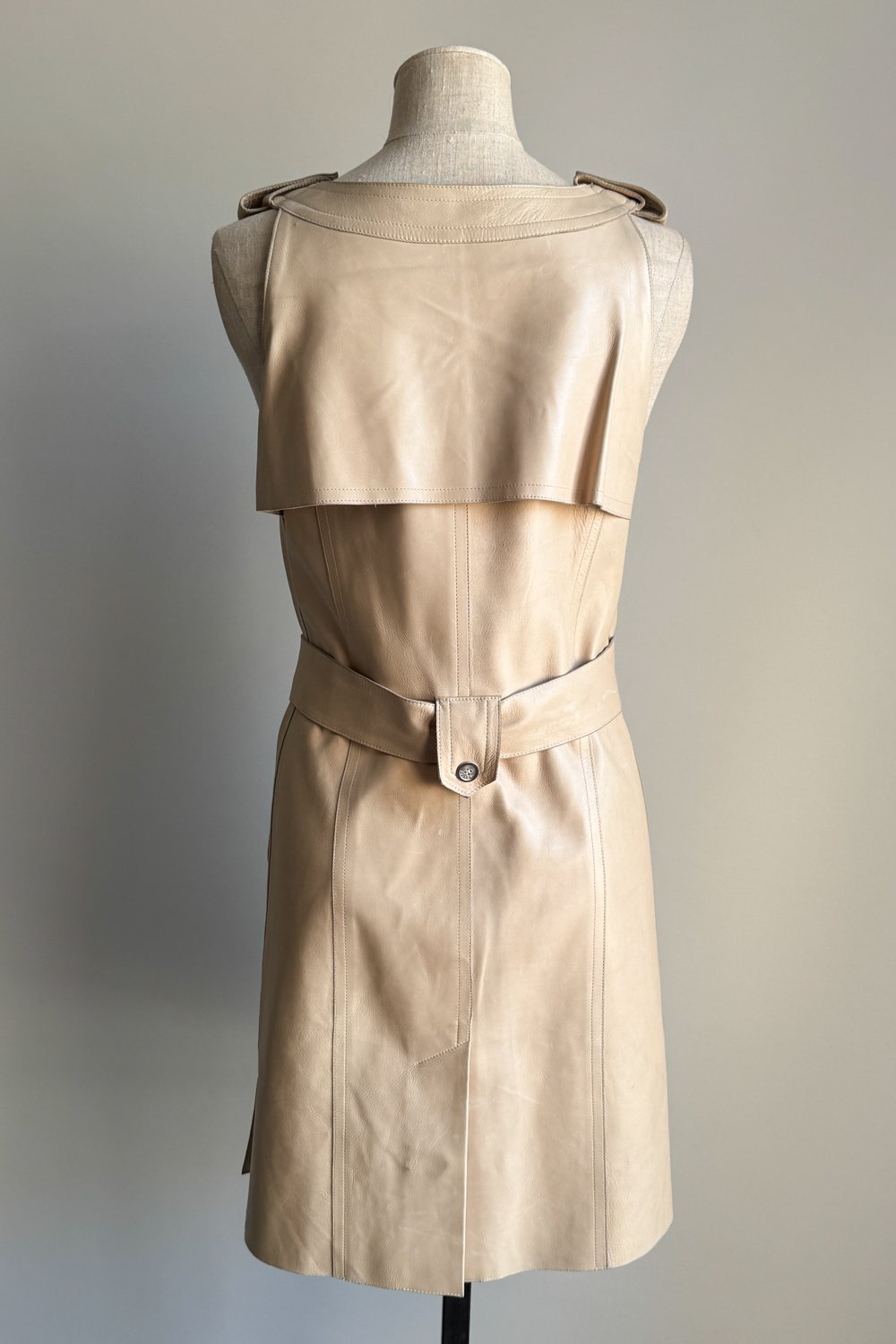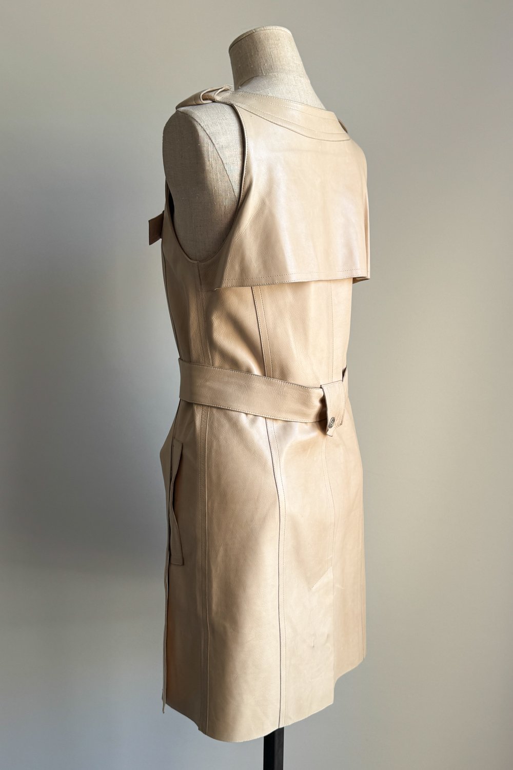 CELINE 2007 Asymmetrical Beige Leather Dress (S)