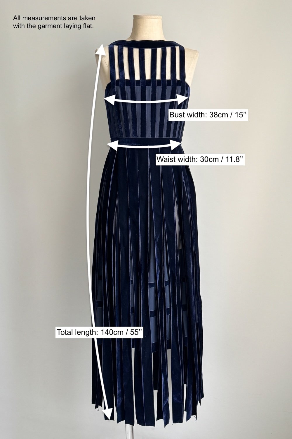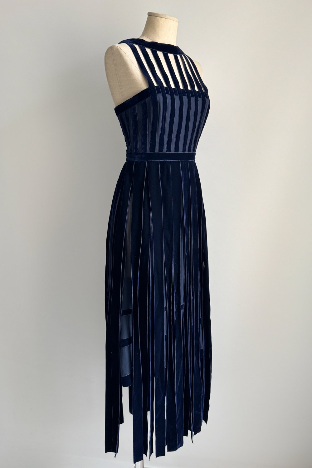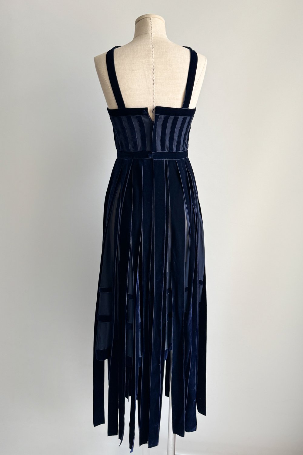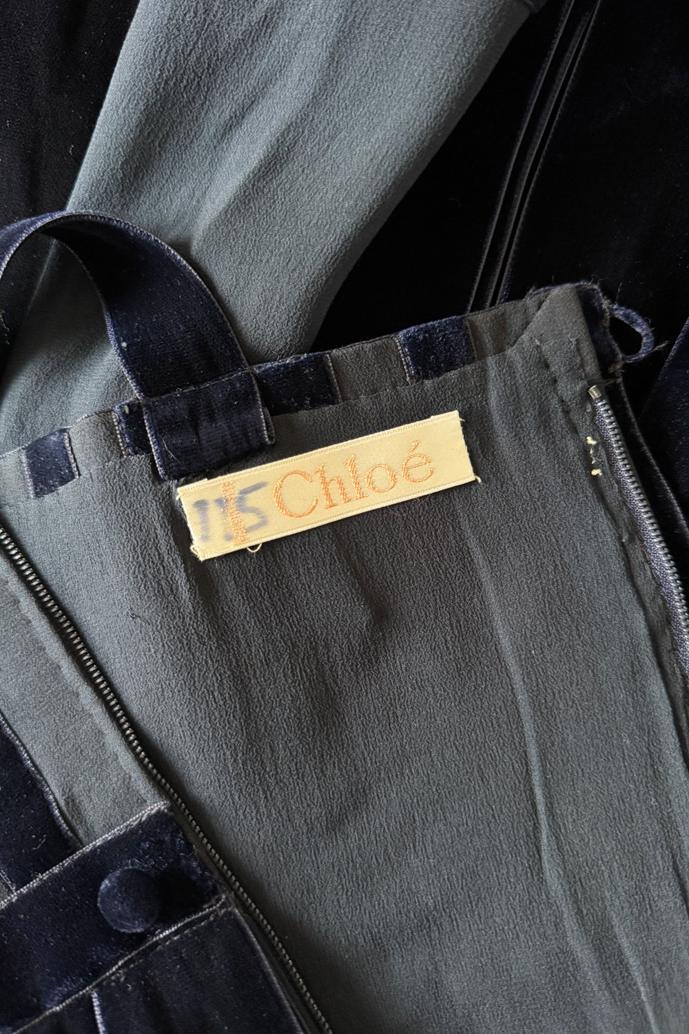 CHLOÉ 1993 Navy Blue Velvet Fringed Dress (XS)