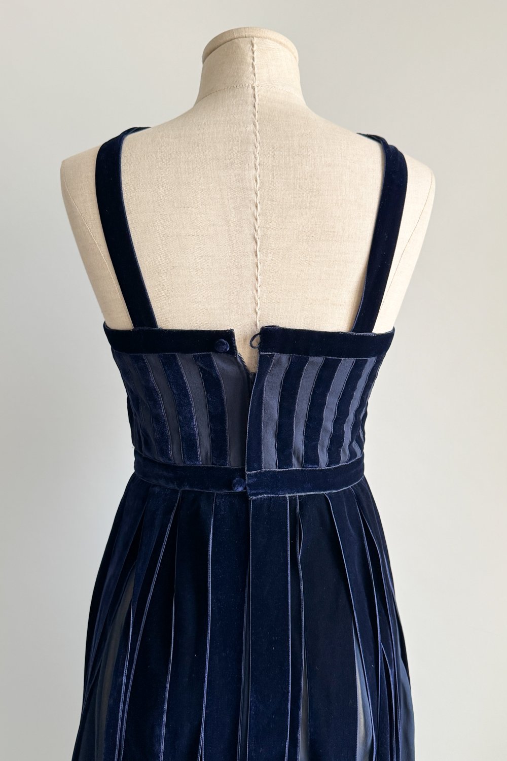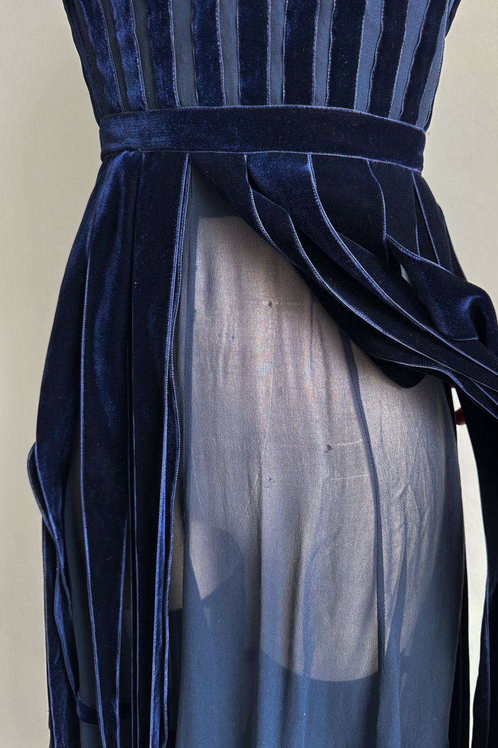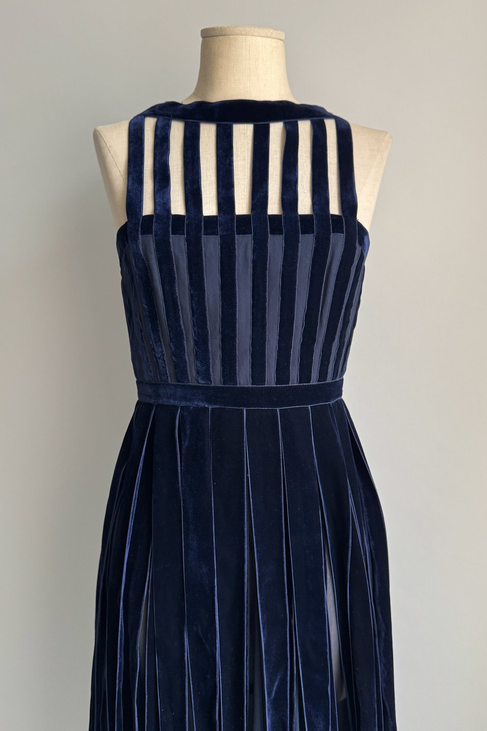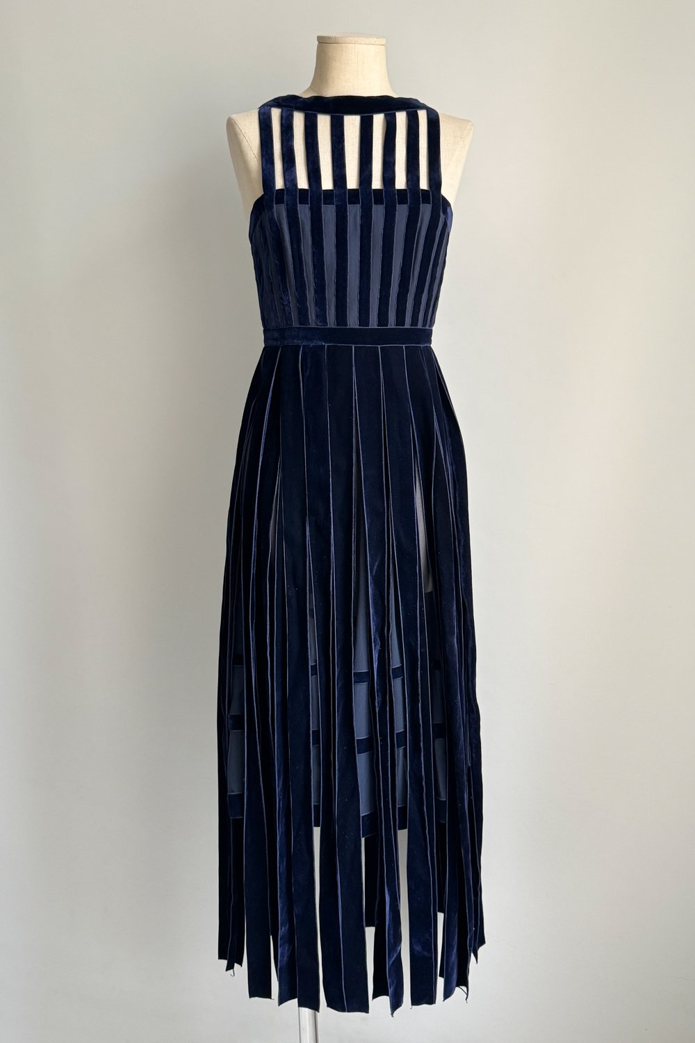 CHLOÉ 1993 Navy Blue Velvet Fringed Dress (XS)