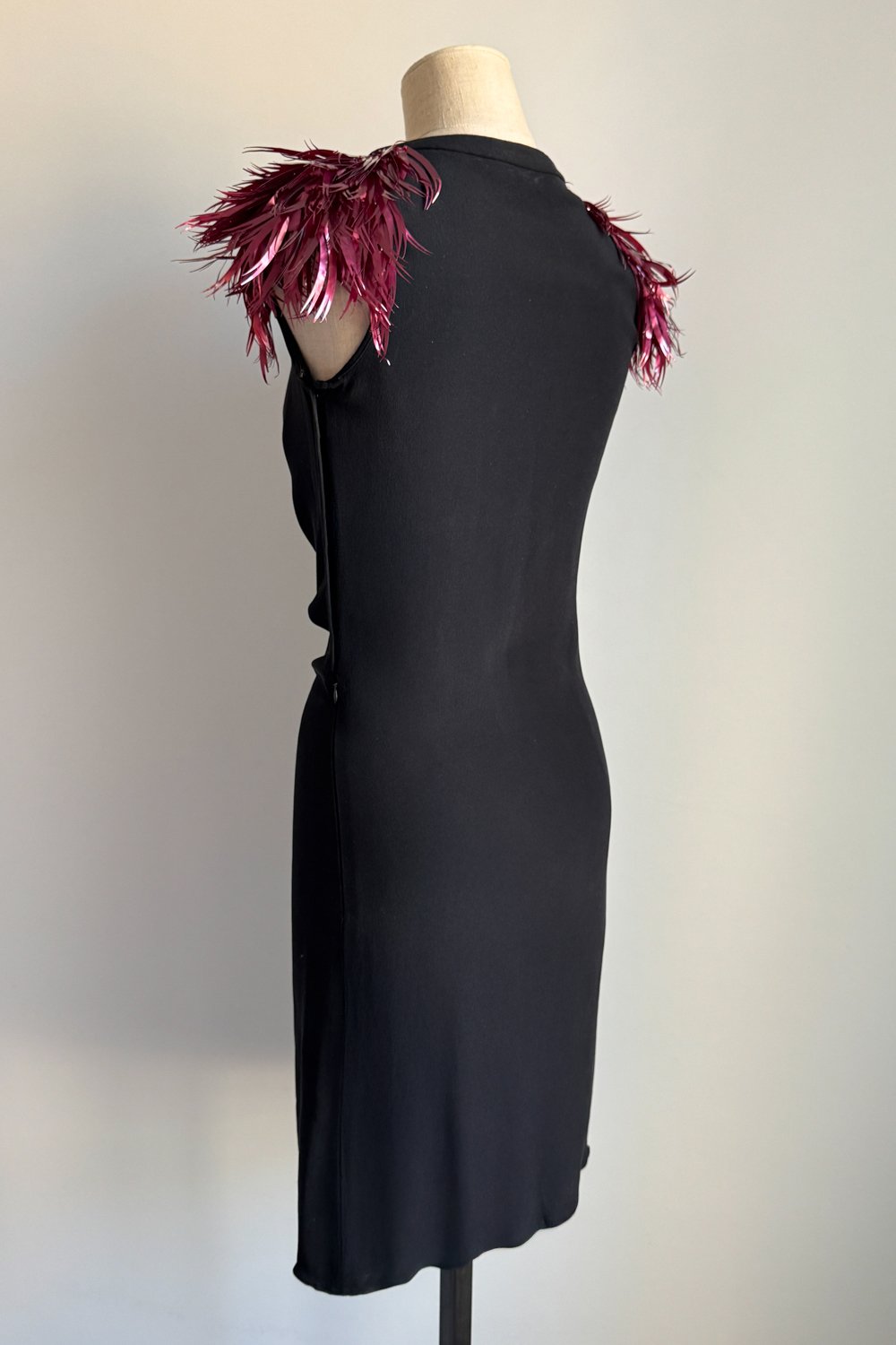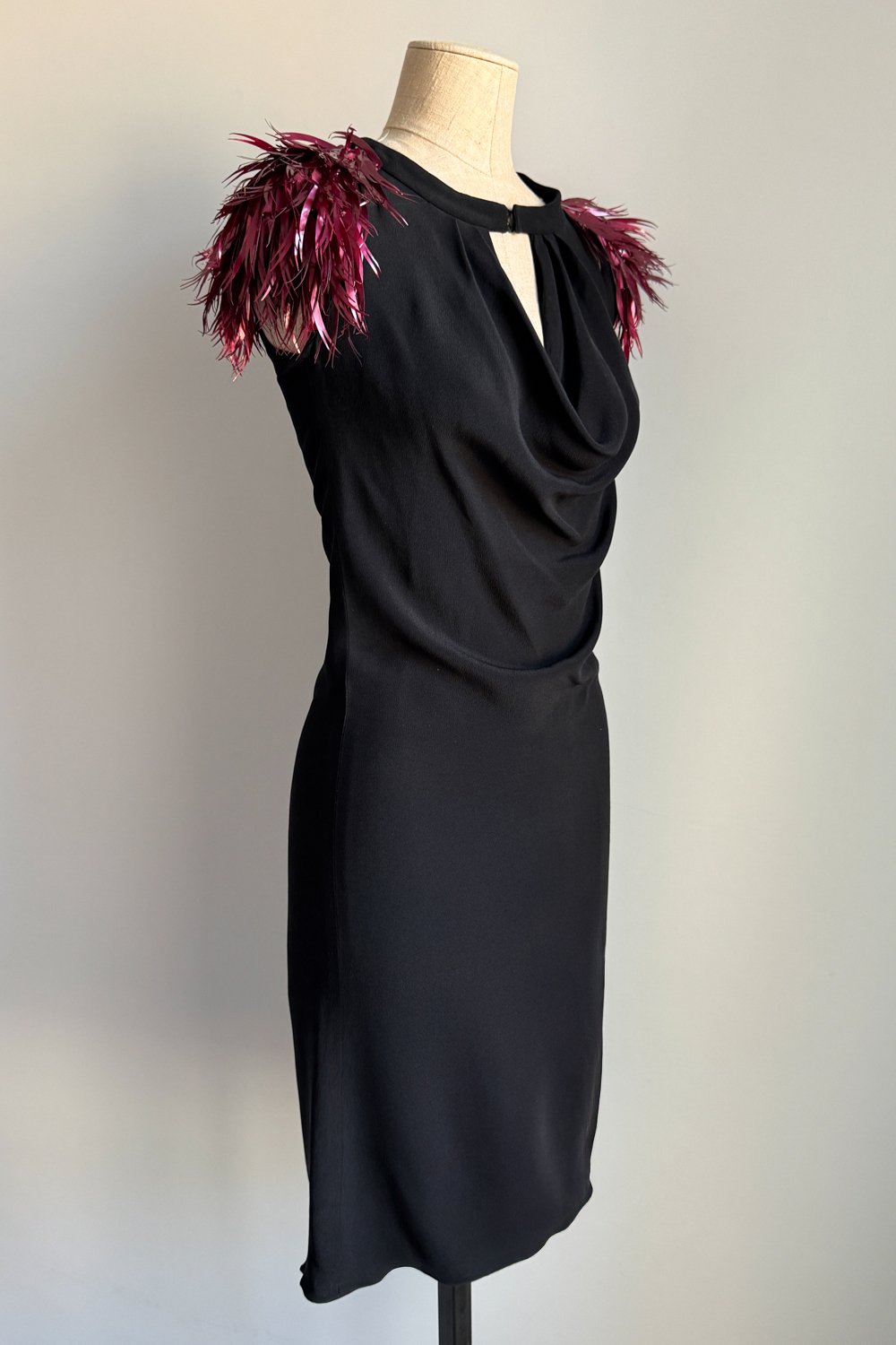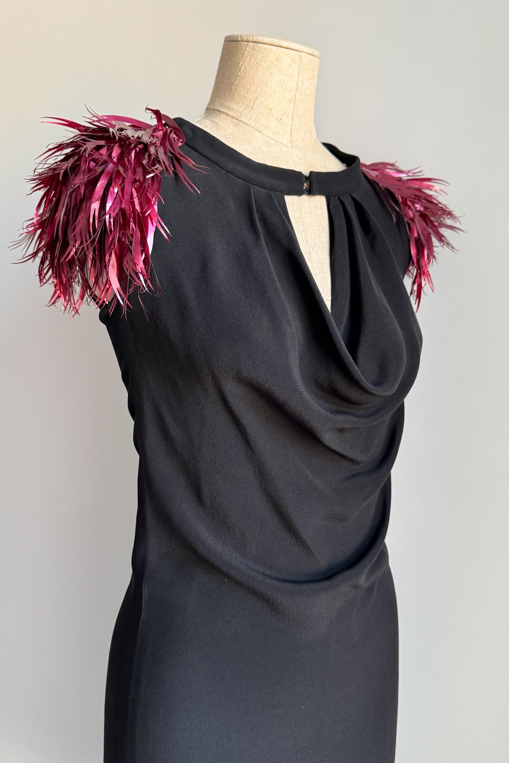 CHLOÉ 2000 Black Draped Dress with Feathered Shoulders (S)