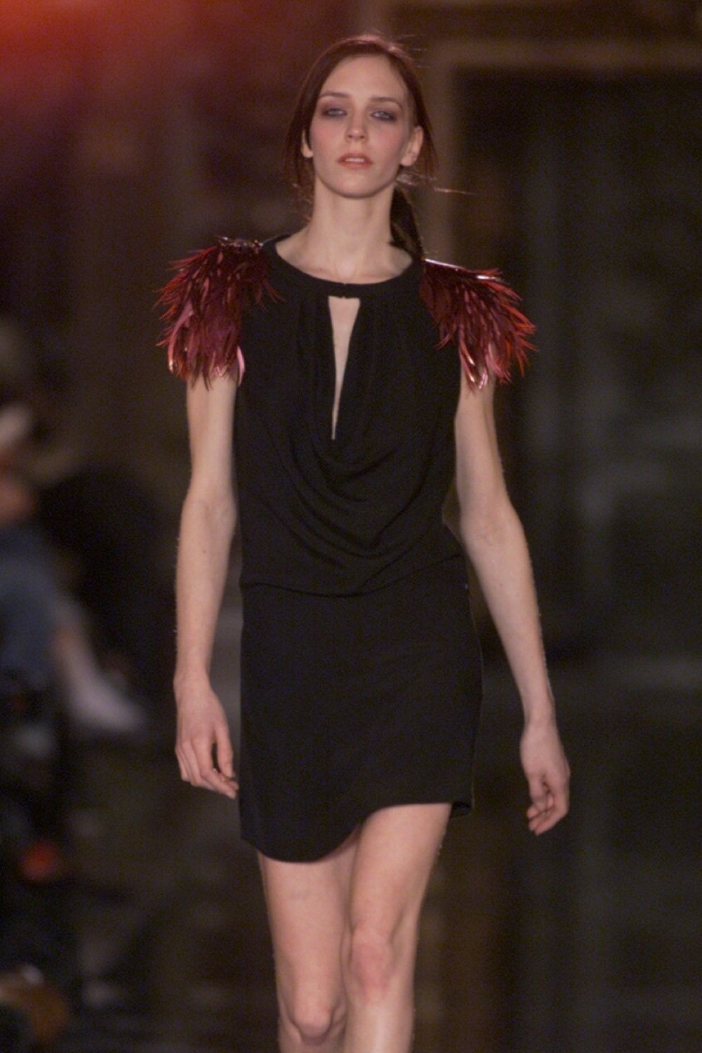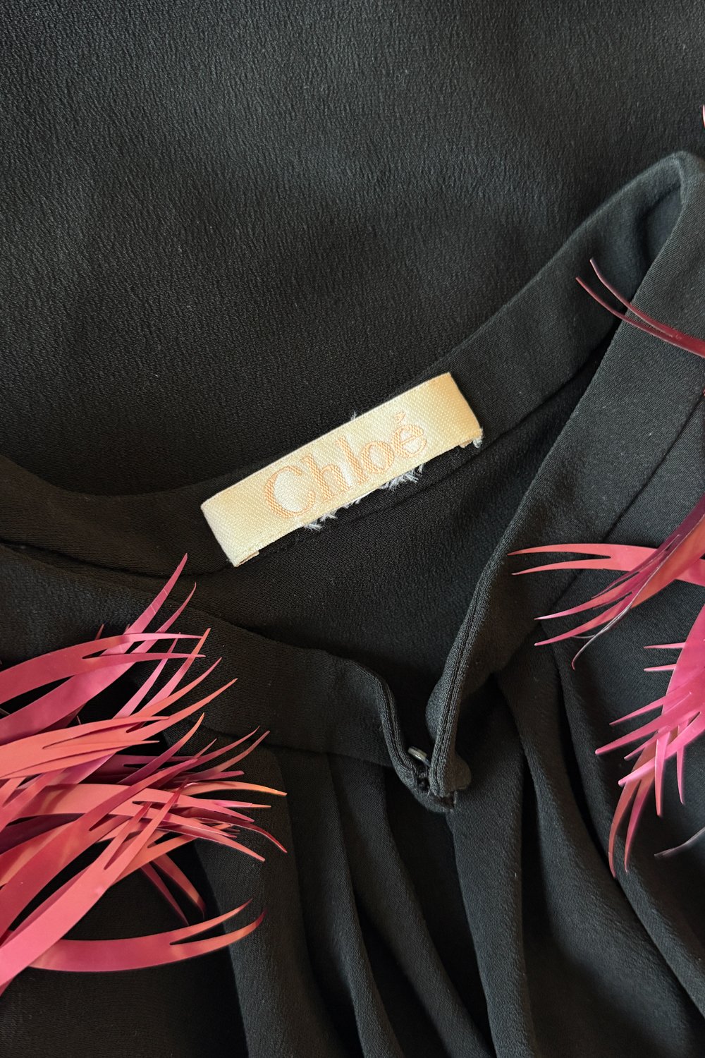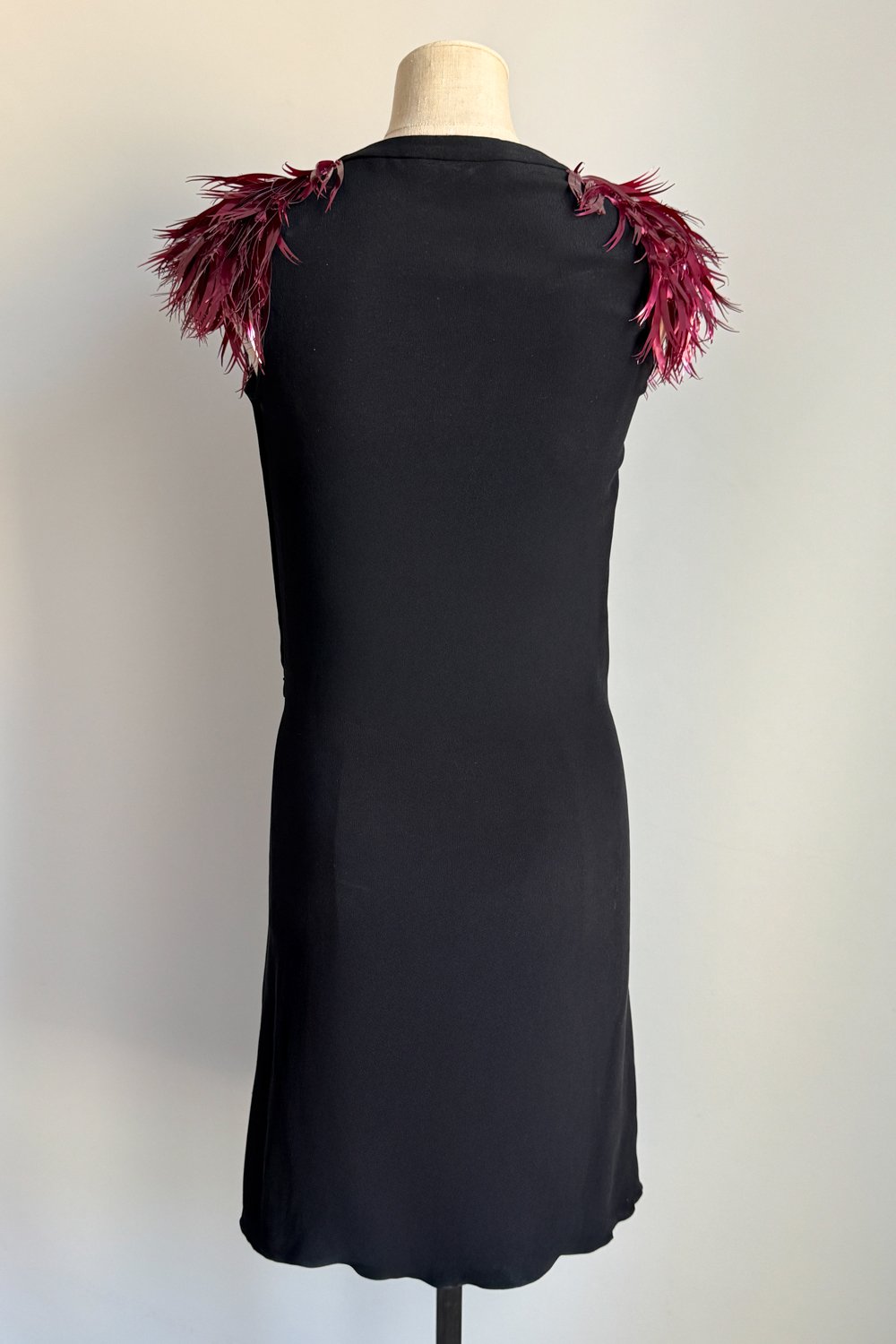 CHLOÉ 2000 Black Draped Dress with Feathered Shoulders (S)