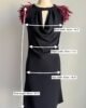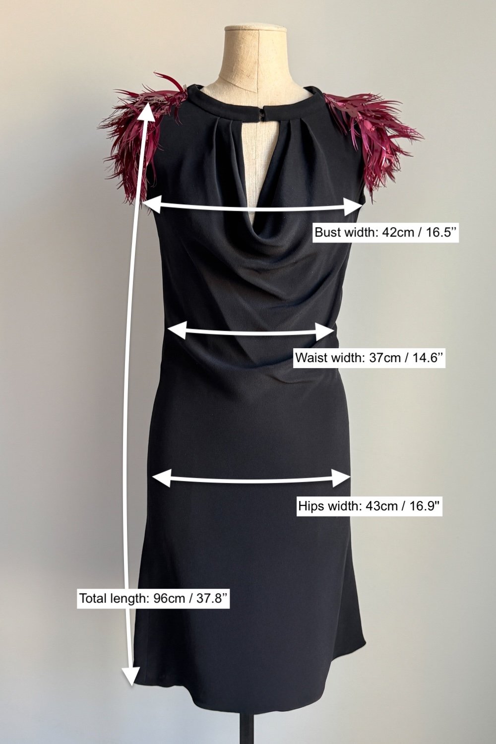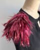- Embellished shoulders with burgundy “feather” detailing