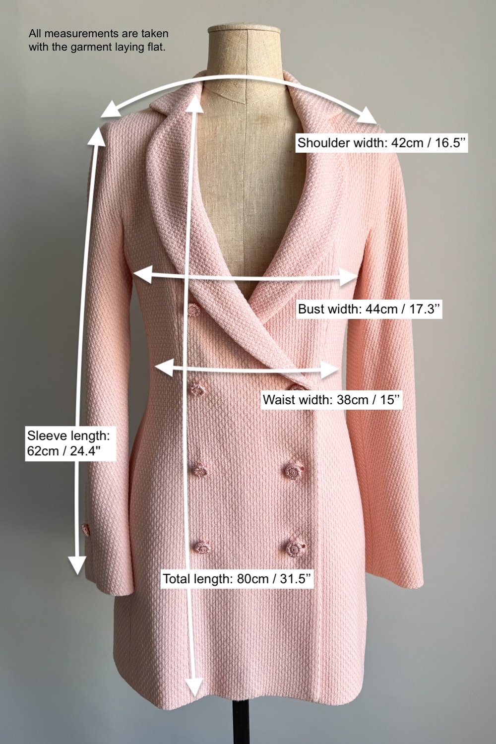 - For aesthetic reasons, clothing items may be pinned for the on-model and mannequin photos. Please use the provided measurements and recommended size in the description as a reference.