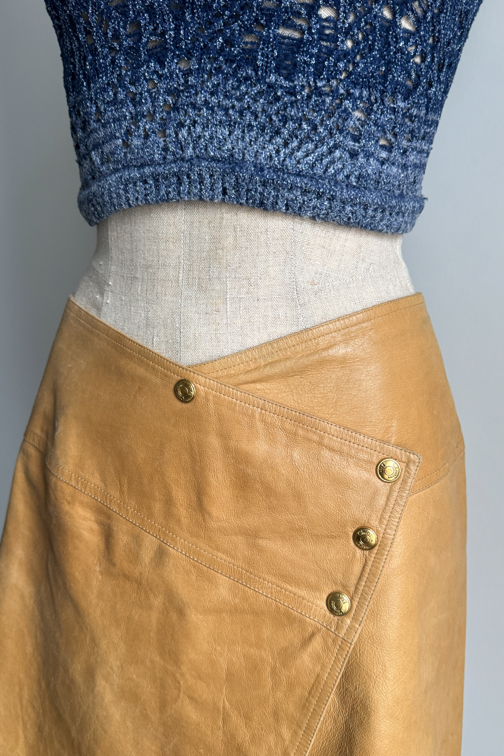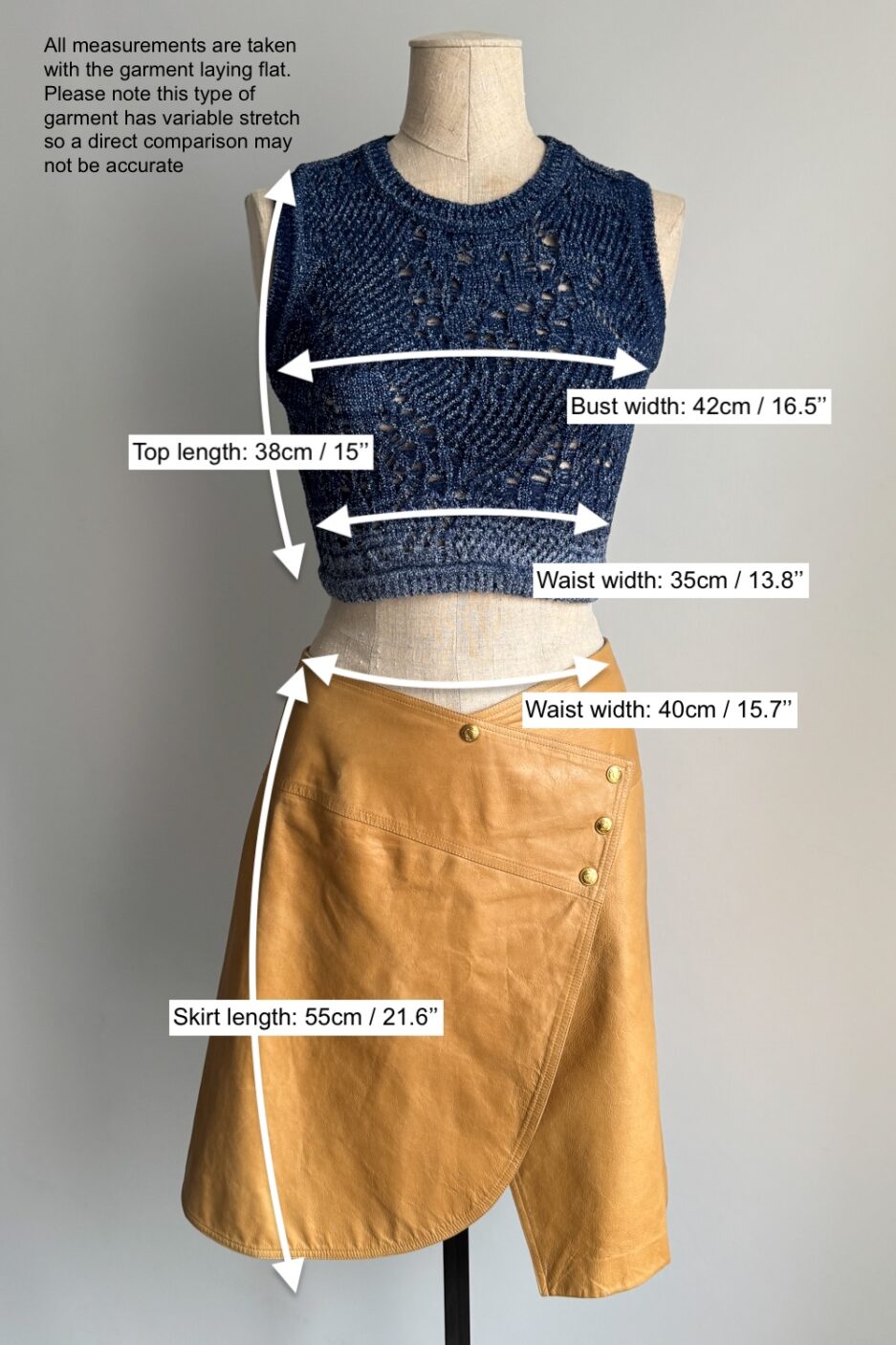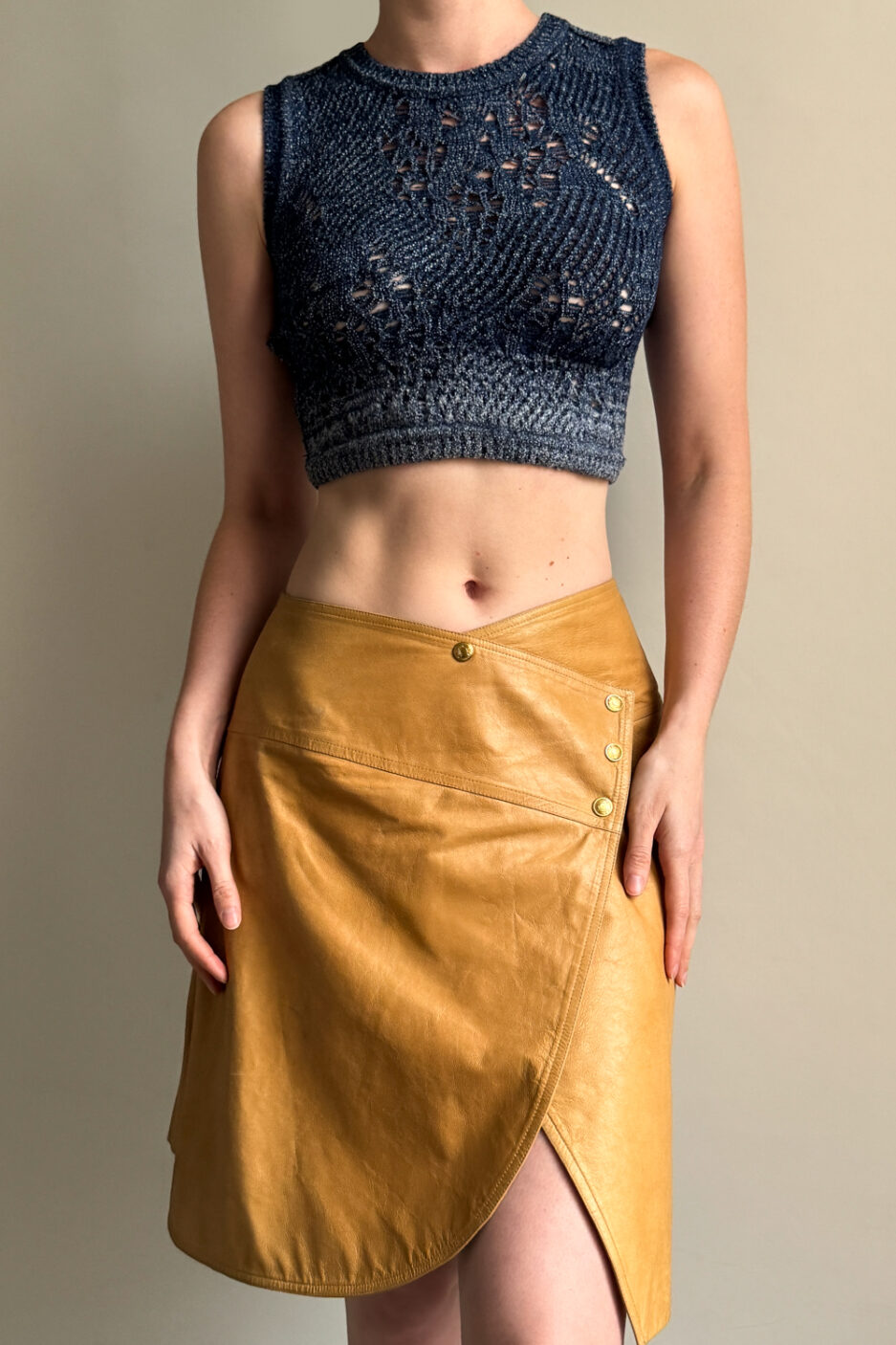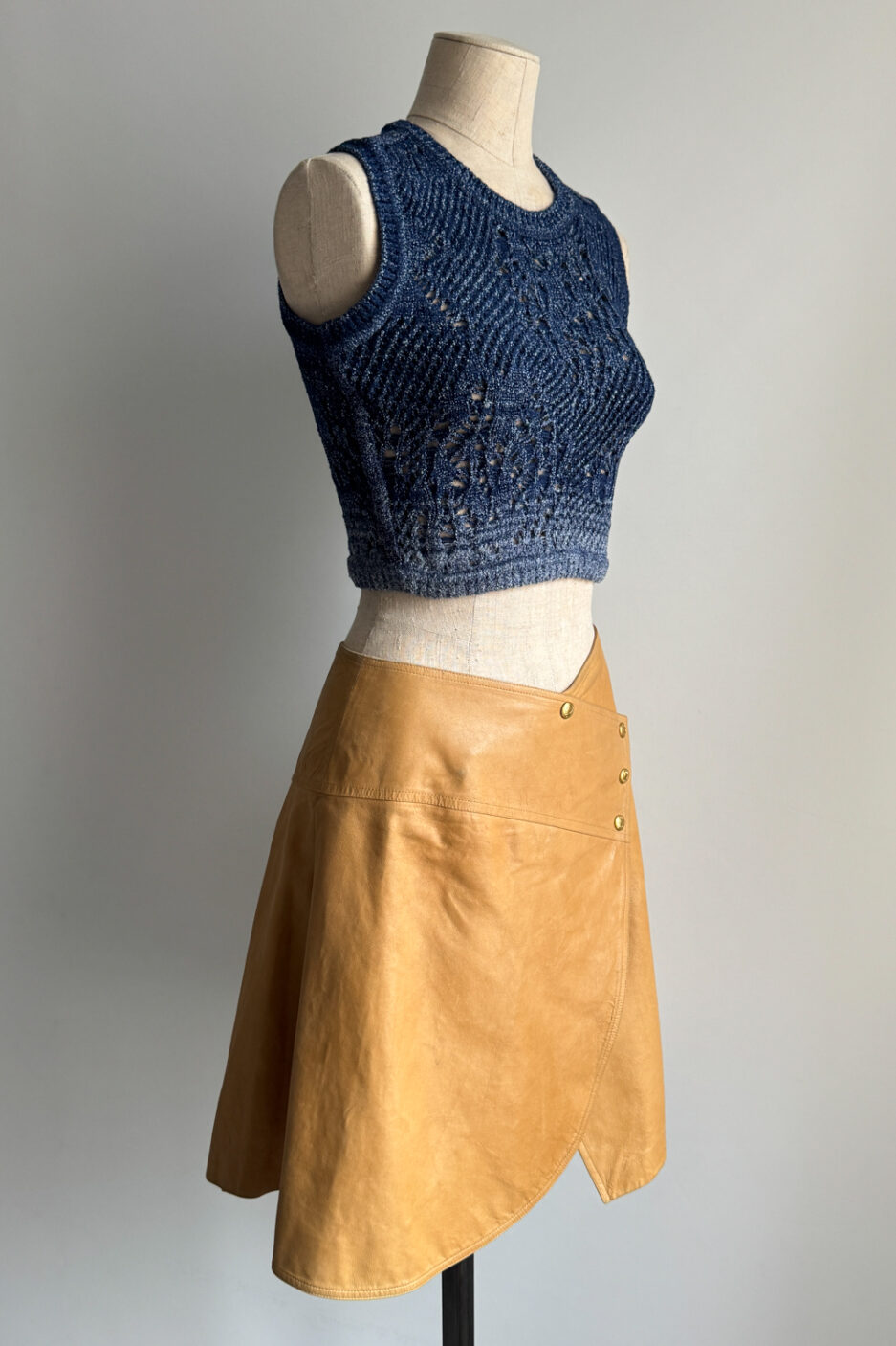CHRISTIAN DIOR 2000 Blue Knit Crop Top & Camel Leather Skirt Set (M-L)