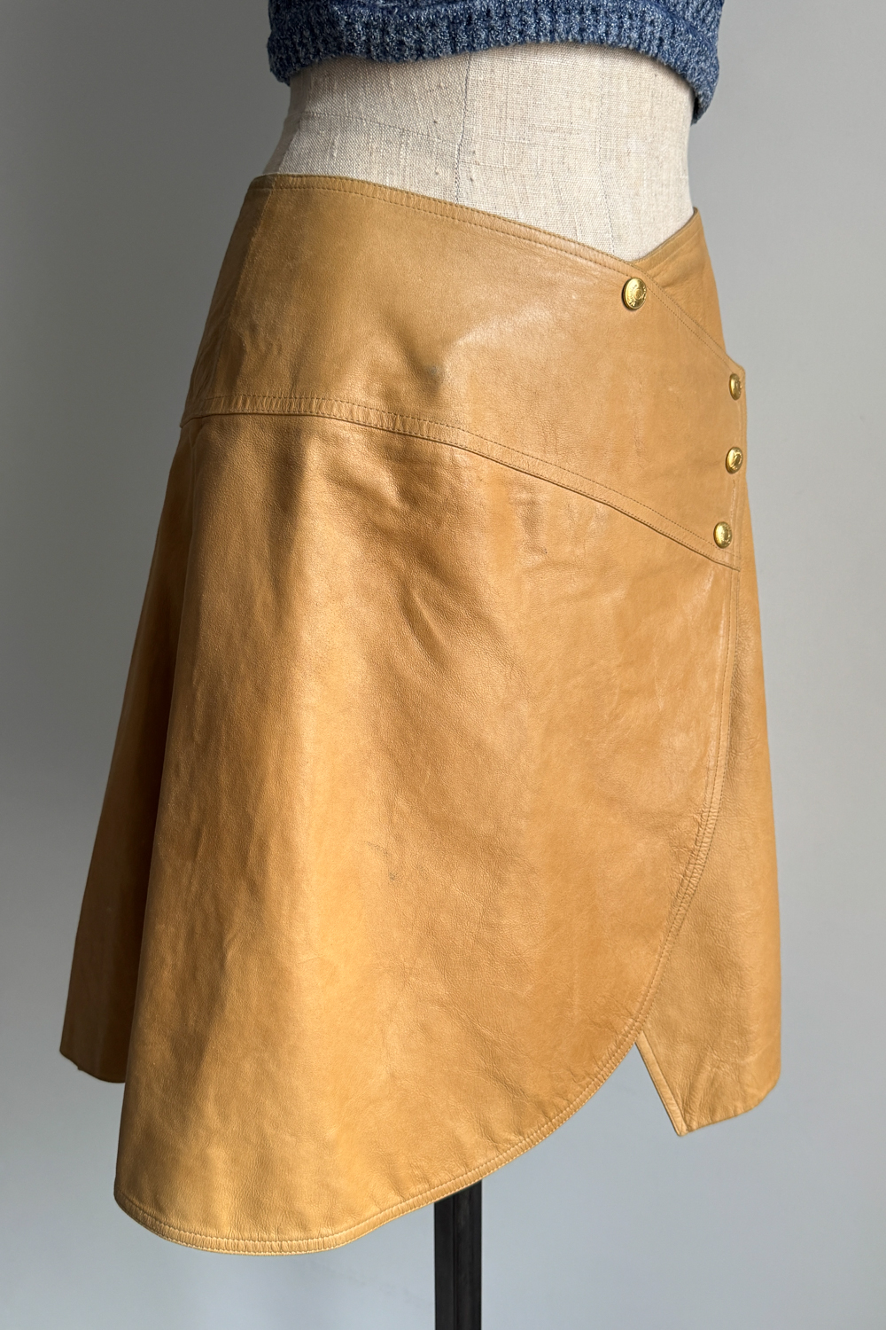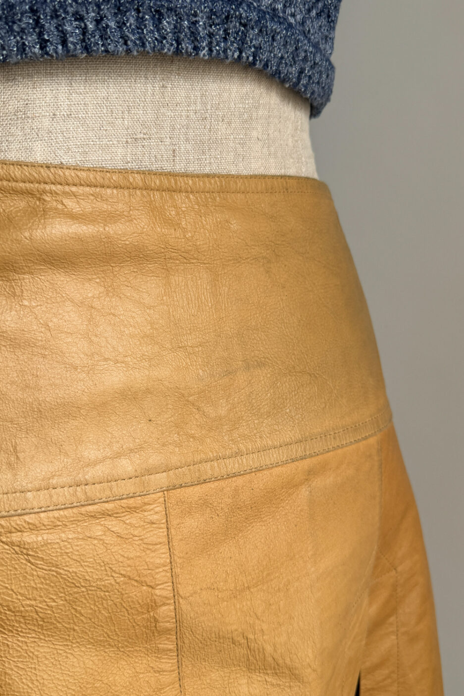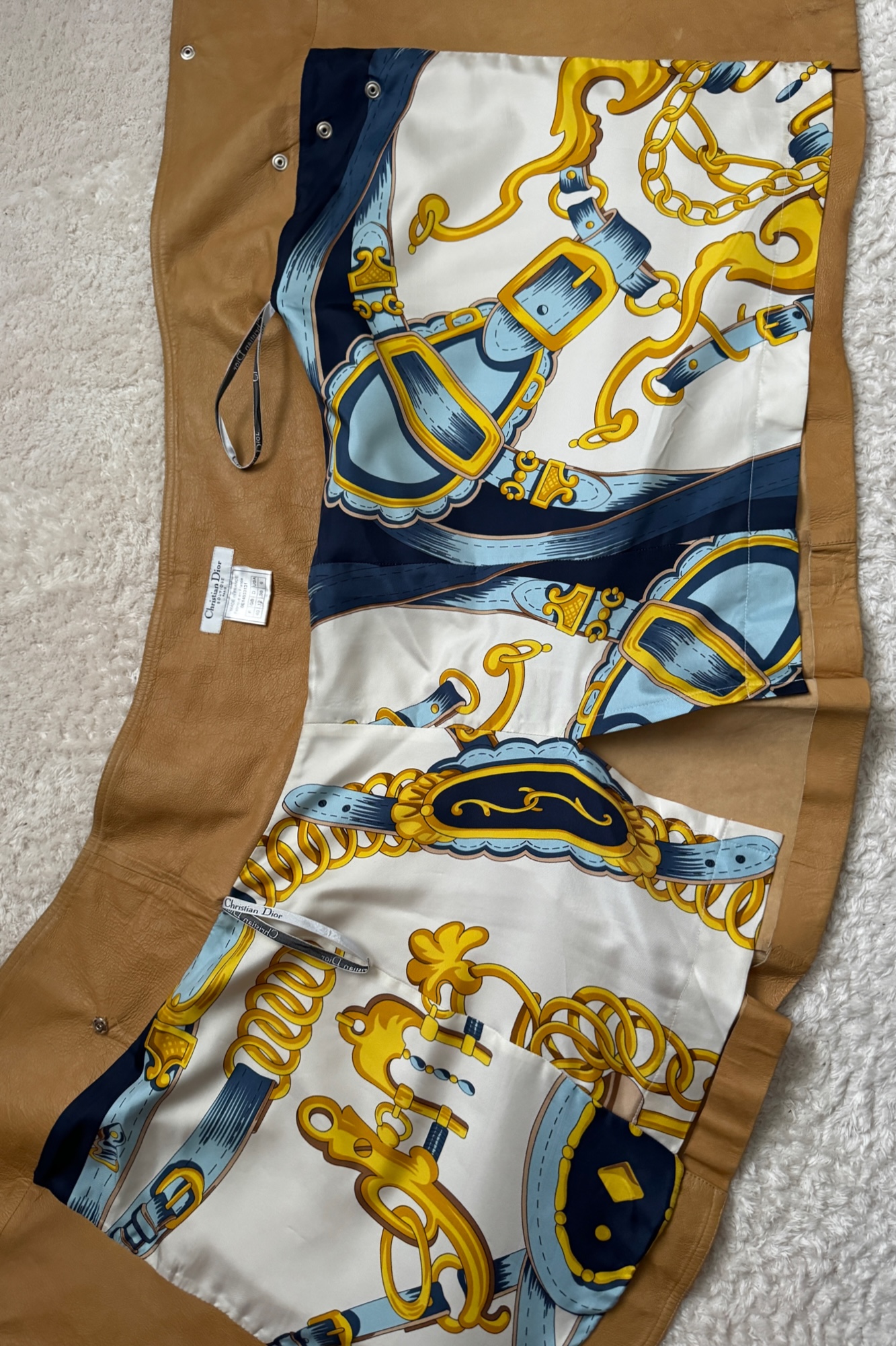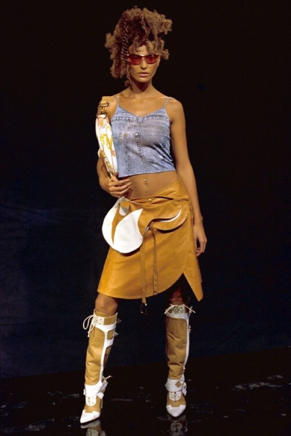 CHRISTIAN DIOR 2000 Blue Knit Crop Top & Camel Leather Skirt Set (M-L)