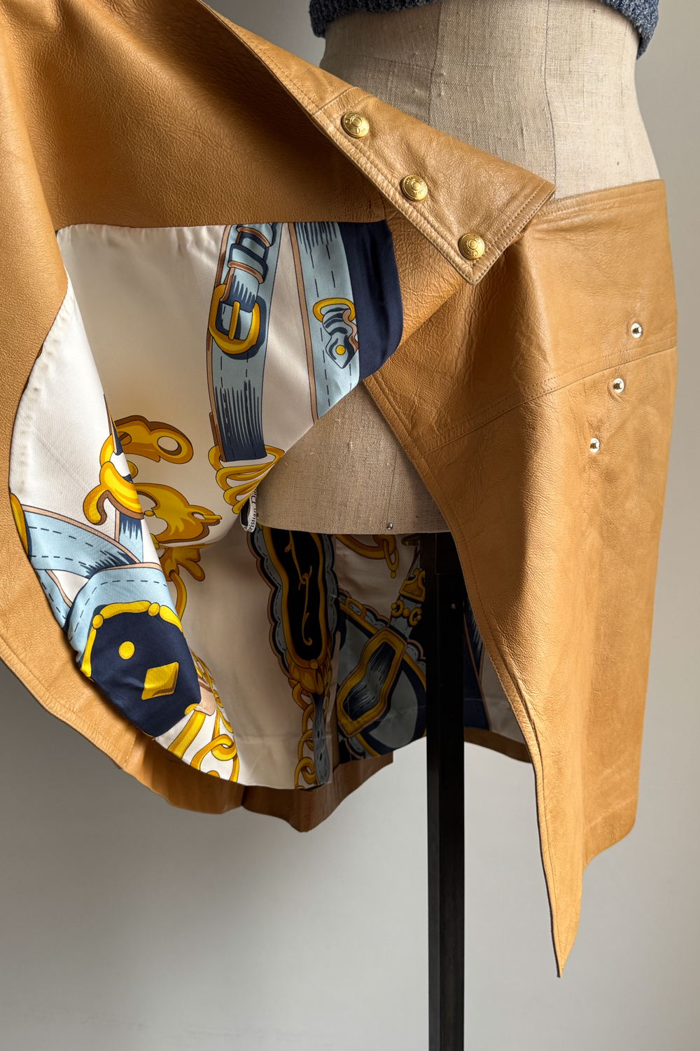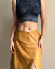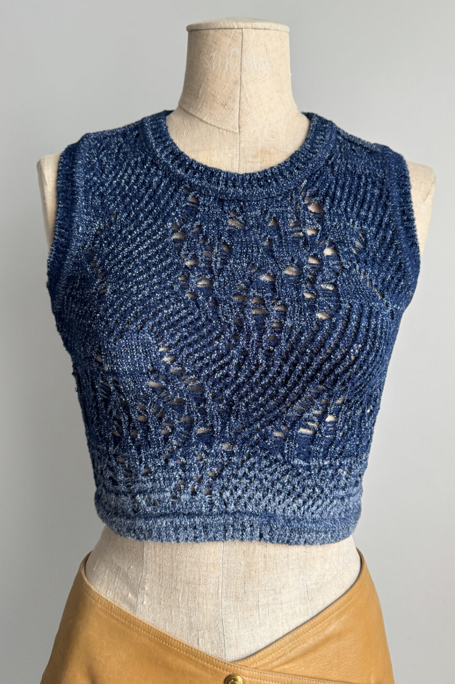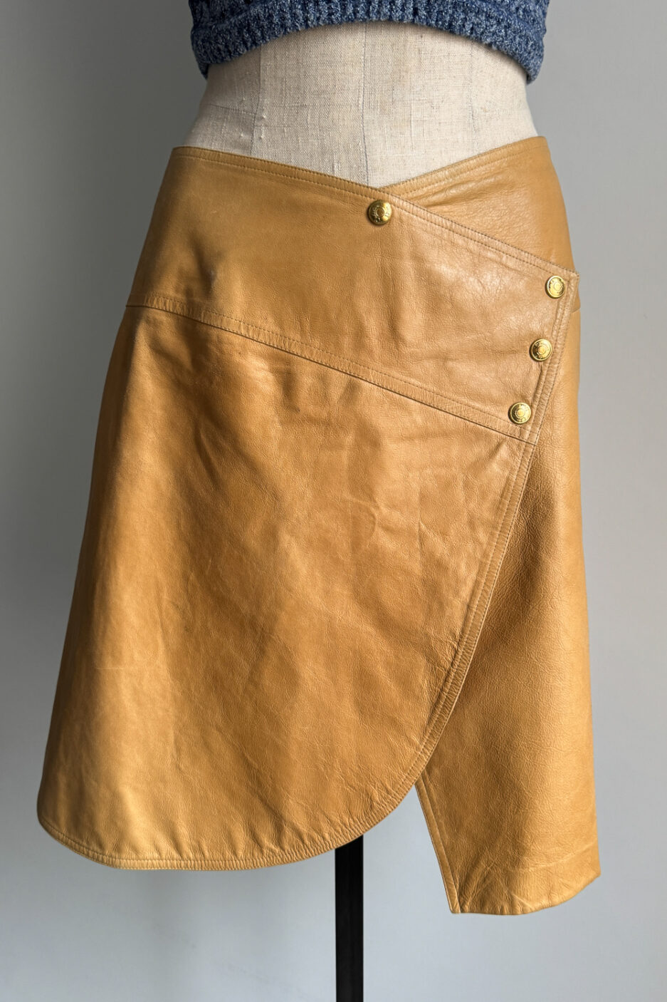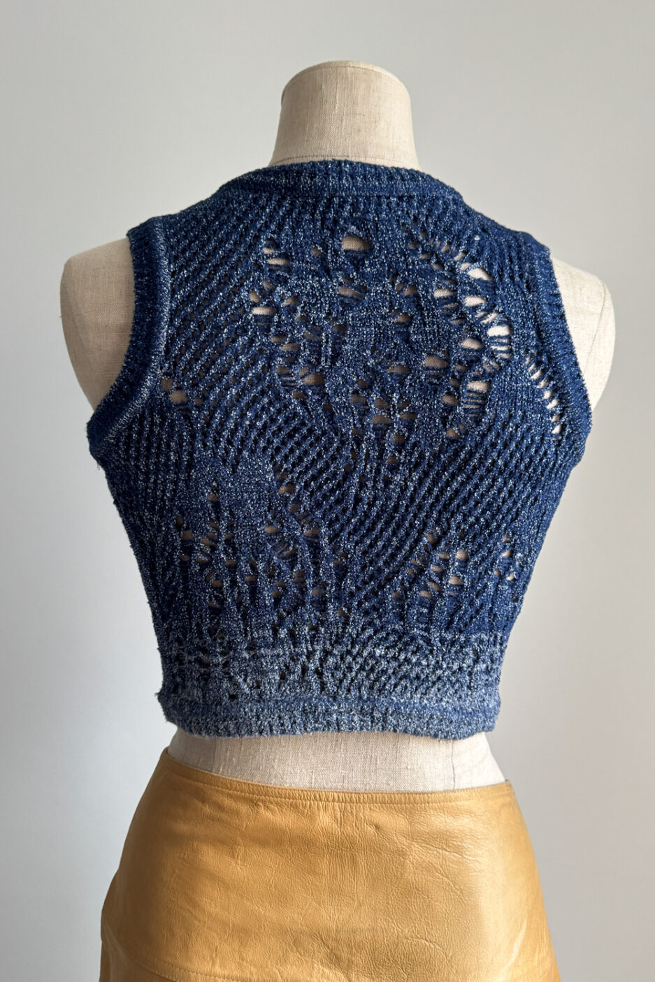 CHRISTIAN DIOR 2000 Blue Knit Crop Top & Camel Leather Skirt Set (M-L)