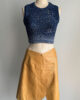 SIZE: Both pieces are FR 40. The top fits like a Medium. The skirt fits a Medium when worn low on the hips and can accommodate a Large when worn higher on the waist. Please refer to the last picture to see the flat lay measurements.