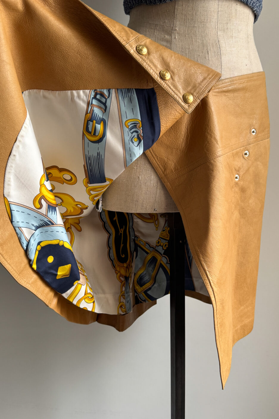 COMPOSITION: The top is made of 65% viscose, 35% polyamide. The skirt is made of 100% lambskin with a silk lining.