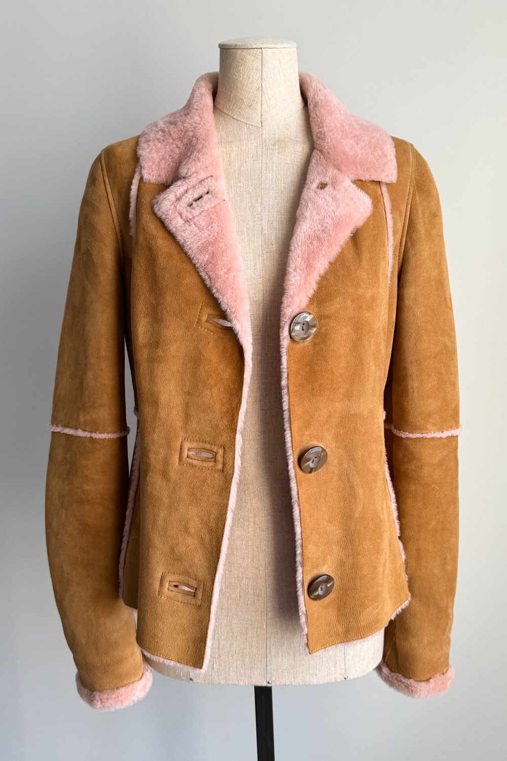 D&G 2004 Tan Suede & Pink Shearling Jacket (M)