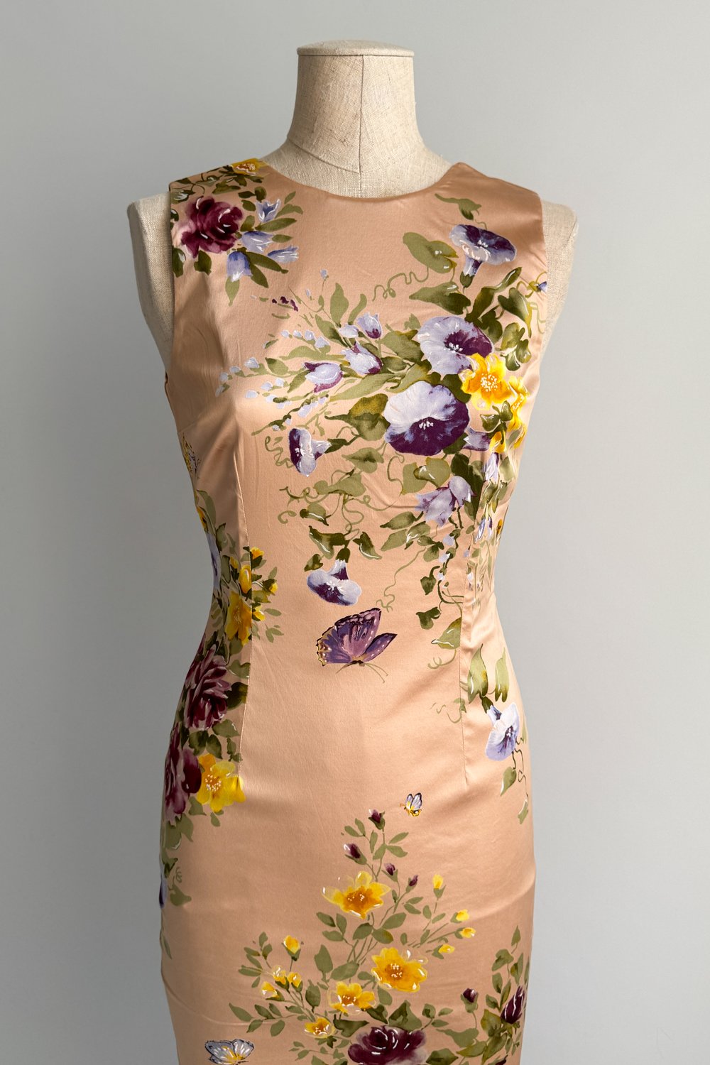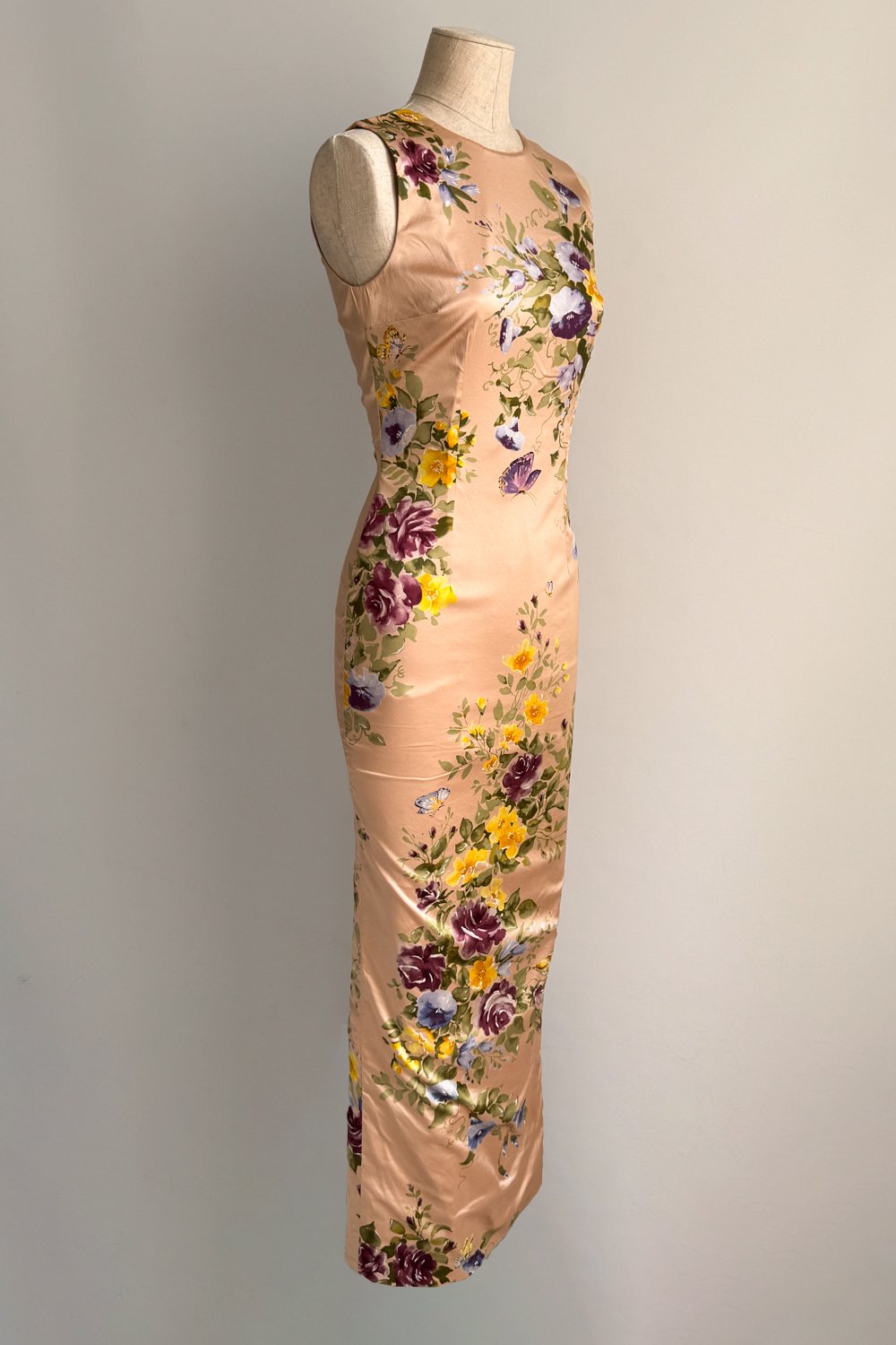 DOLCE & GABBANA 1998 Hand-Painted Floral Sheath Dress (S)