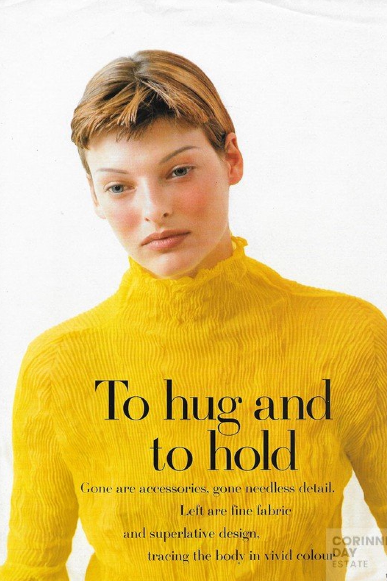 References: Linda Evangelista by Corrine Day, “To hug and to hold”, British Vogue May 1993
