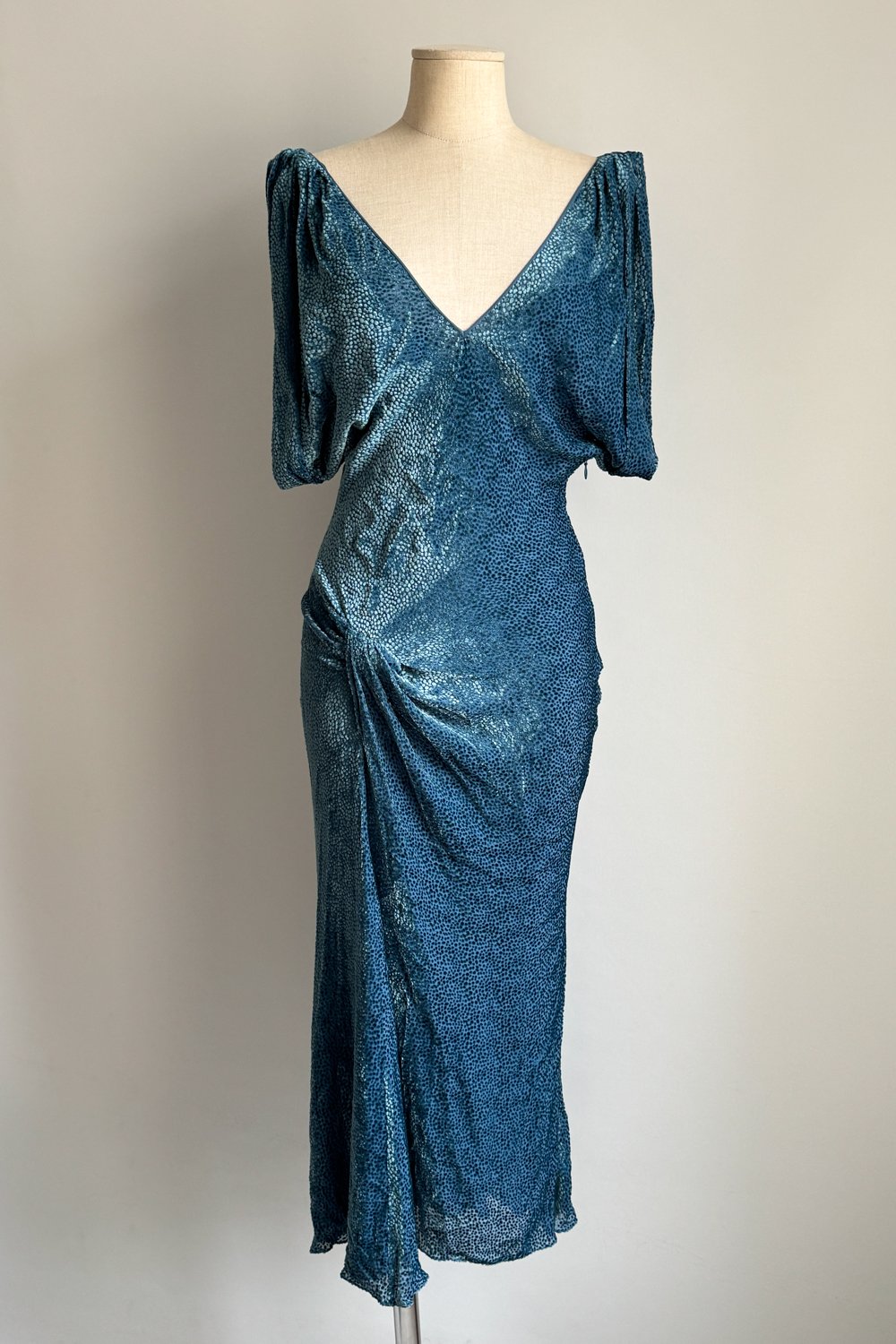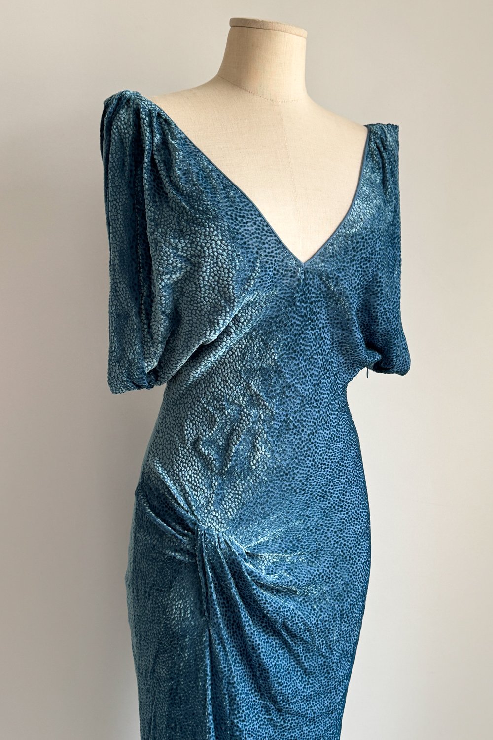 JOHN GALLIANO 2010s Blue Velvet Midi Dress (S)