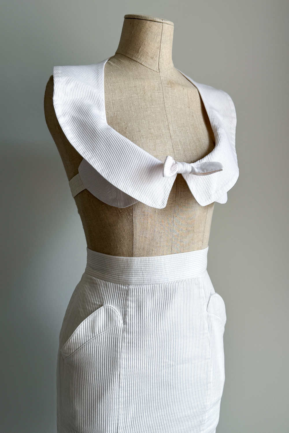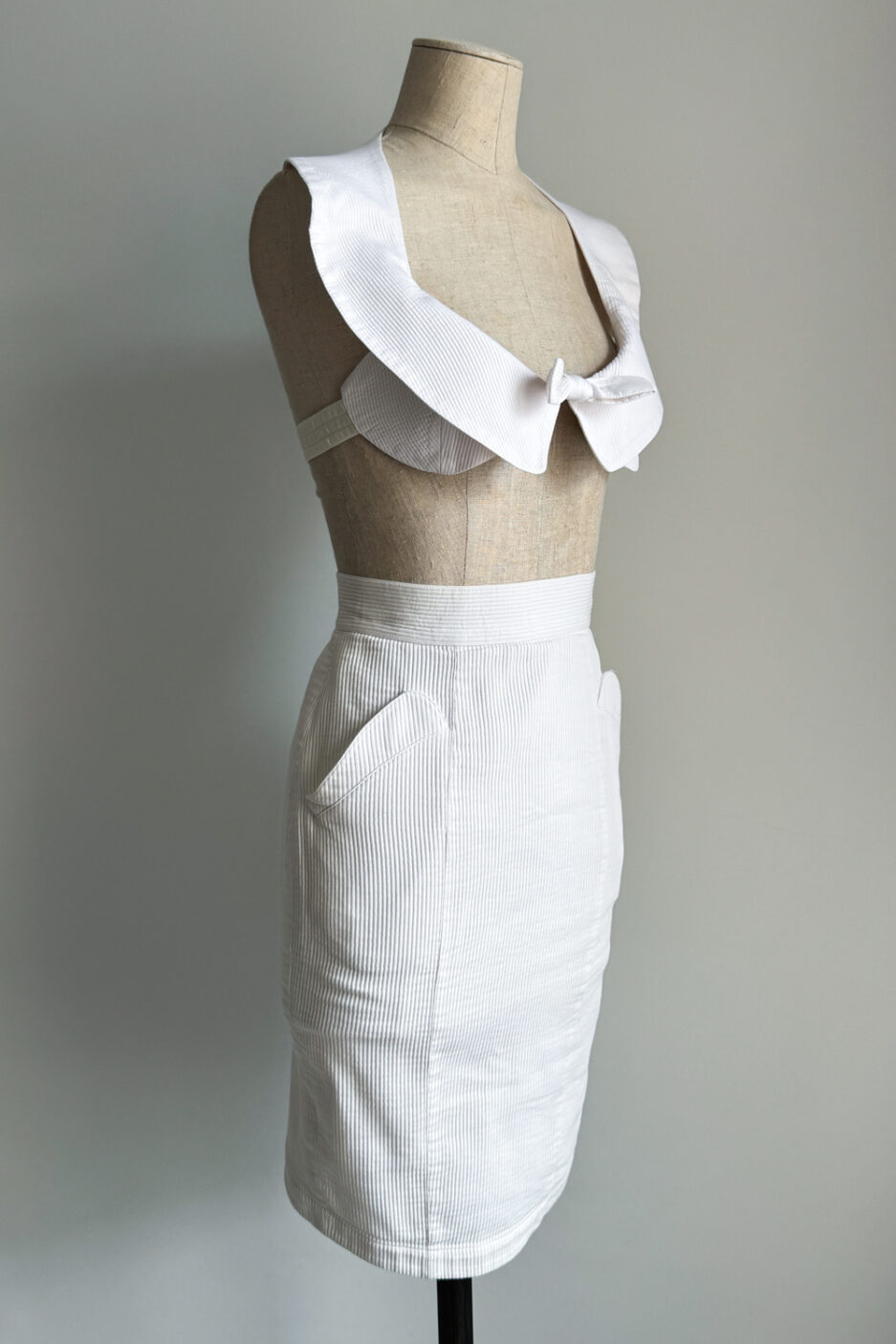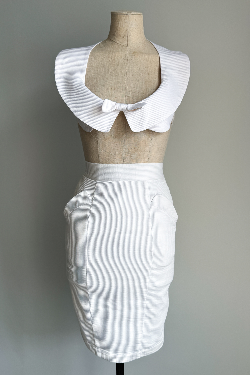 THIERRY MUGLER 1982 White Cotton Two-piece Set (XS)