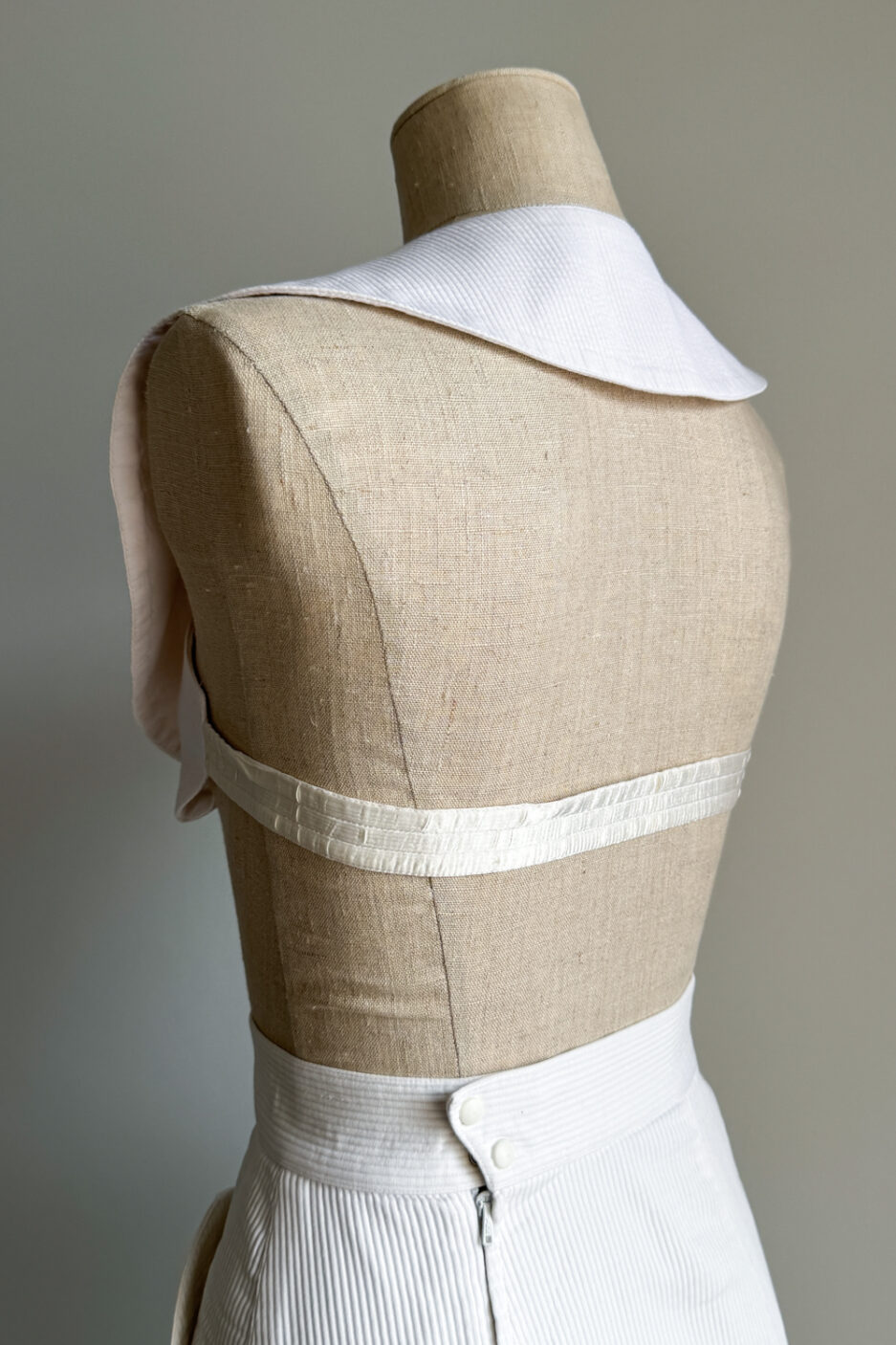 CONDITION: Both pieces are in very good condition, with only minor wear such as slight bubbling on the interfacing and a subtle difference in shade between the bra and the skirt. Please refer to the pictures.