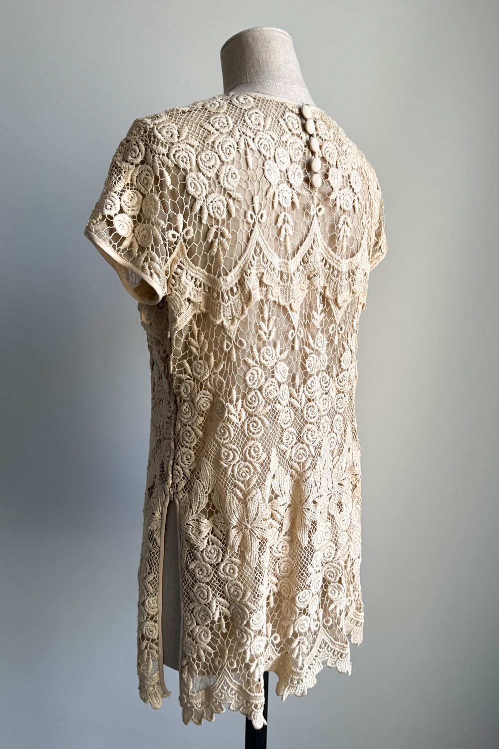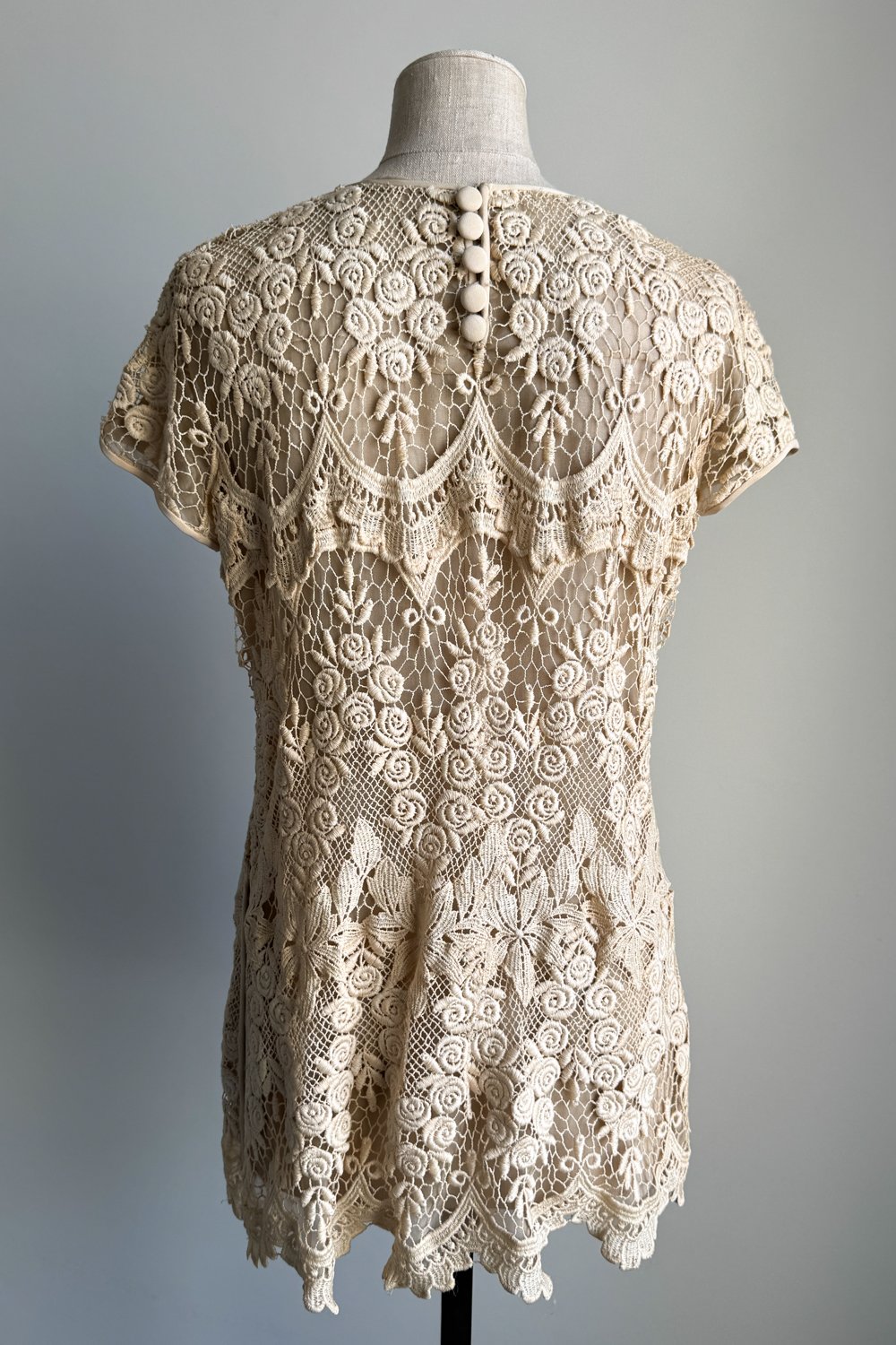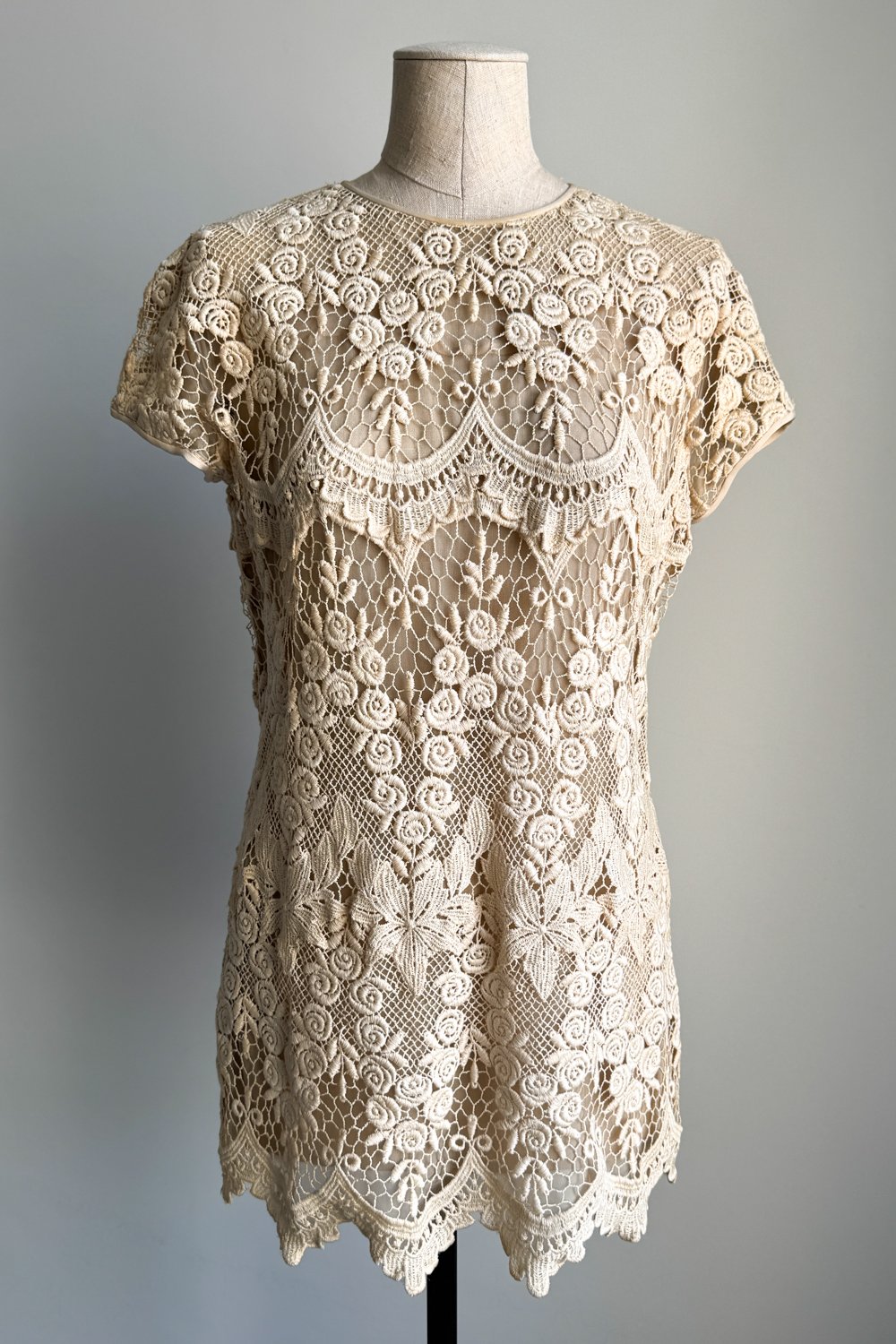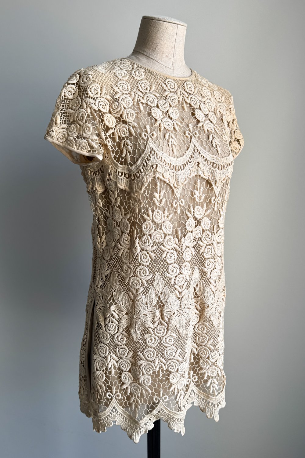 VALENTINO 1994 Beige Guipure Lace Mini Dress (M-L)