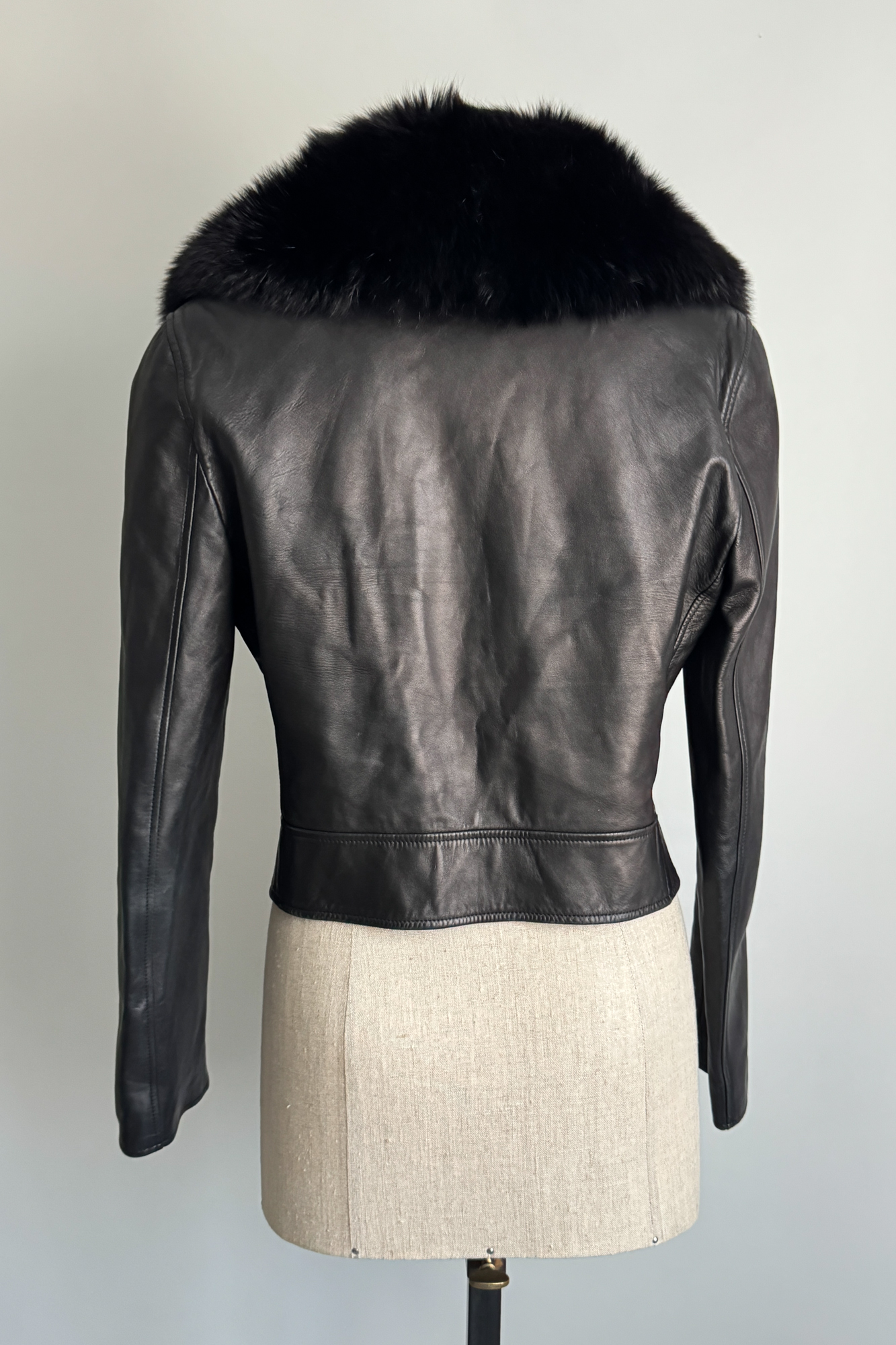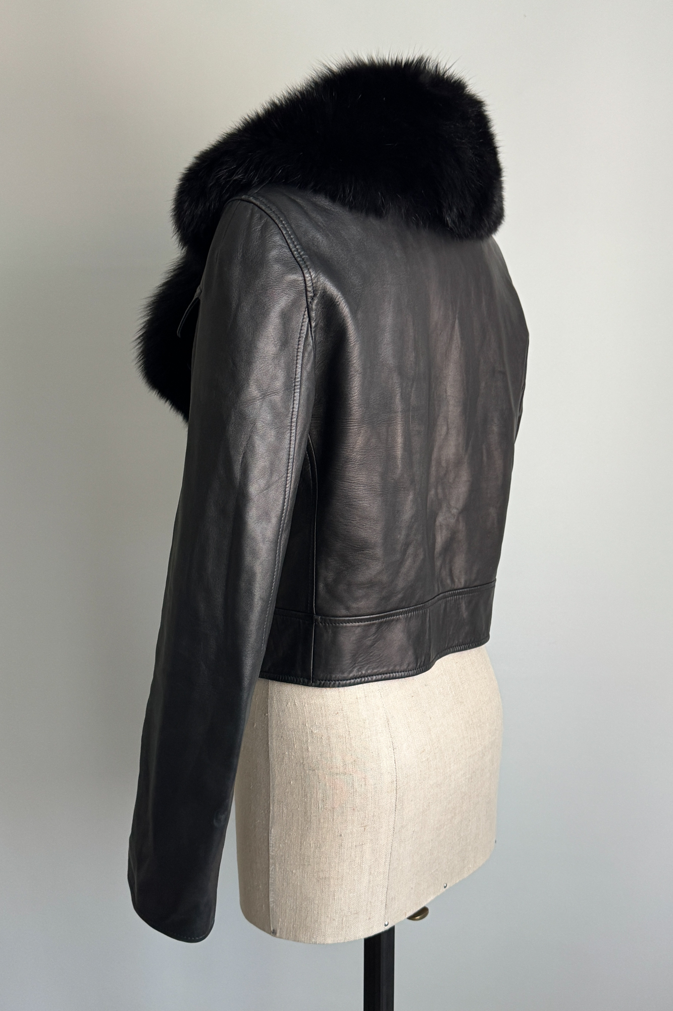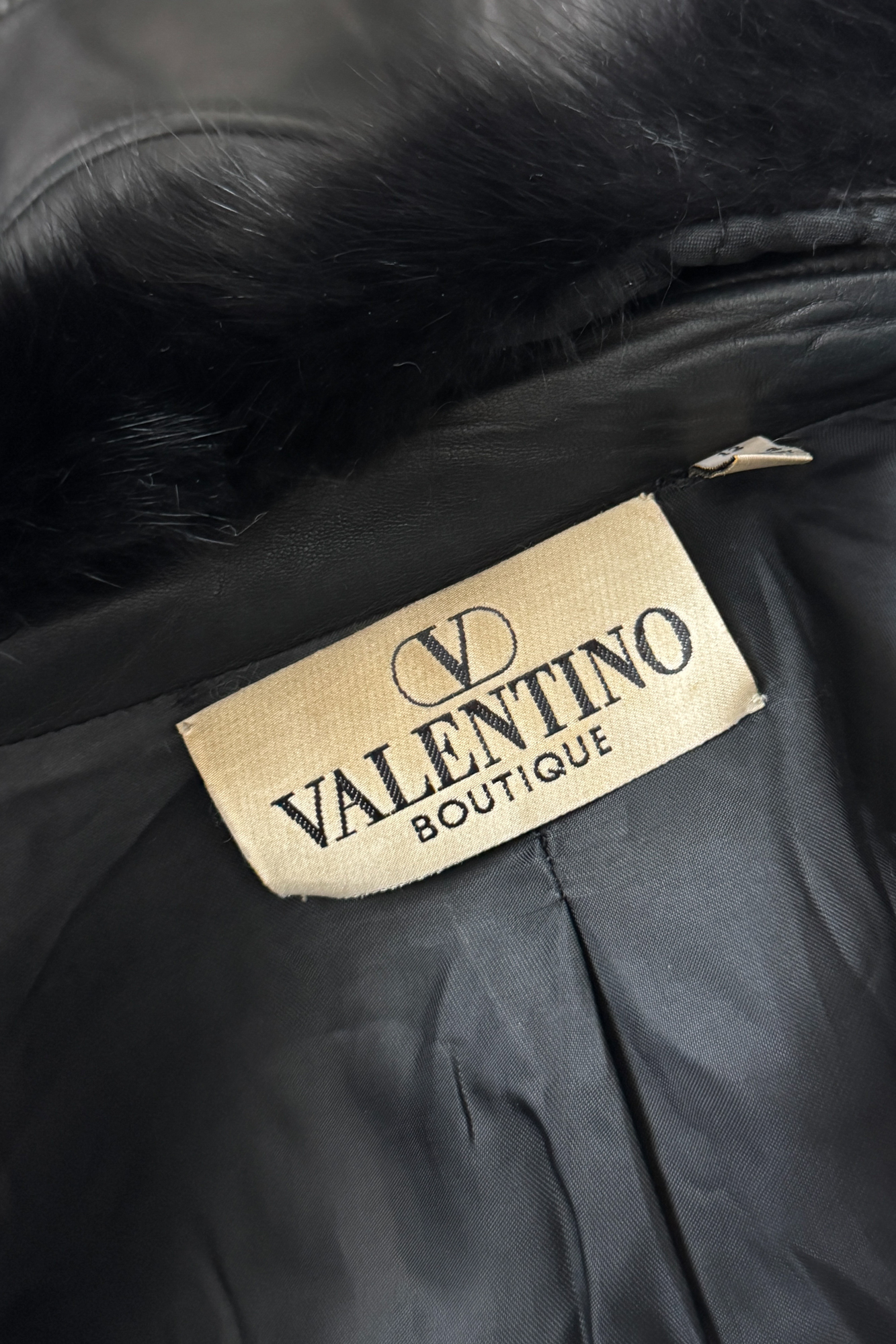 VALENTINO 2000 Black Leather Fur Collar Jacket (M-L)