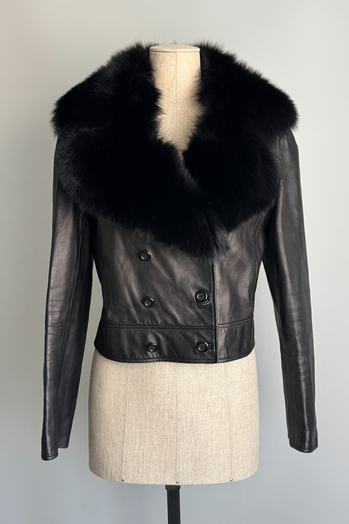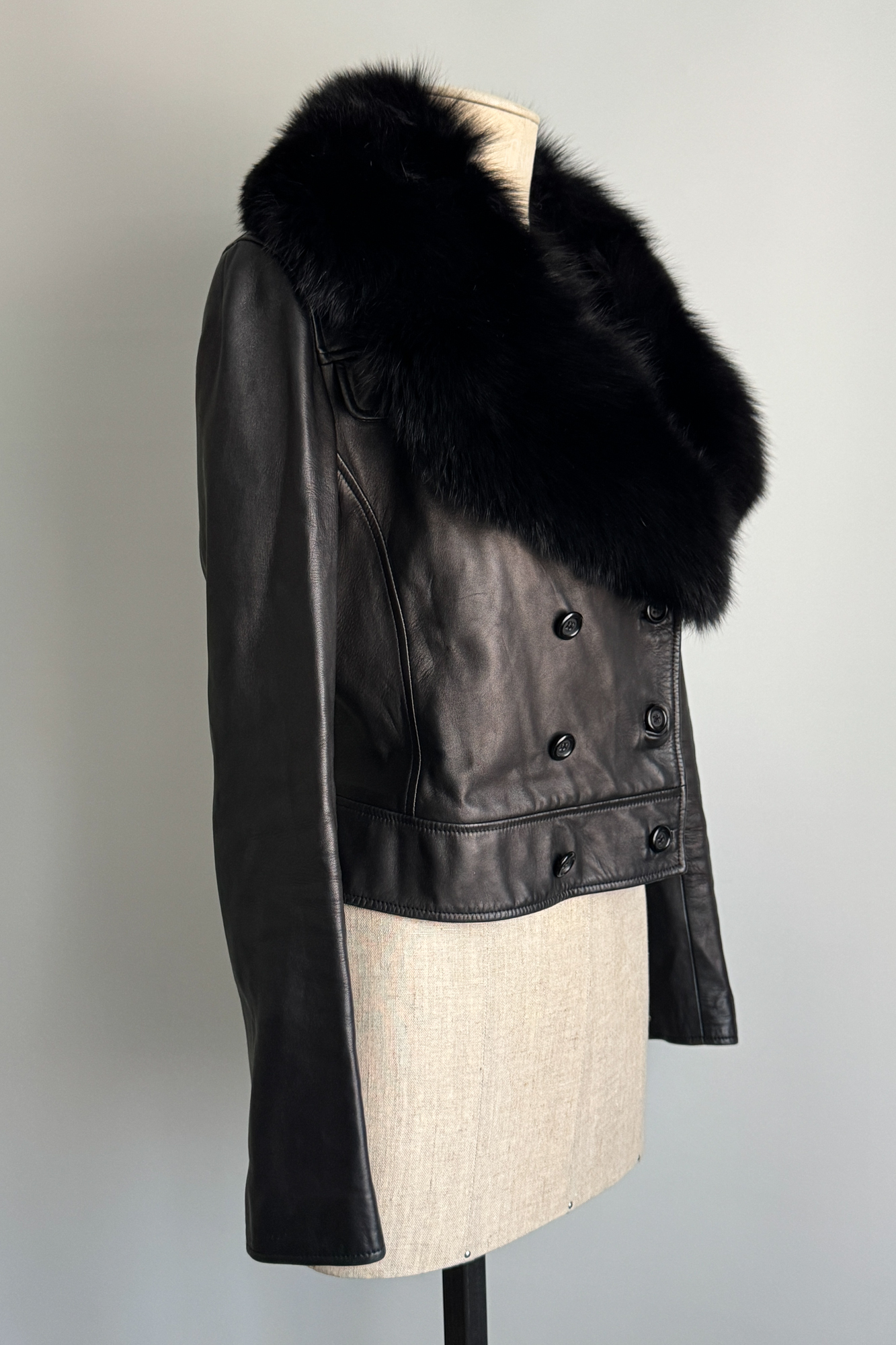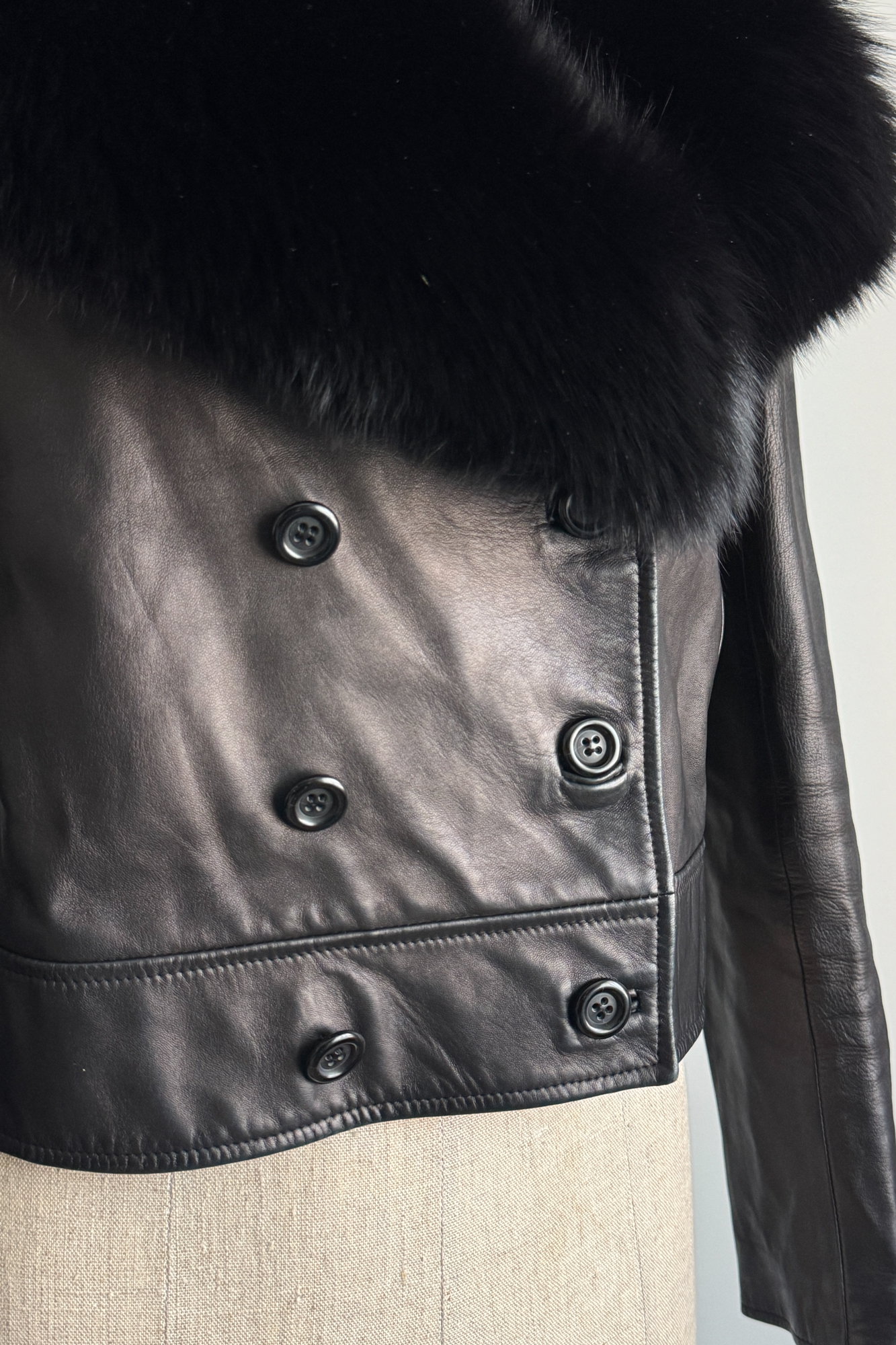 VALENTINO 2000 Black Leather Fur Collar Jacket (M-L)
