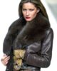 - Wide plush black fur collar