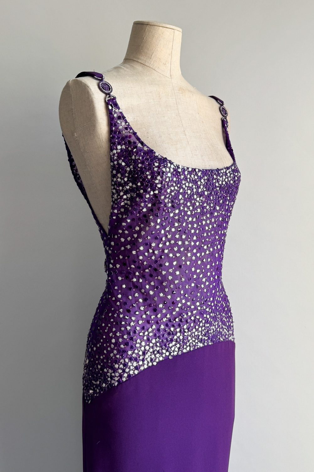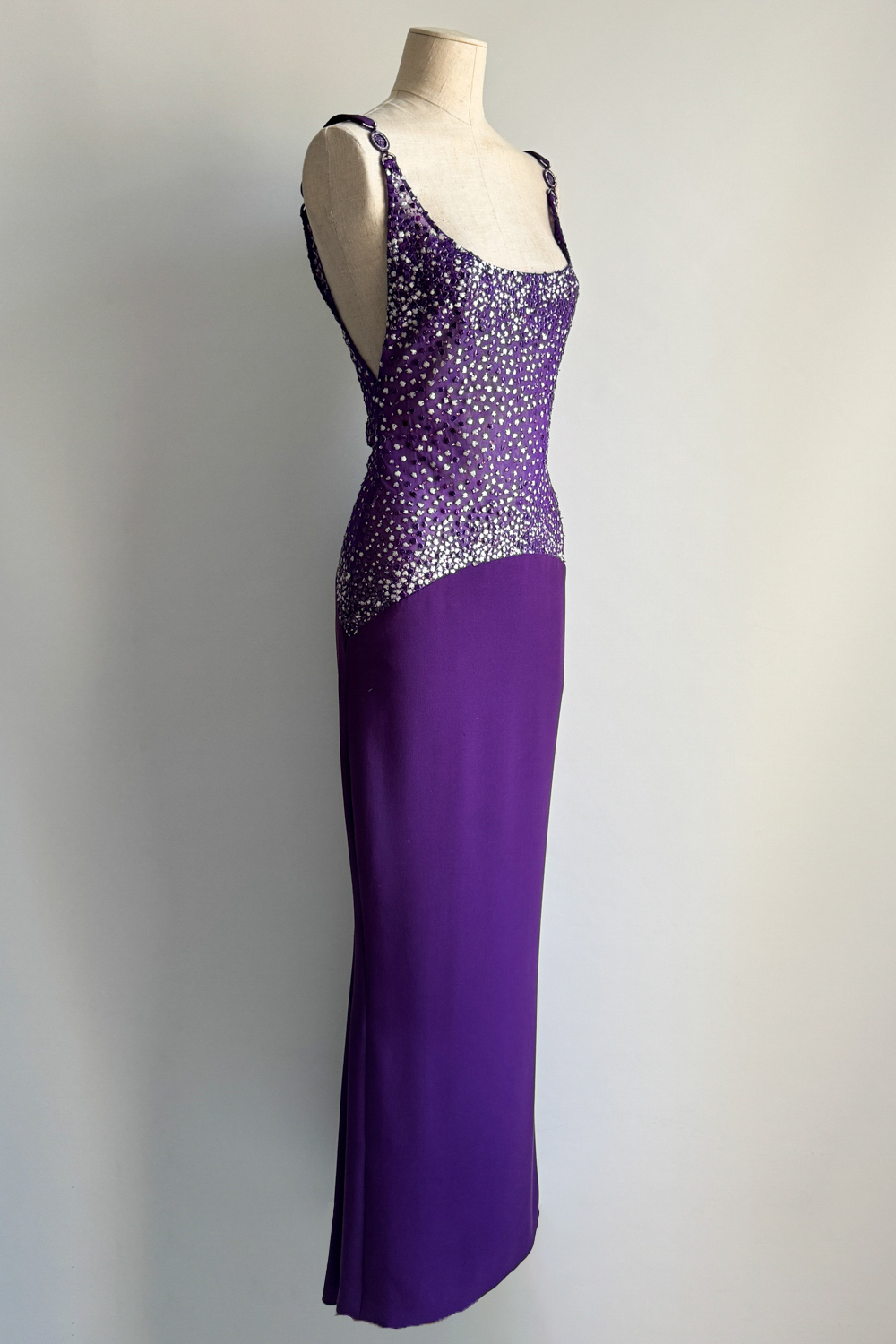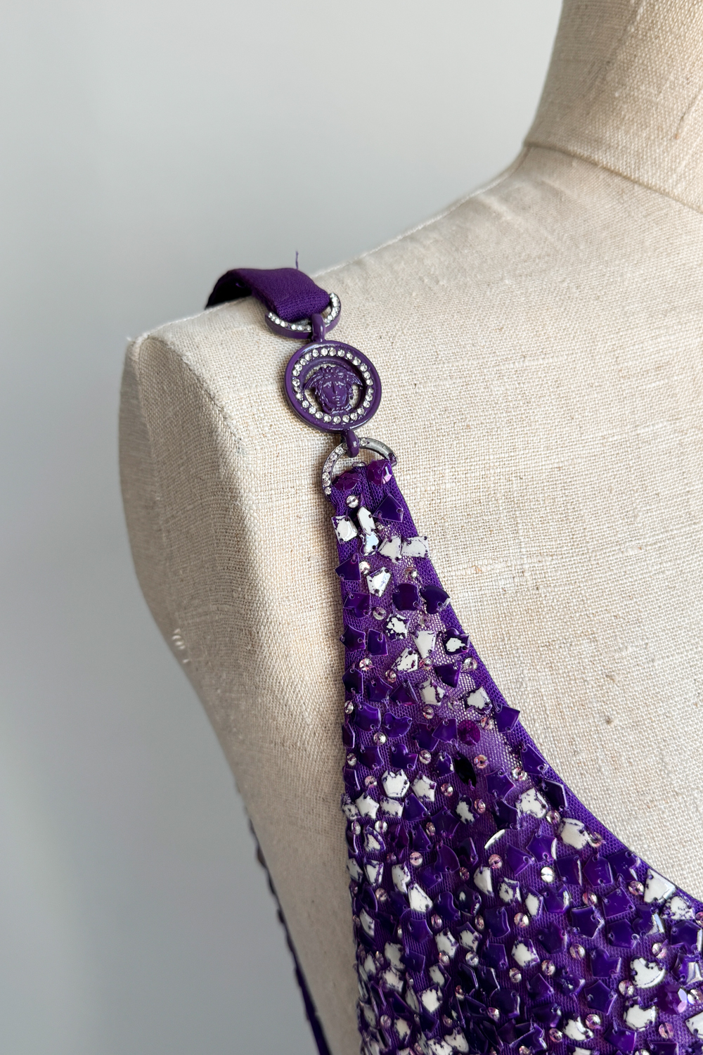 VERSACE 1996 Purple Sequined Maxi Gown (S)