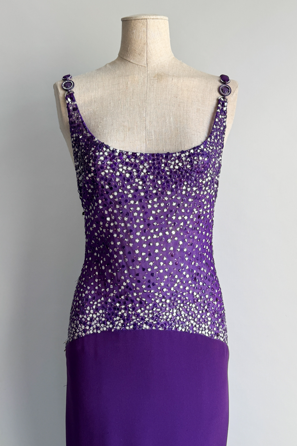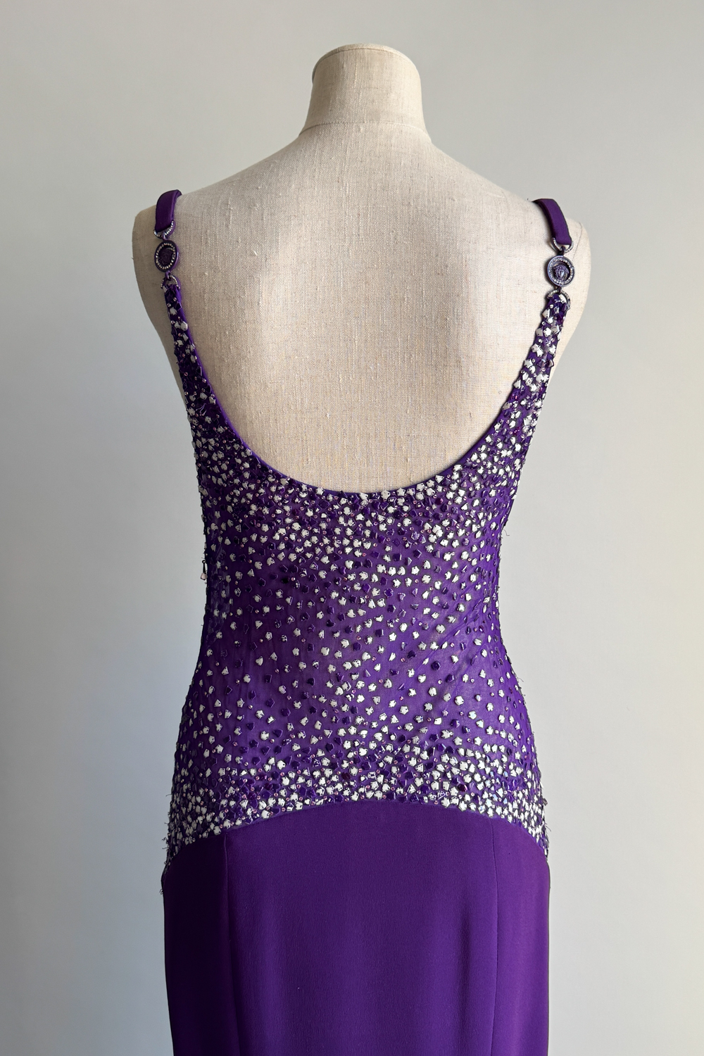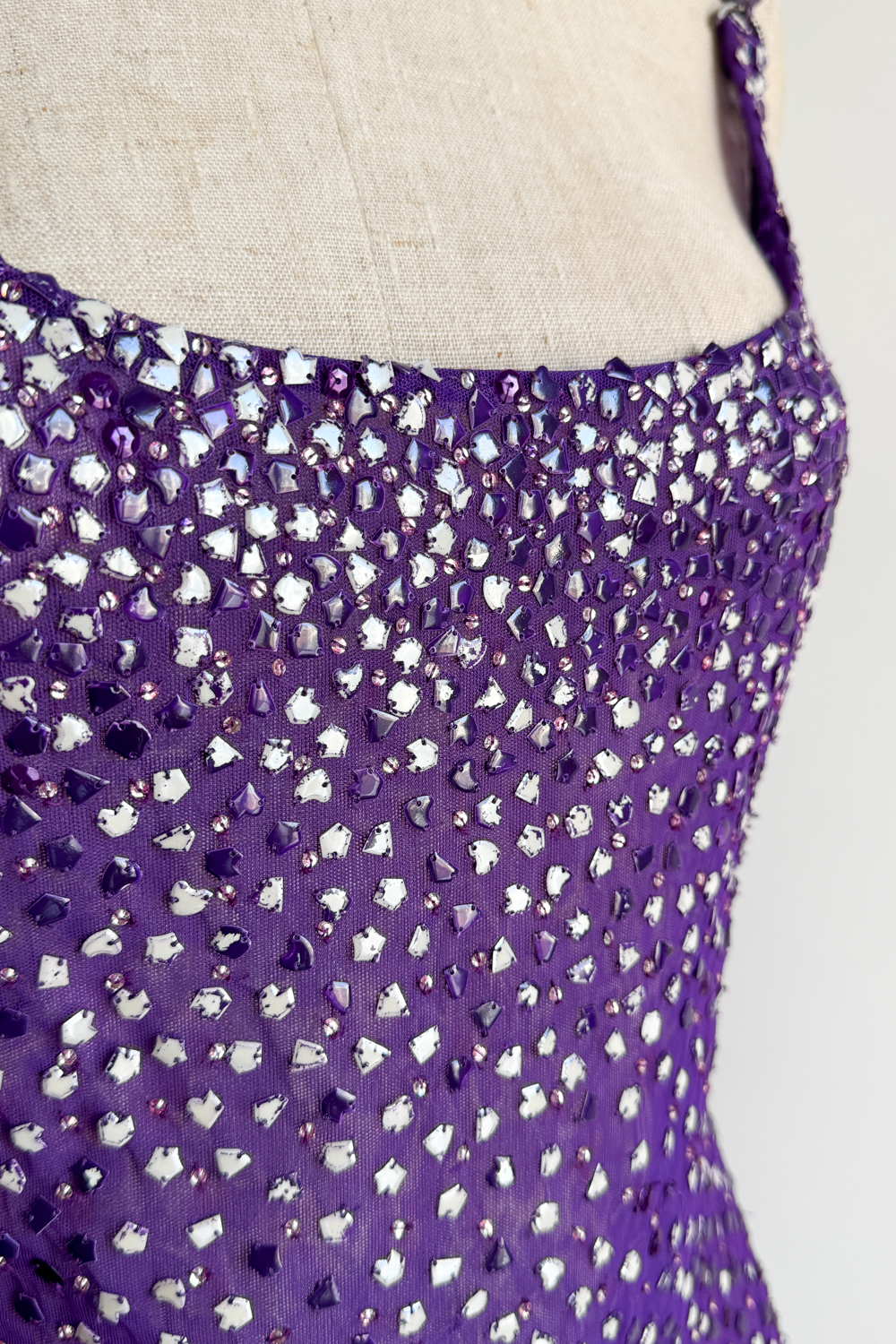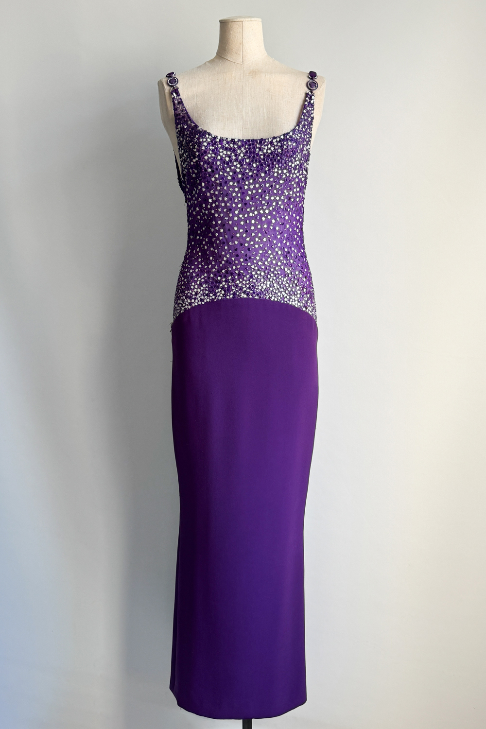 VERSACE 1996 Purple Sequined Maxi Gown (S)