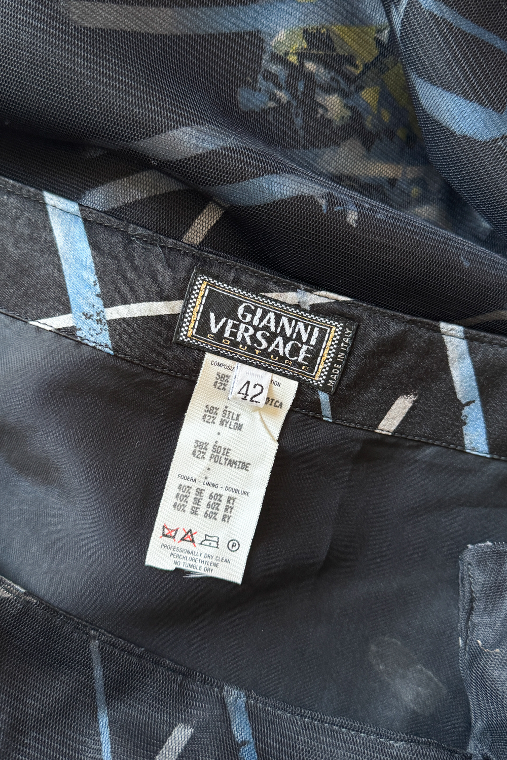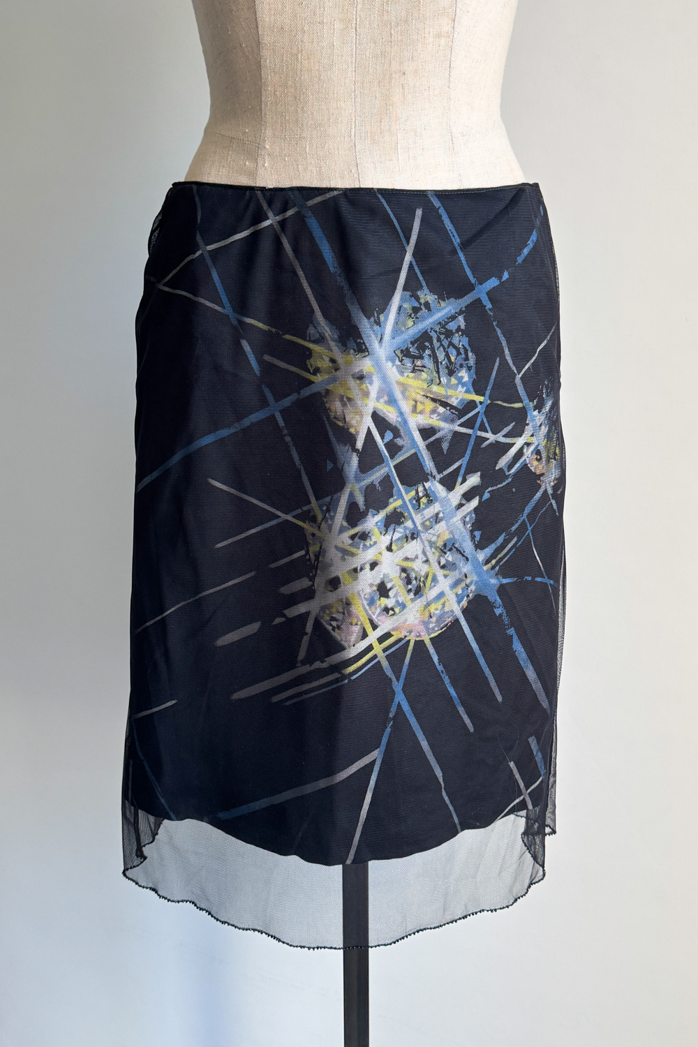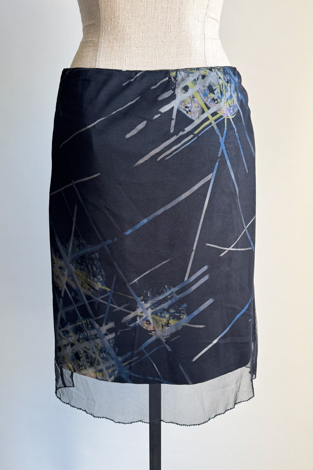 VERSACE 1998 Firework Mesh & Silk Midi Skirt (M)