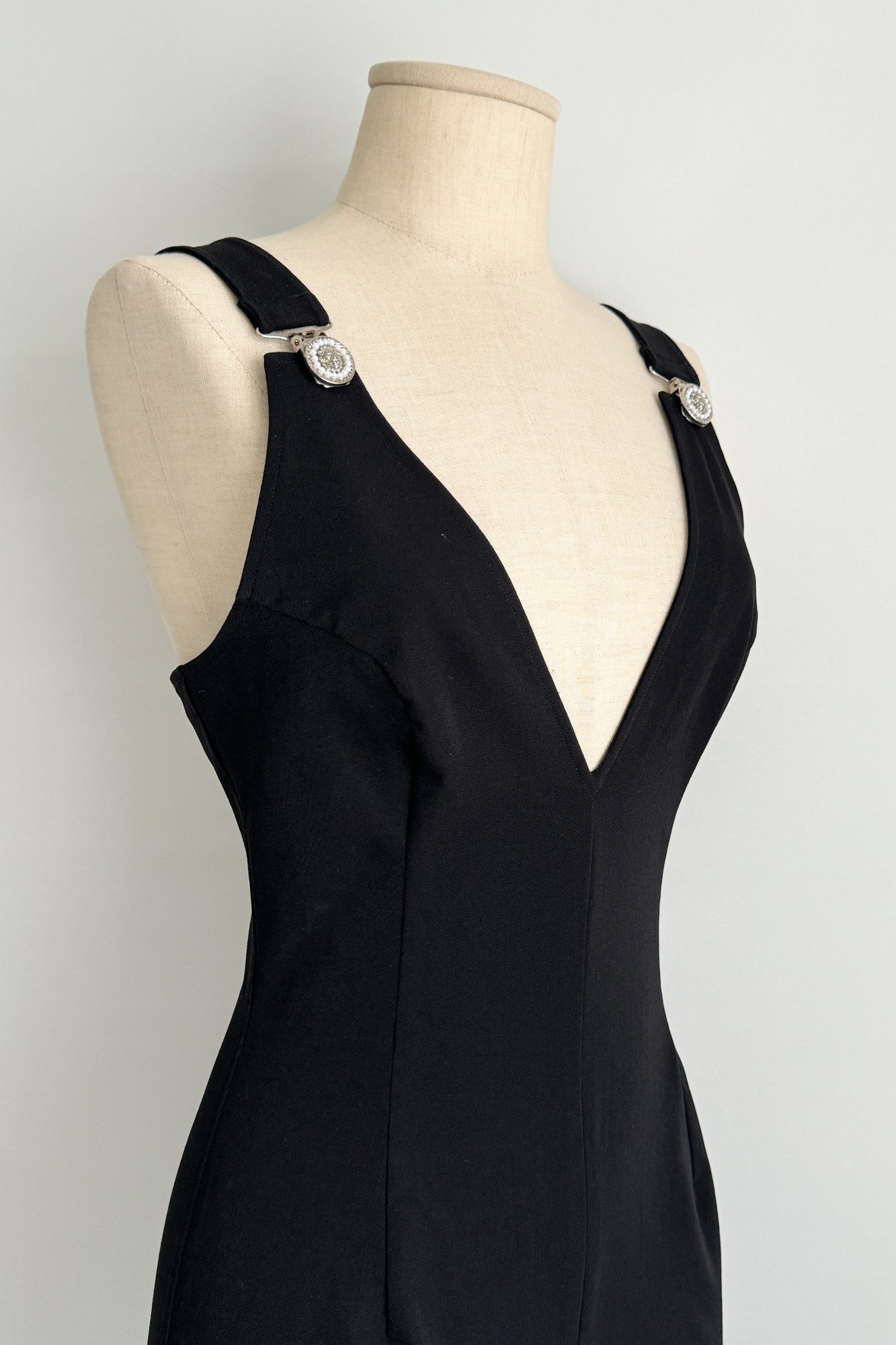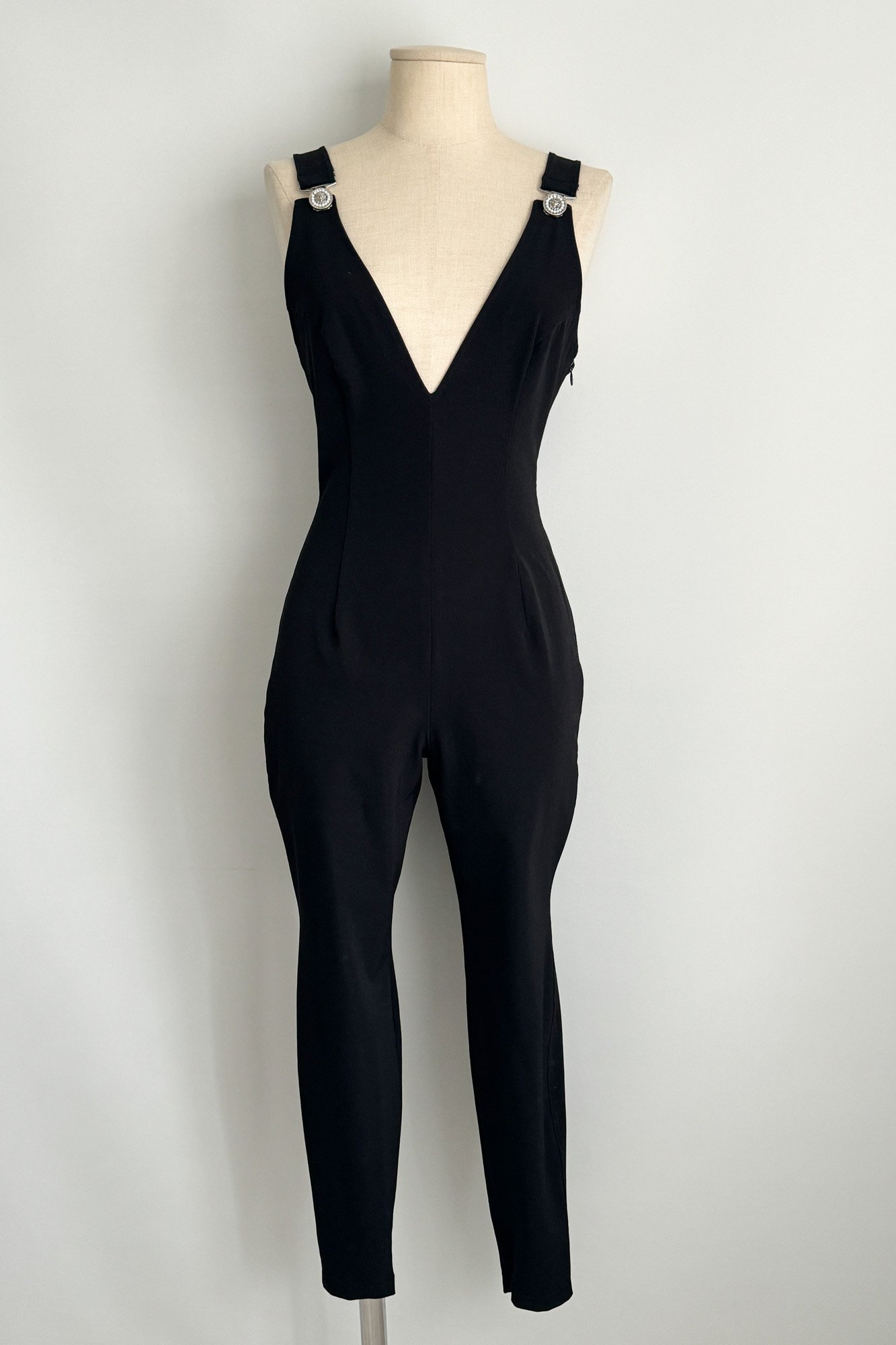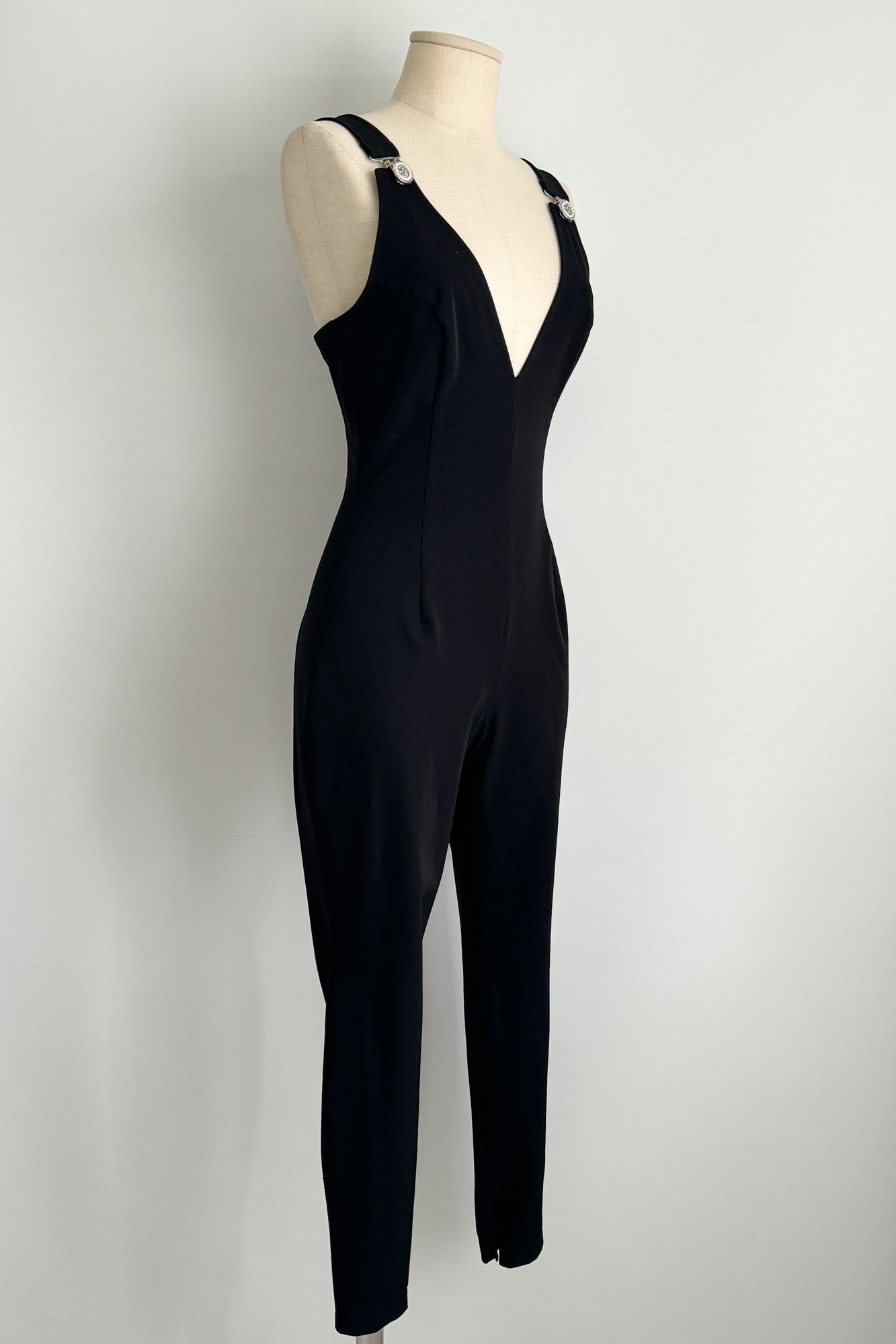VERSUS by Versace 1992 Black Plunge Neck Jumpsuit (S-M)