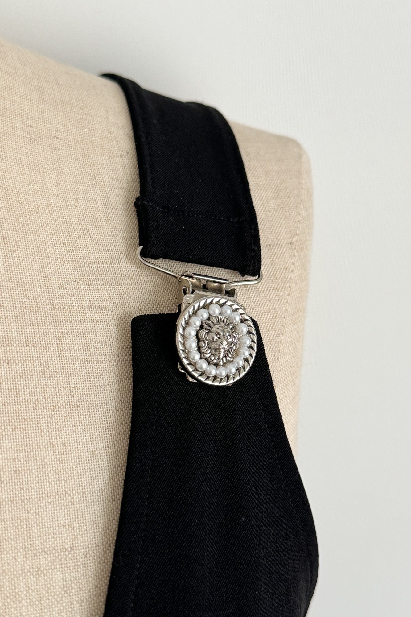 - Straps fasten with “crocodile” clips adorned with the Versace medusa and pearls