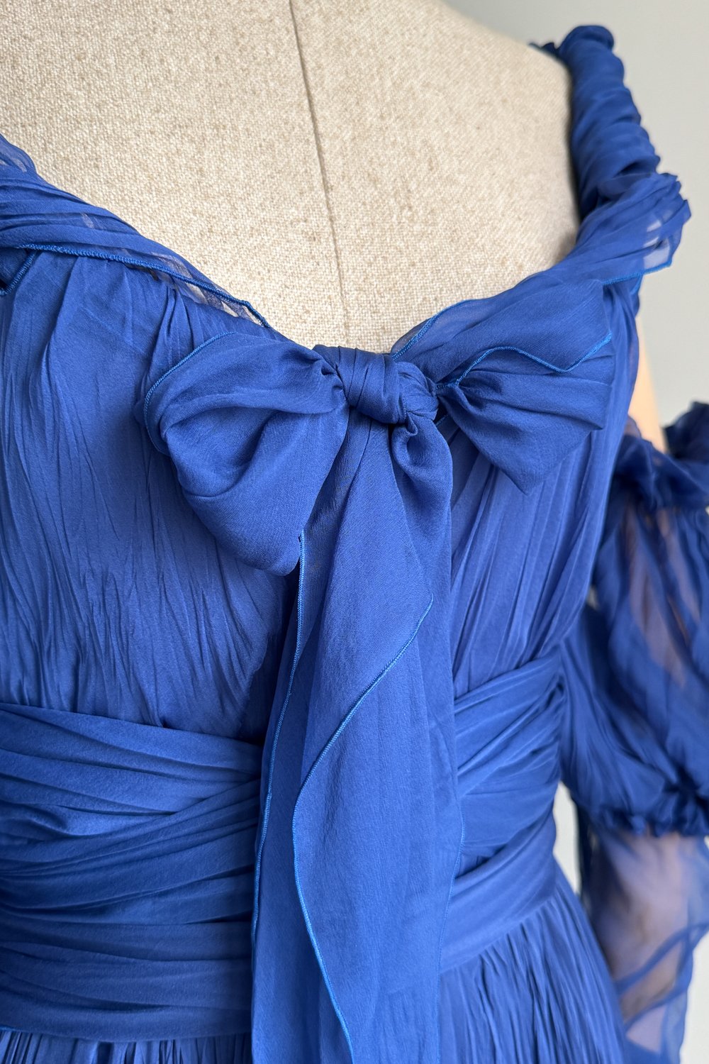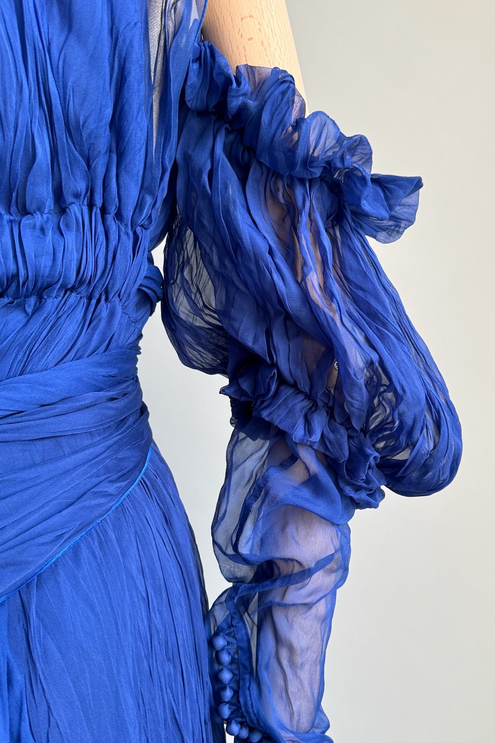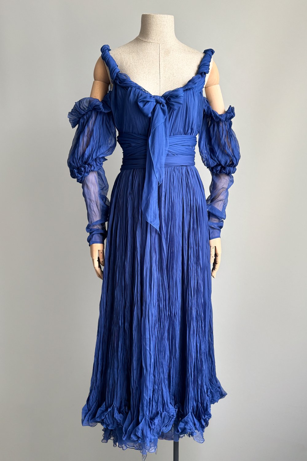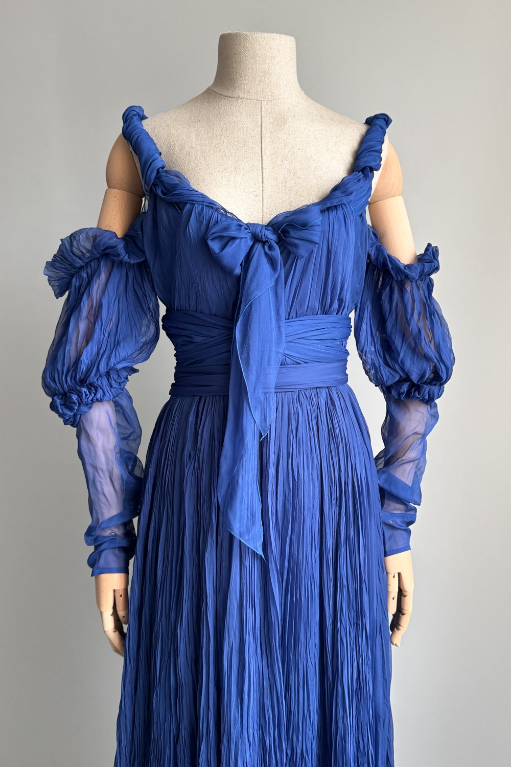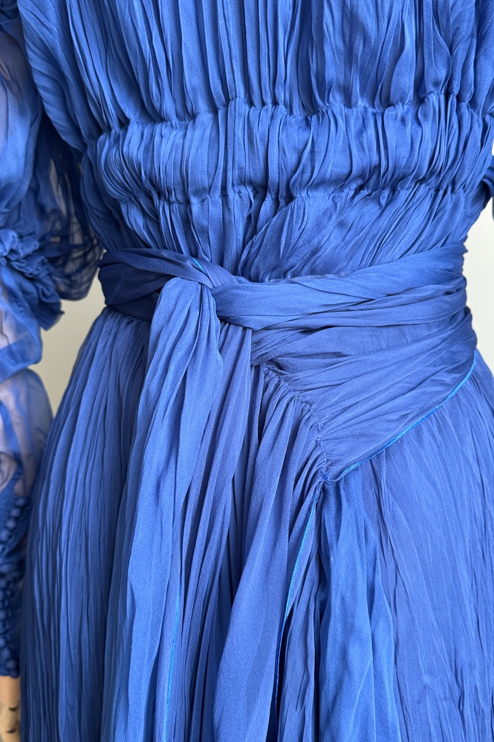 YVES SAINT LAURENT 2005 Blue Pleated Princess Dress (S)